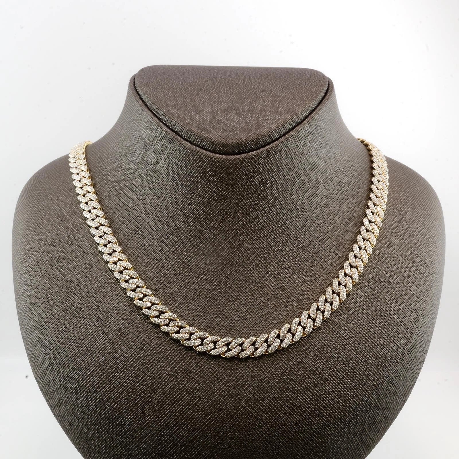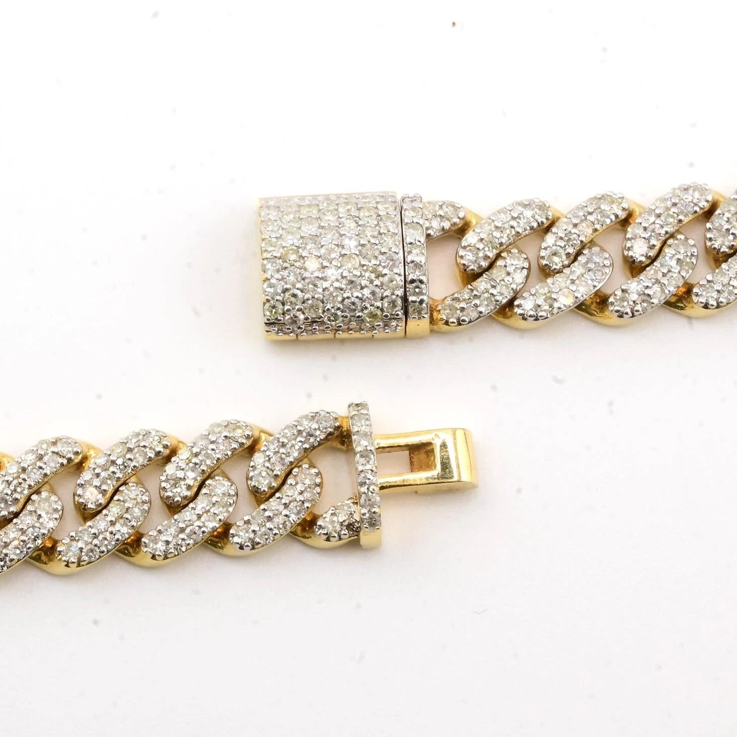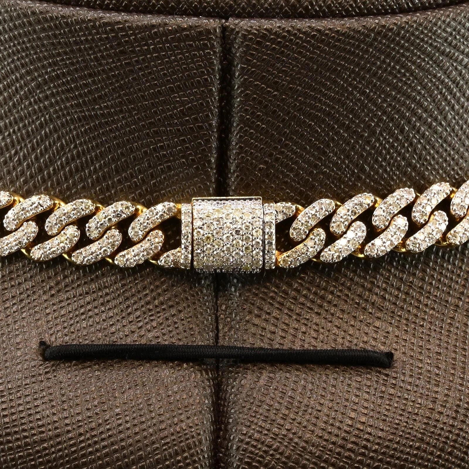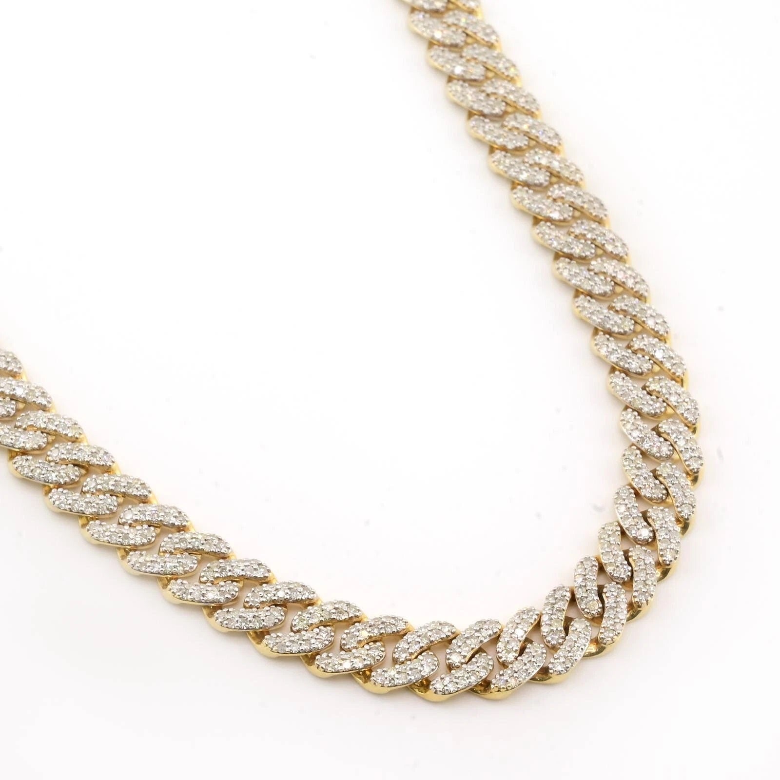 This 22" 8MM Men's 10k Yellow Gold Cuban Necklace features a stunning 9.62 CTW of round cut diamonds, making it a bold statement piece perfect for various occasions such as anniversaries, weddings, birthdays, and more. The necklace is crafted with solid 10k gold and is intricately designed with a Cuban chain style, giving it a hip hop and urban edge. It comes with an official appraisal document, professionally tested and stamped for authenticity, and is packaged in a complimentary jewelry box for safekeeping. This classic and elegant piece is a standout addition to any man's jewelry collection.