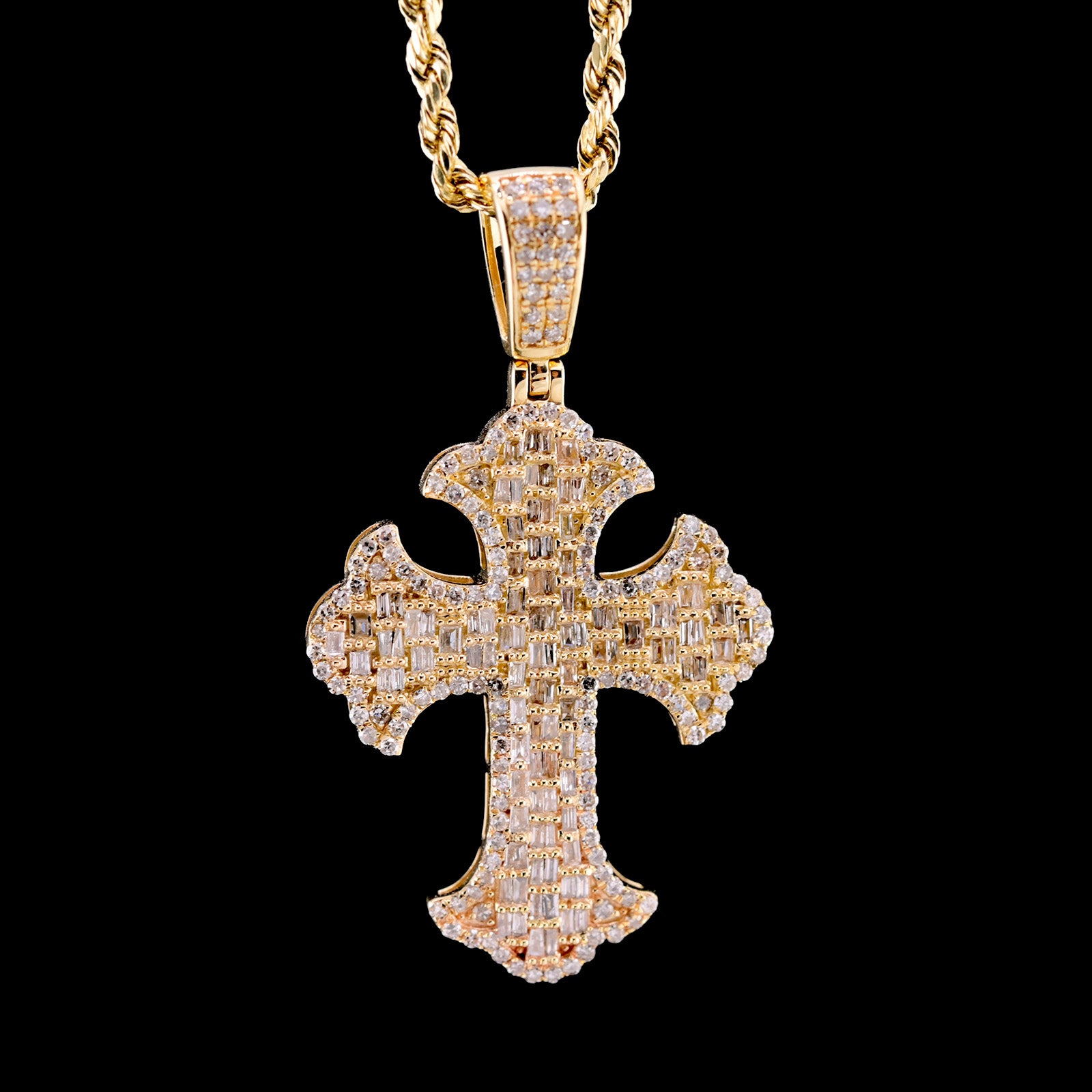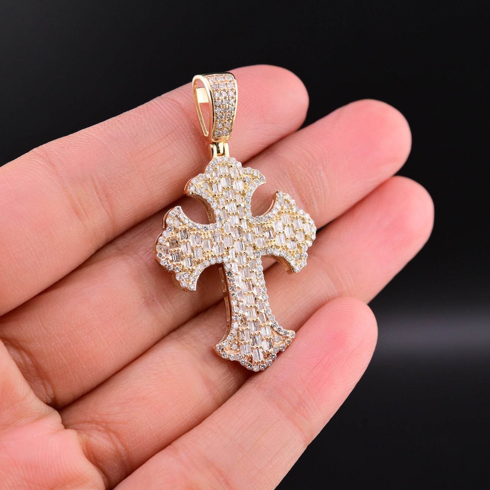 Crafted in 10k yellow gold, this 25mm cross pendant features 1.36 carats total weight of natural diamonds that enhance its refined religious symbolism. Weighing 5 grams, it offers a perfect balance of durability and elegance for everyday wear or special occasions. The pendant’s quality materials and expert craftsmanship ensure lasting brilliance, making it
