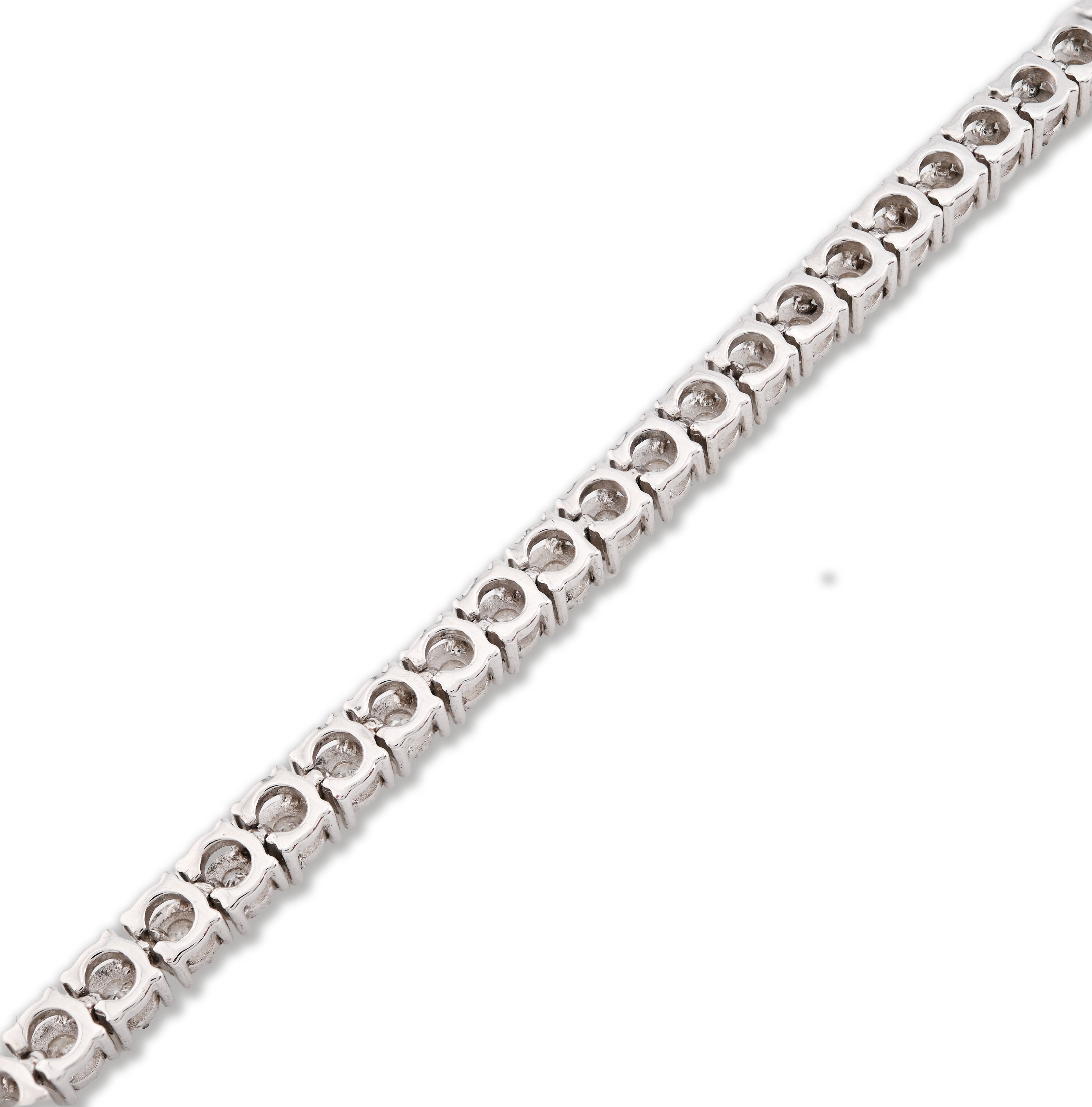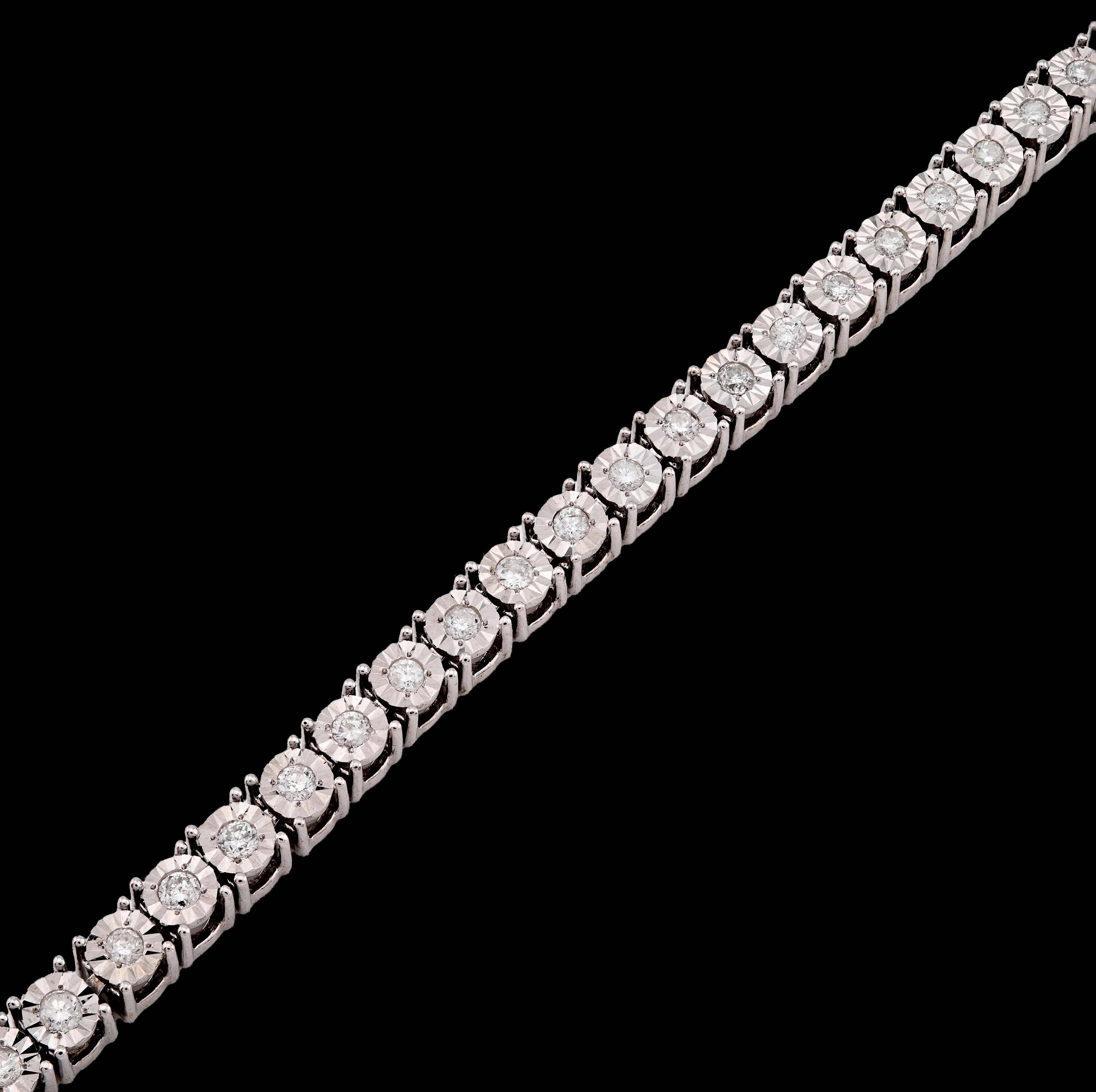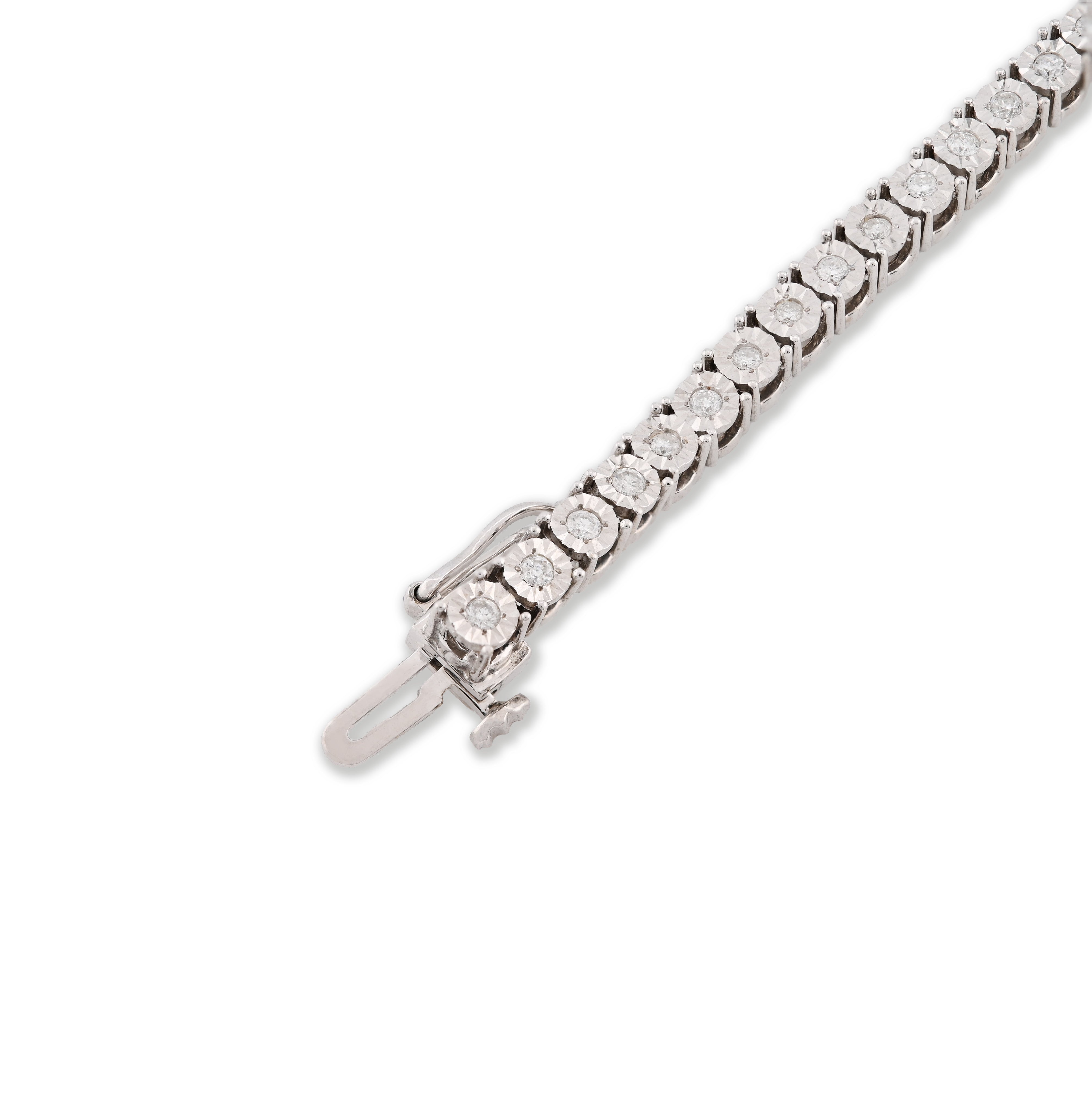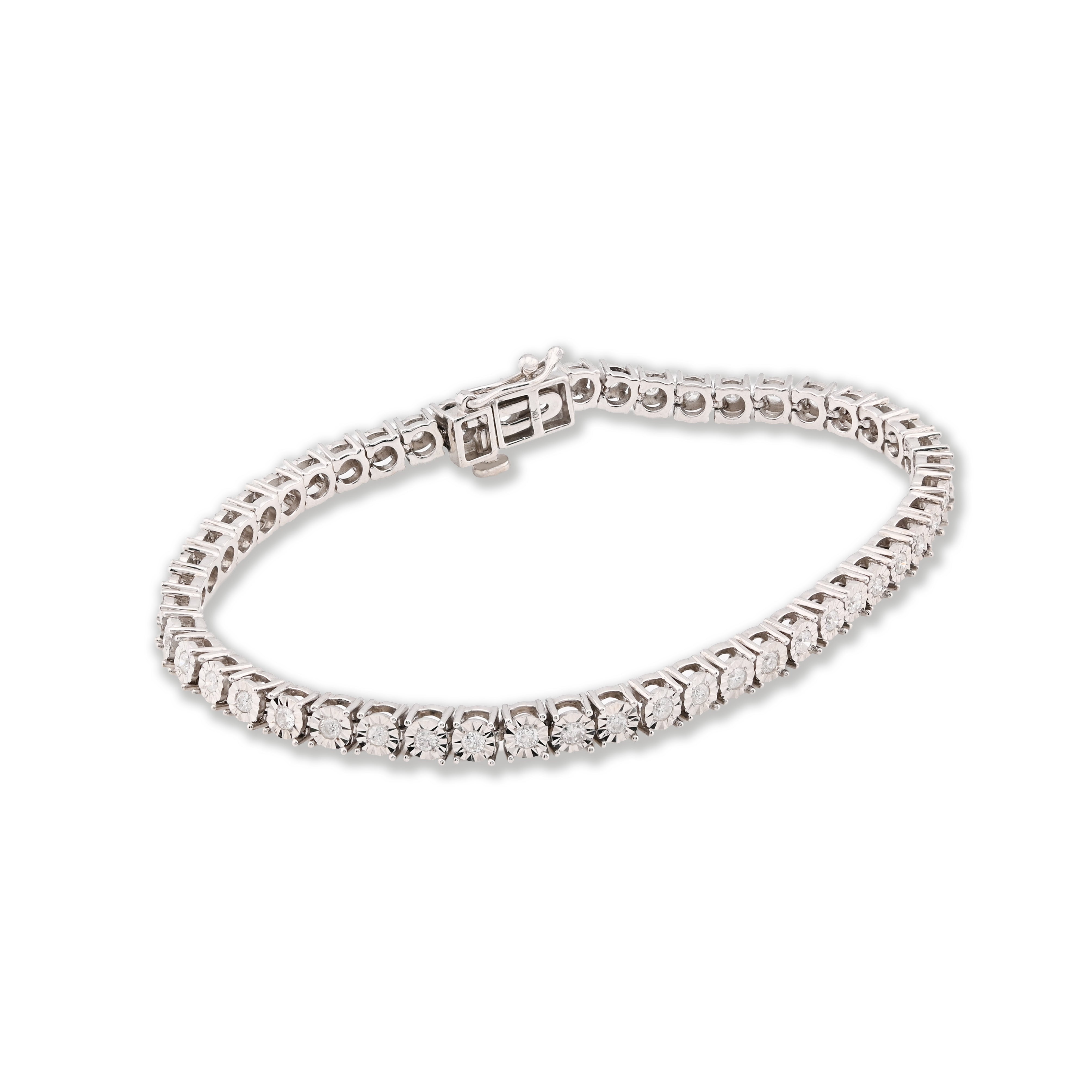 This refined 3.5MM tennis bracelet in 10k white gold presents a graceful alternative for those seeking subtle sophistication. Showcasing 1 carat of natural diamonds arranged in an illusion setting, the design creates an impressive luminous effect while maintaining an elegant, understated presence. At just 11 grams, the bracelet balances quality construction with a lightweight, comfortable wear experience. The 7-inch length provides an ideal fit for petite wrists or those preferring a snug silhouette. An ideal choice for daily elegance, this piece combines genuine diamond beauty with timeless white gold appeal.