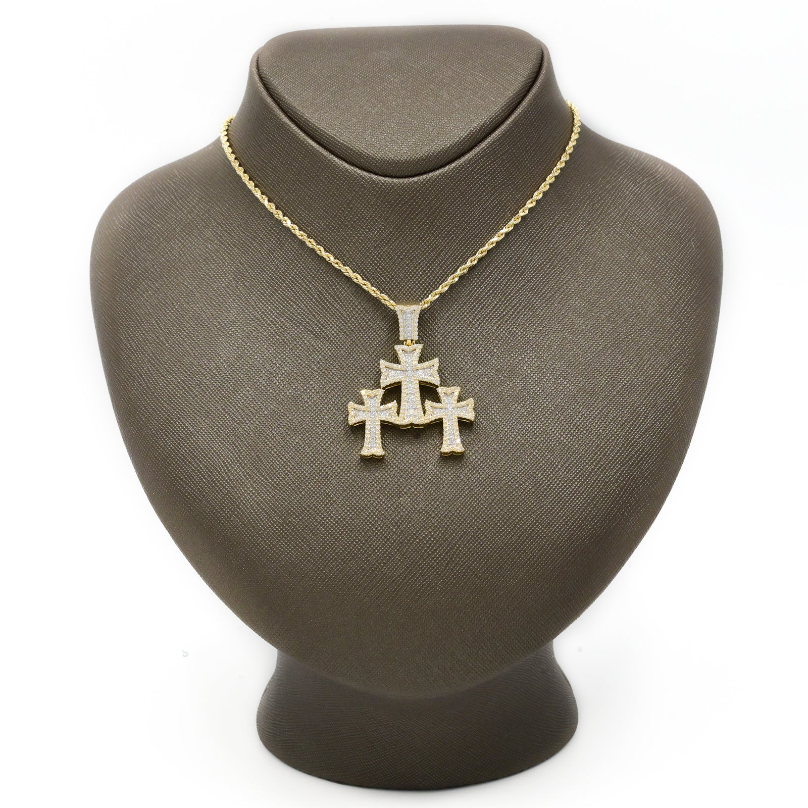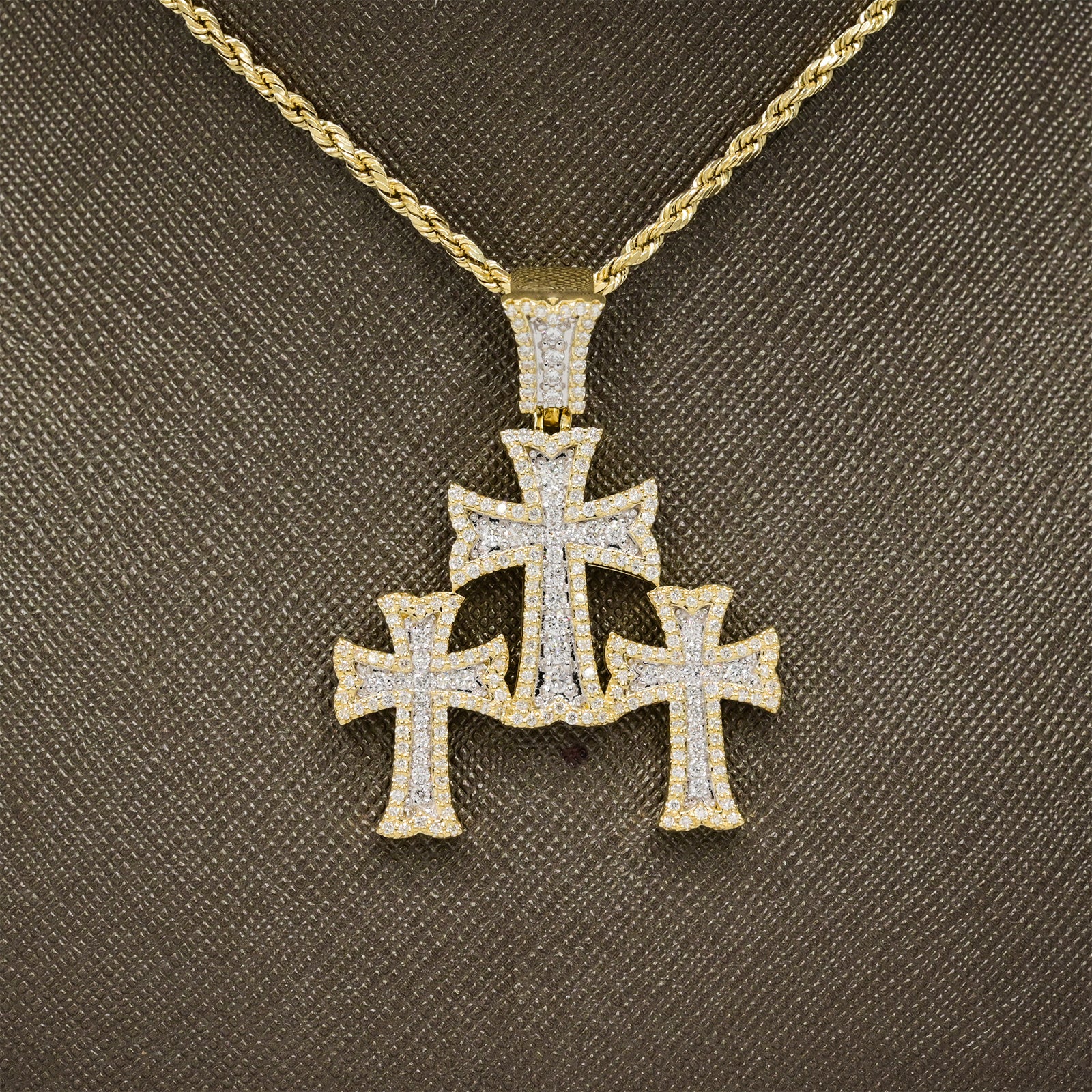 Crafted in 10k yellow gold, this 35mm triple cross pointer charm features 1.57 carats total weight of lab-grown diamonds, offering brilliance with ethical origins. Weighing 8.5 grams, its solid construction ensures durability while enhancing your jewelry collection with a meaningful and expertly designed piece.