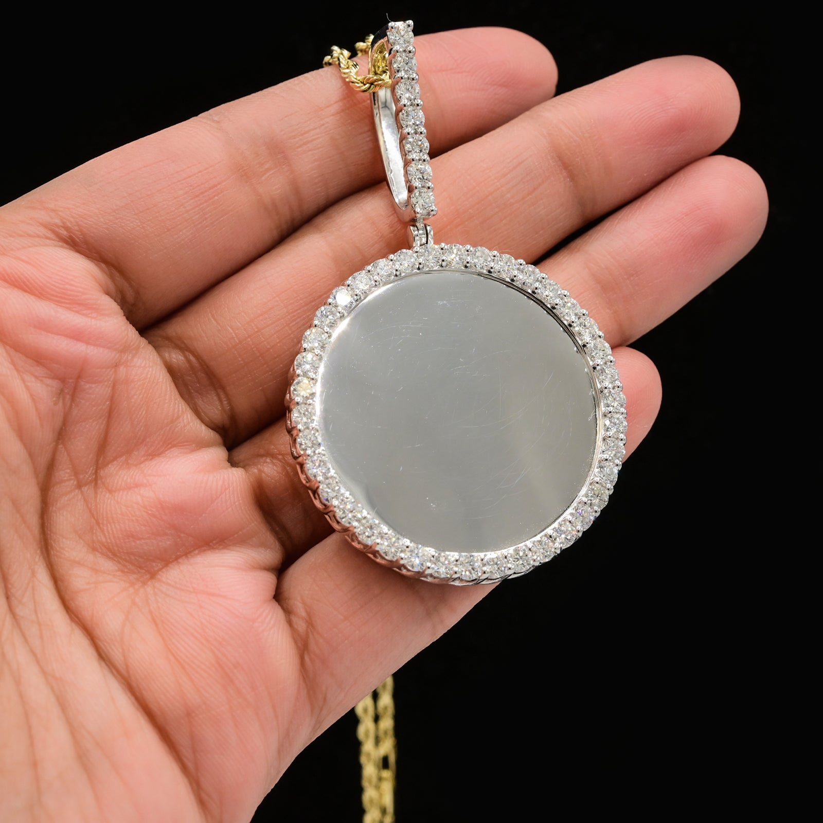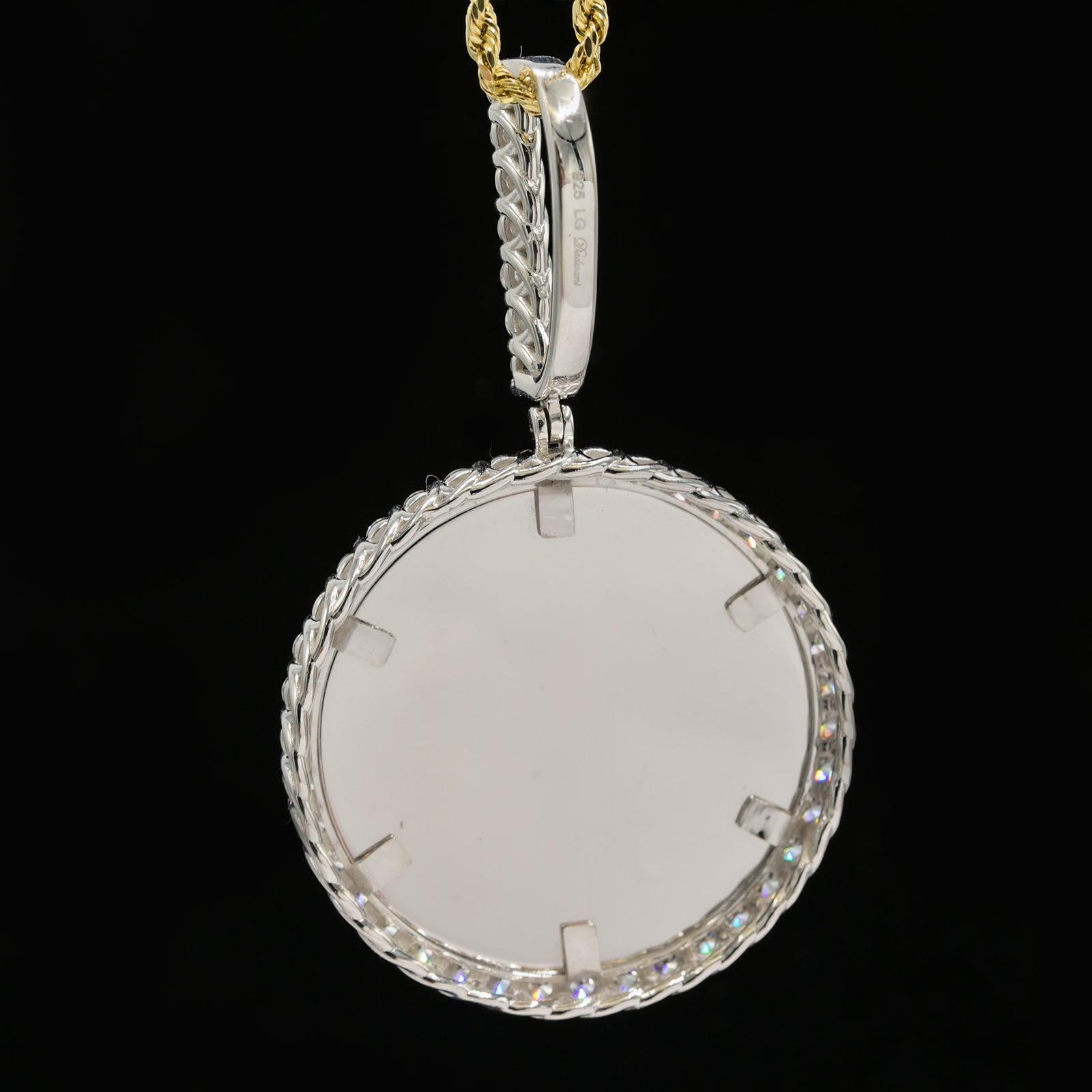 Crafted from premium 925 sterling silver, this 37mm picture charm features an impressive 3.35 carats total weight of lab-grown diamonds. Weighing 11.3 grams, the charm combines refined craftsmanship with sustainable luxury. Its bold design makes it a standout accessory, perfect for those seeking elegance with ethical sourcing.