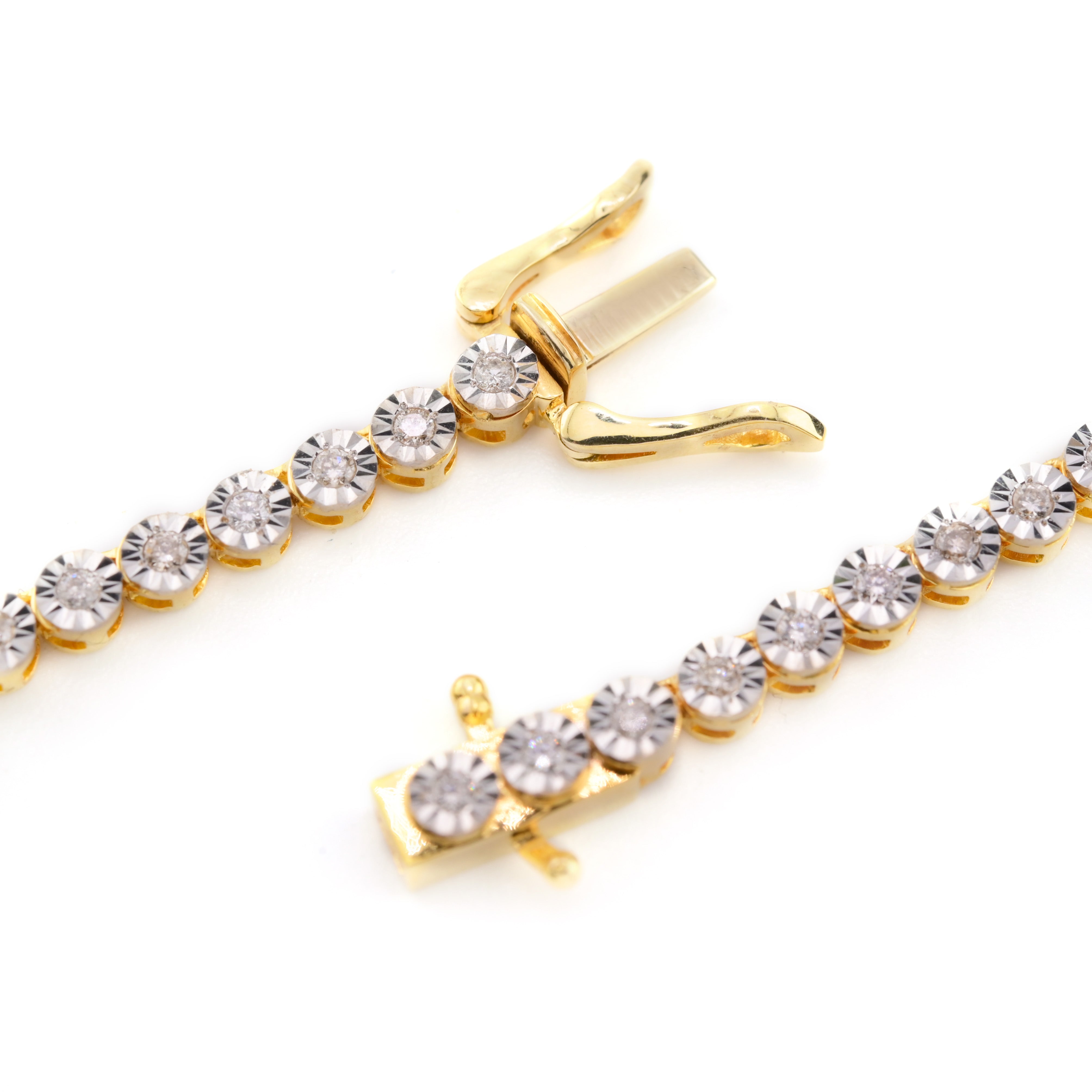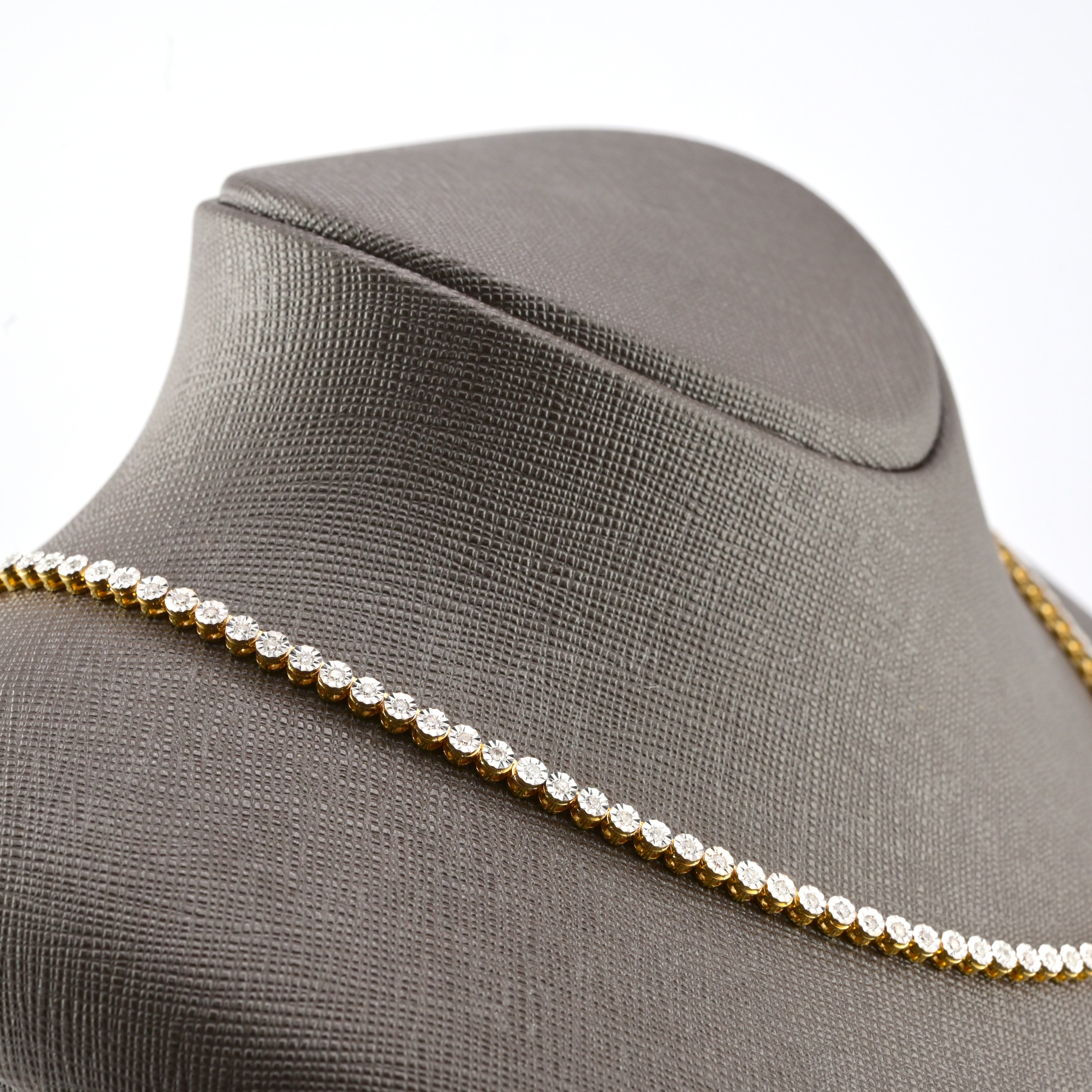 Elevate your jewelry collection with this exquisite 10k yellow gold tennis chain, featuring 1.99 carats of natural diamonds set in a classic 3mm design. Weighing 18.6 grams, this 18-inch necklace combines timeless elegance with substantial presence, making it an ideal choice for both everyday sophistication and special occasions. The natural diamonds catch light beautifully, creating a luminous sparkle that complements any complexion. A versatile piece that transitions seamlessly from day to evening wear, this tennis chain represents a refined investment in enduring style and quality craftsmanship.