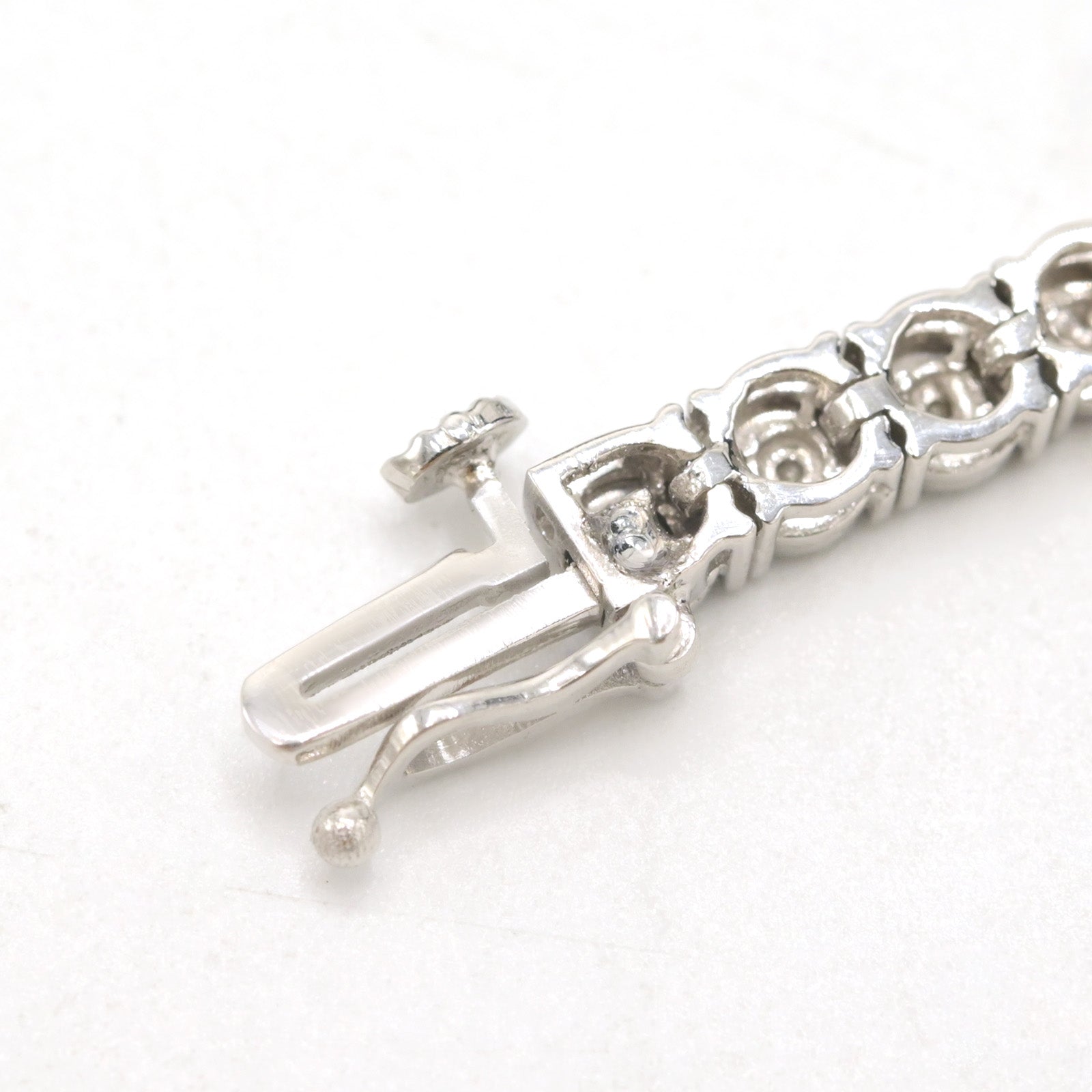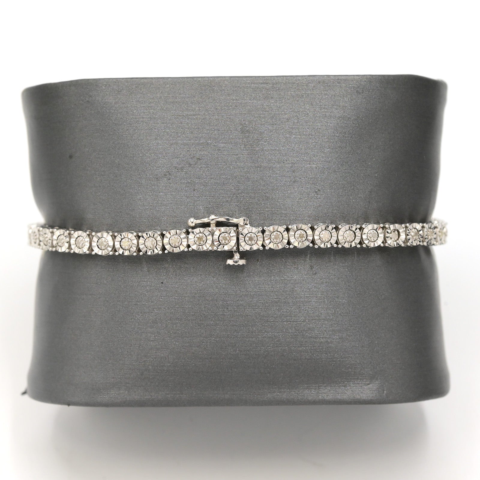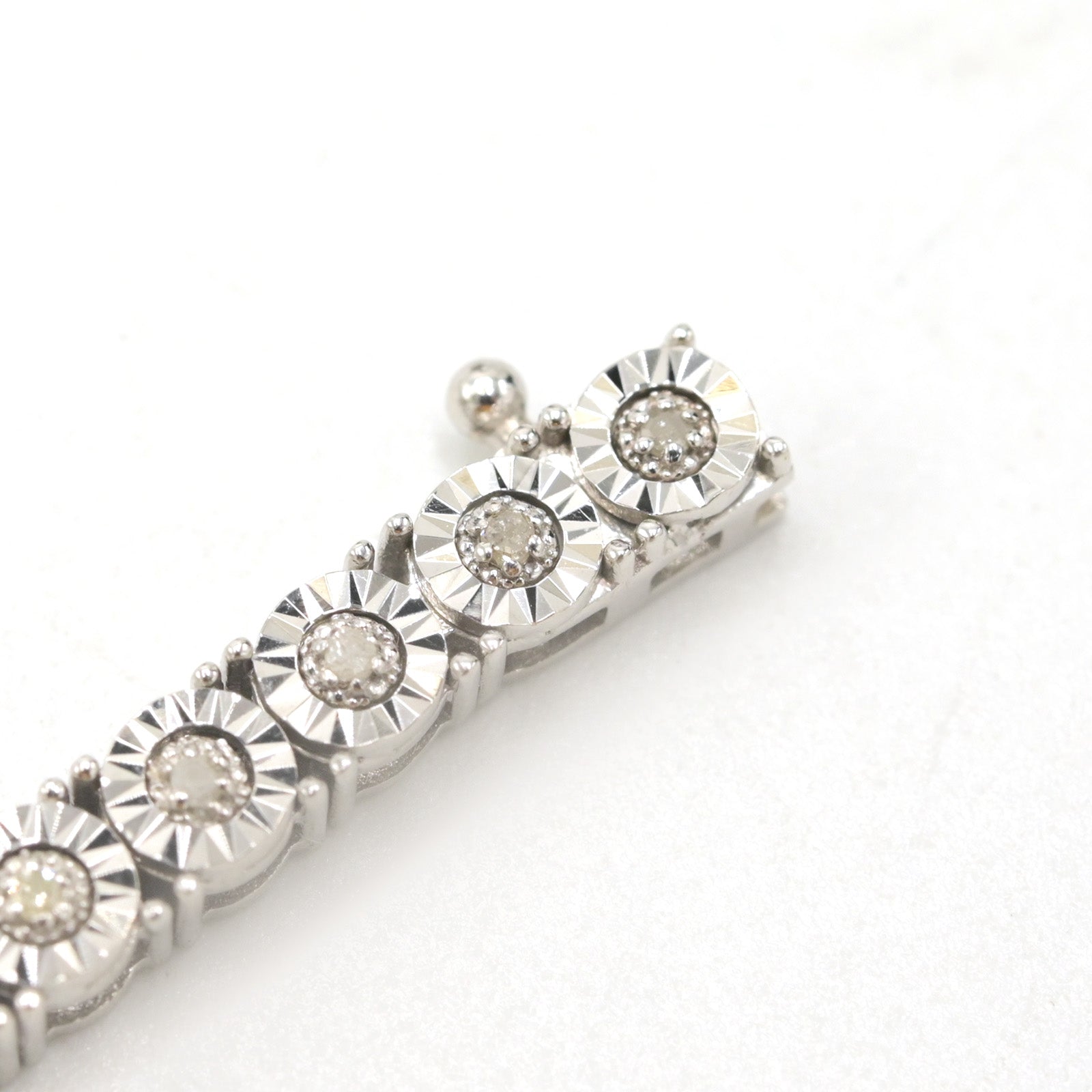 This 8-inch tennis bracelet is crafted from 925 sterling silver, featuring 0.6 carats of natural diamonds and weighing 9.7 grams, offering a sleek and sophisticated design.