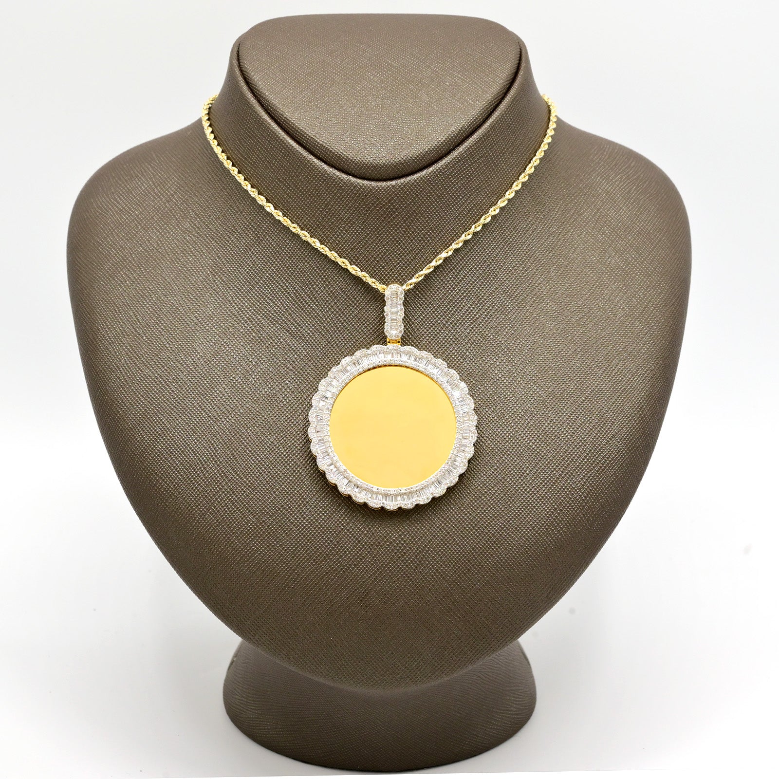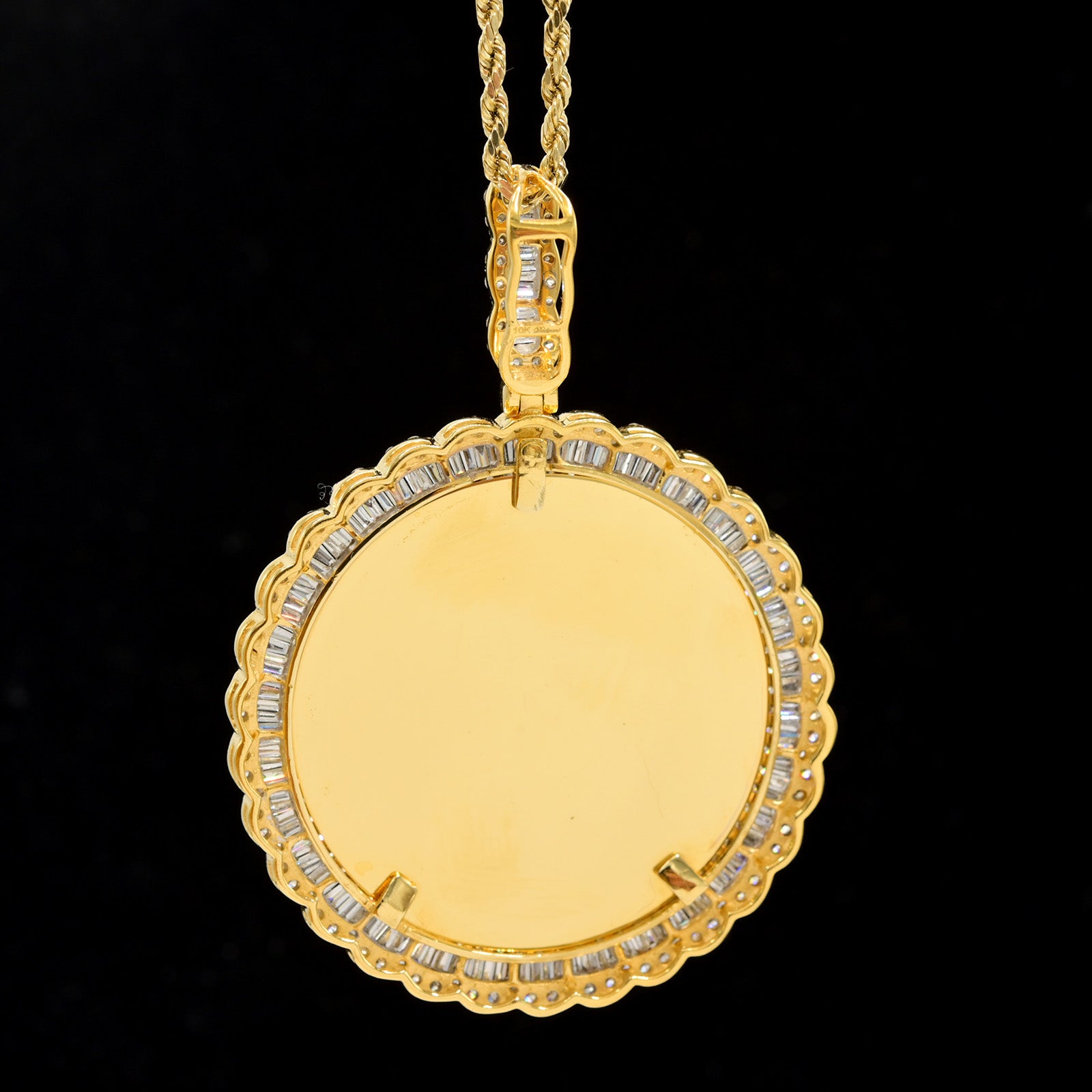 10k Yellow Gold 4.1CT Pure Baguette Diamond Picture Charm 15g Memorial Pendant.