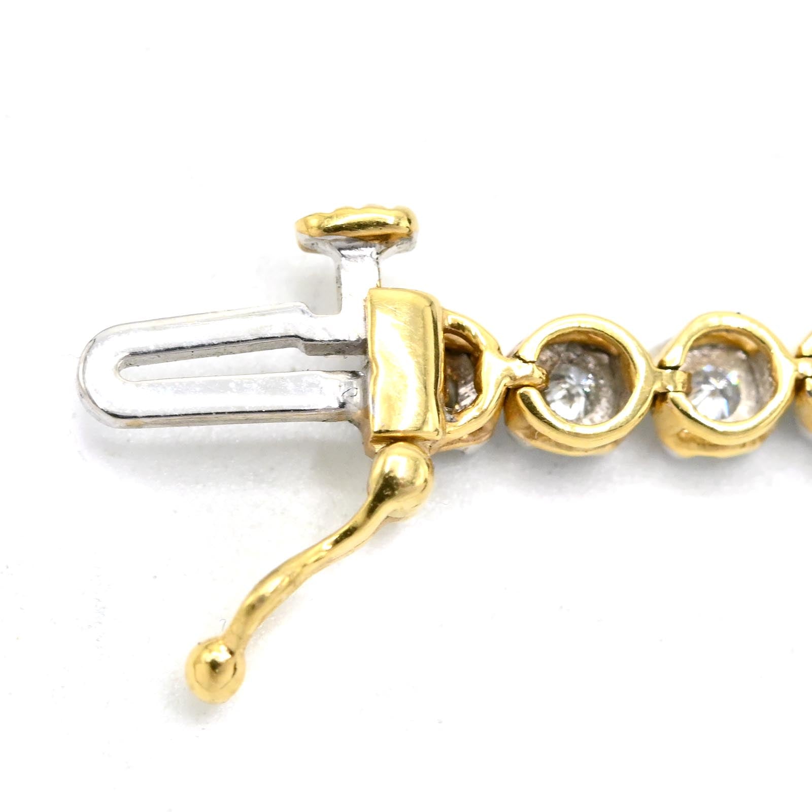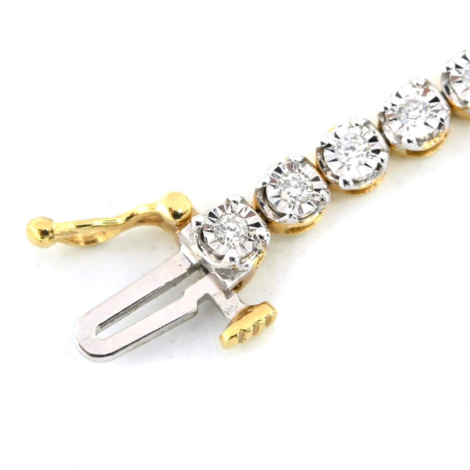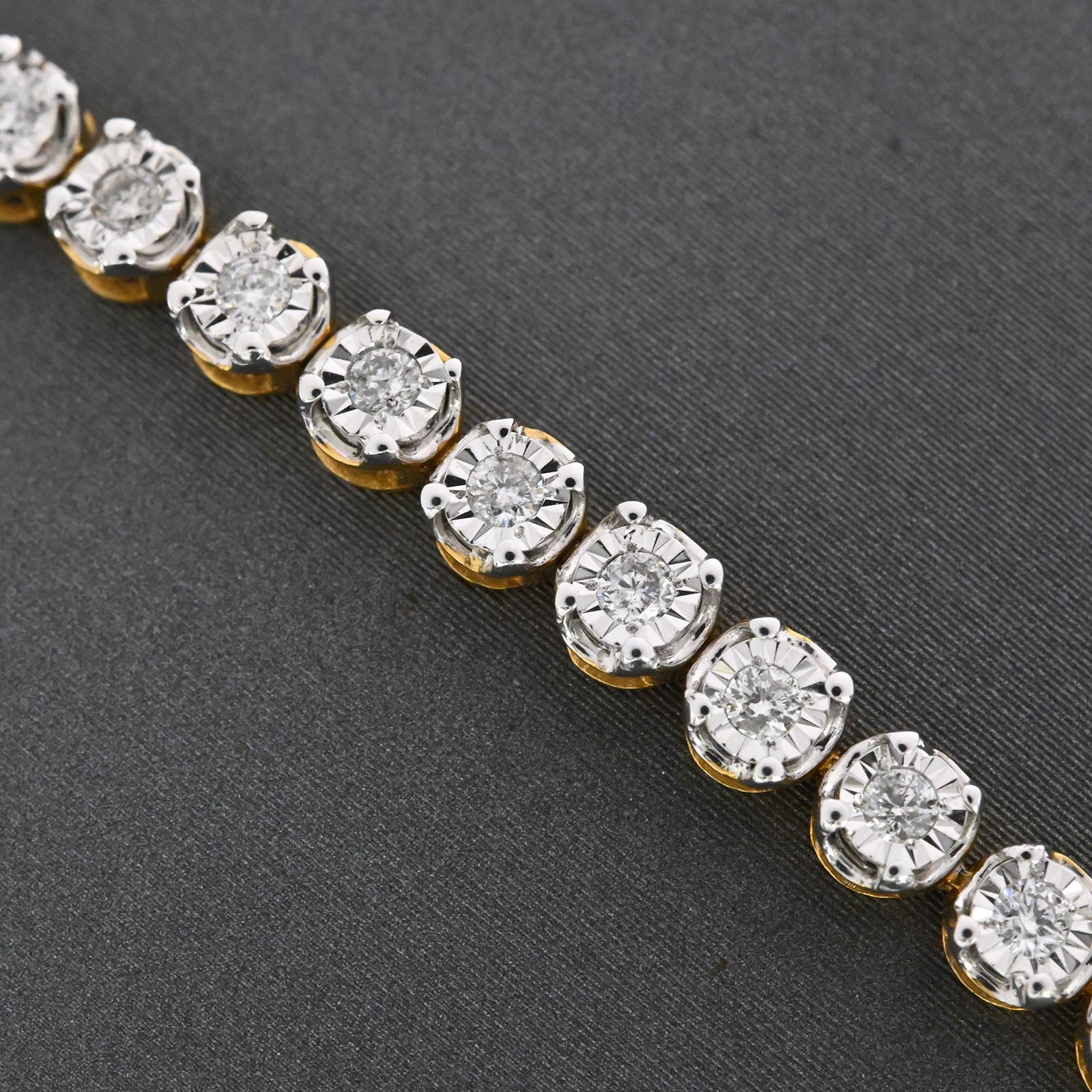 This 7-inch tennis bracelet showcases 4mm links crafted from 10K two-tone gold, seamlessly blending elegance and versatility. Featuring 0.9 carats of real diamonds, it offers a refined sparkle while maintaining a comfortable 5.9-gram weight for everyday wear. Its expert design ensures durability and timeless style, making it an ideal choice for those seeking subtle luxury with lasting quality.
