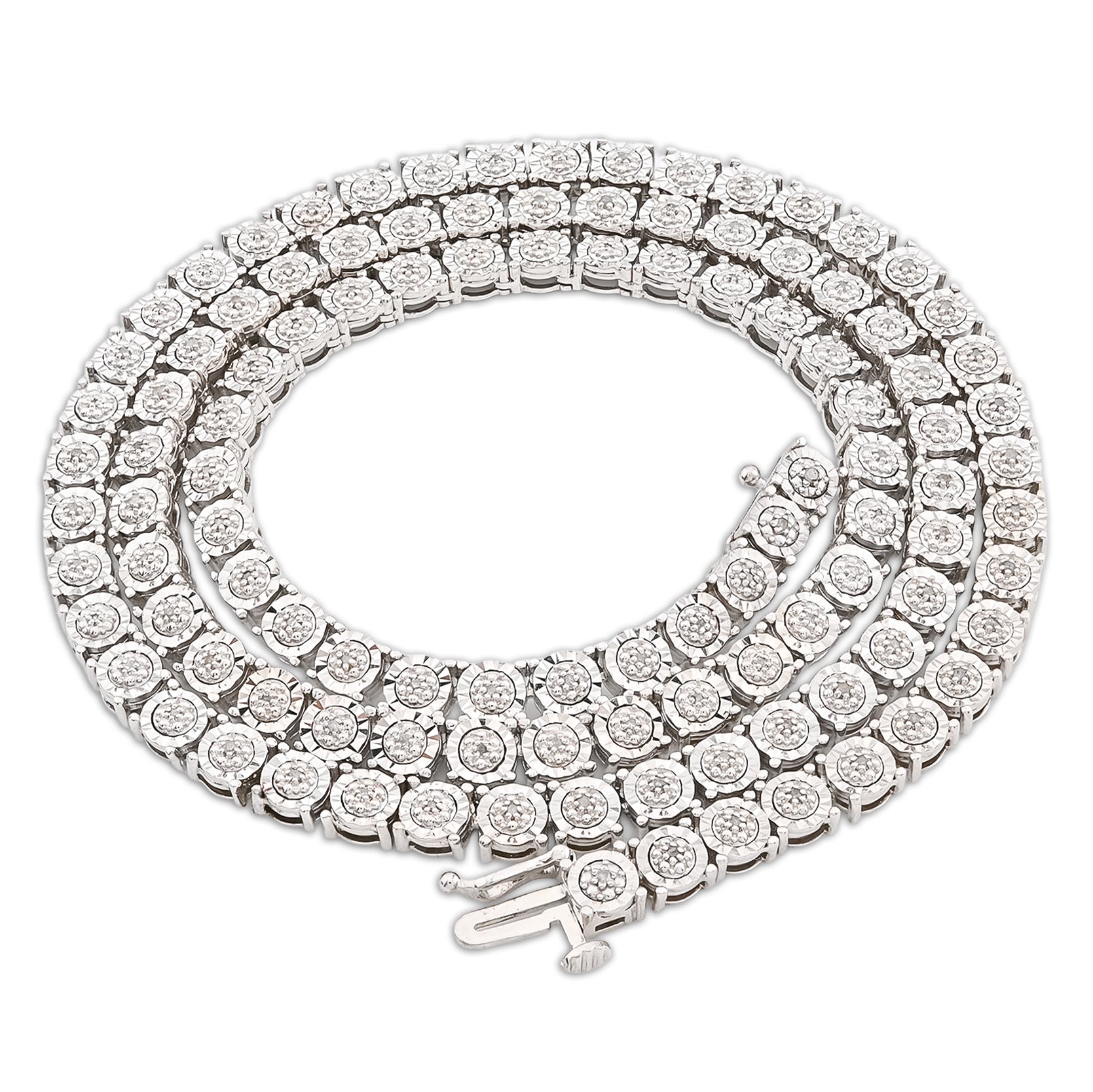 Elevate your jewelry collection with this refined 925 sterling silver tennis chain, a timeless classic that transcends trends. Showcasing 2.75 carats of natural diamonds set in a continuous 5mm design, each stone catches light with brilliant radiance. At 35 grams, the chain offers substantial weight and presence while maintaining elegant proportions. The 22-inch length provides versatile styling options, draping gracefully at the neckline for both formal affairs and polished casual occasions. A sophisticated investment