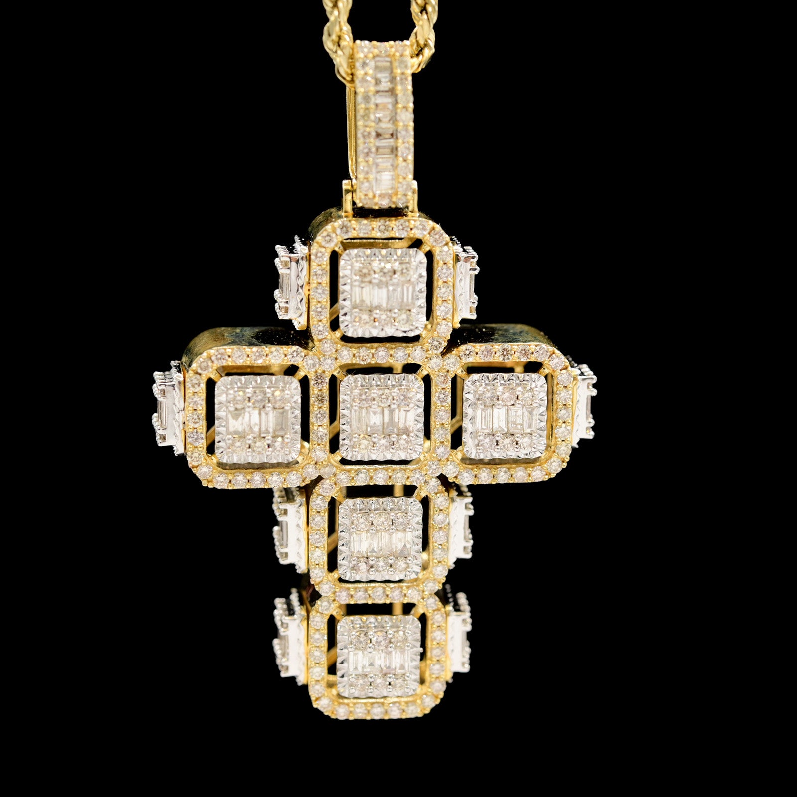 10k Yellow Gold 6.5CT Baguette Diamond Cross Cageback Pendant 15.3g Mens Charm.