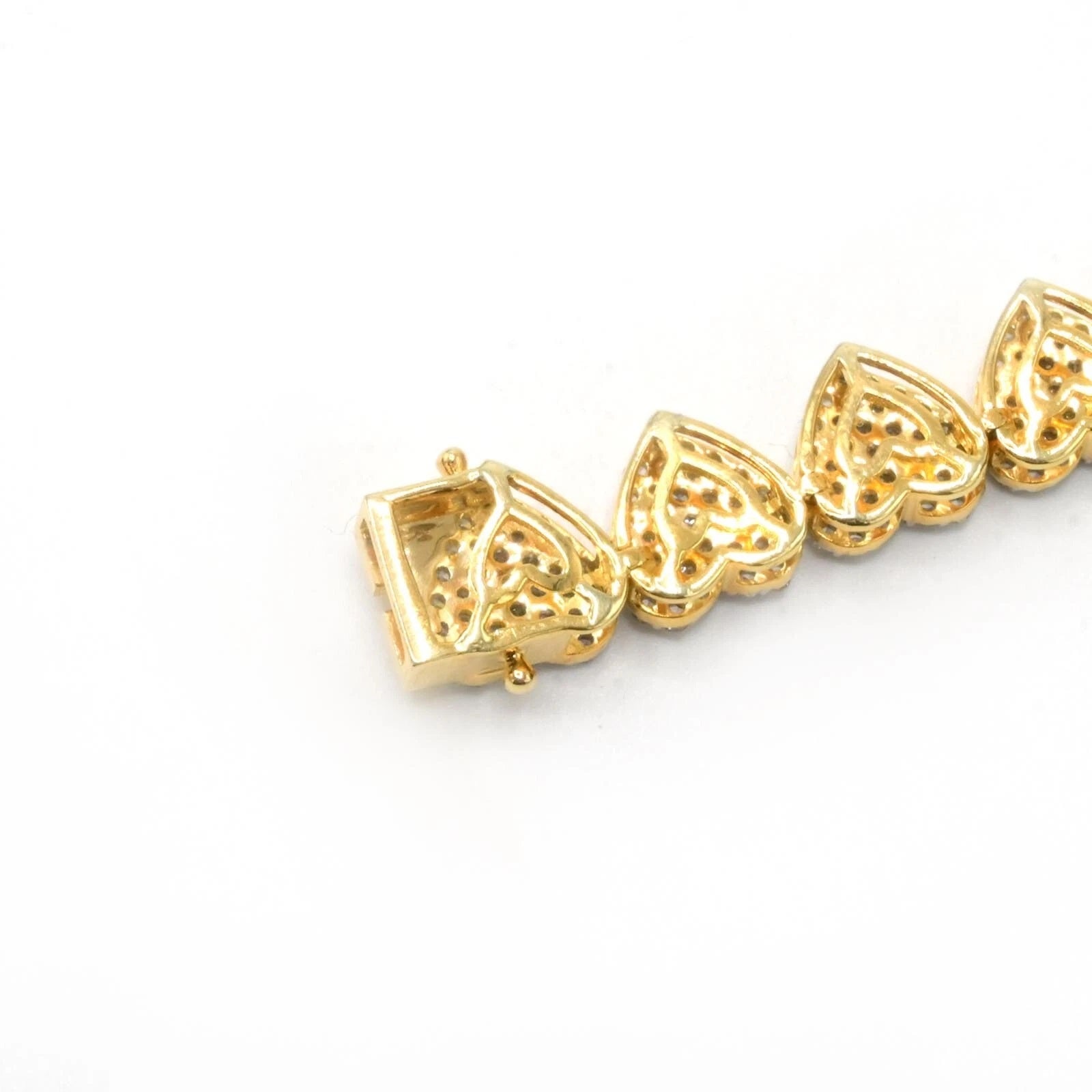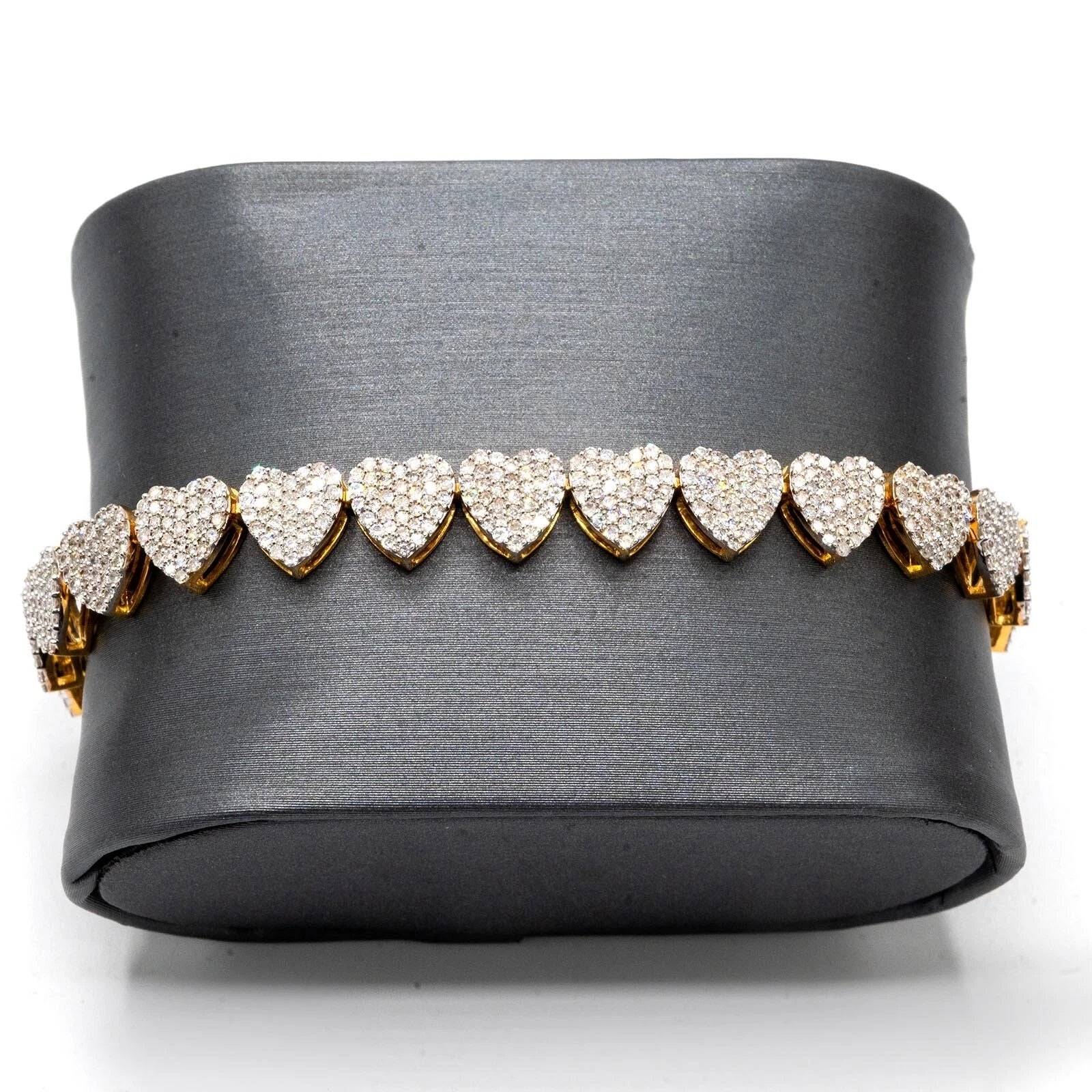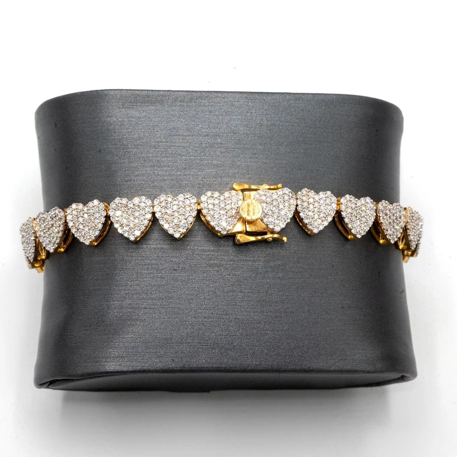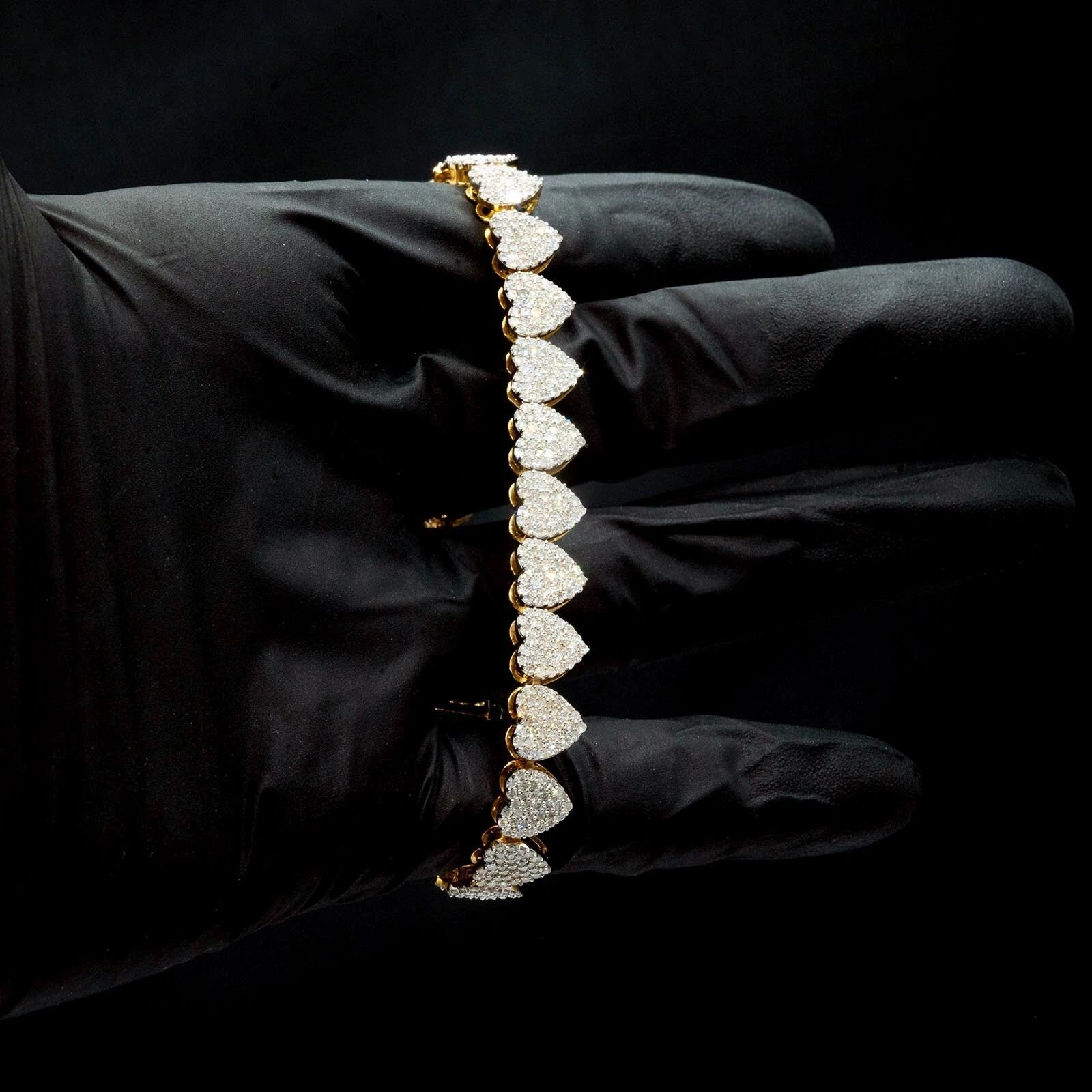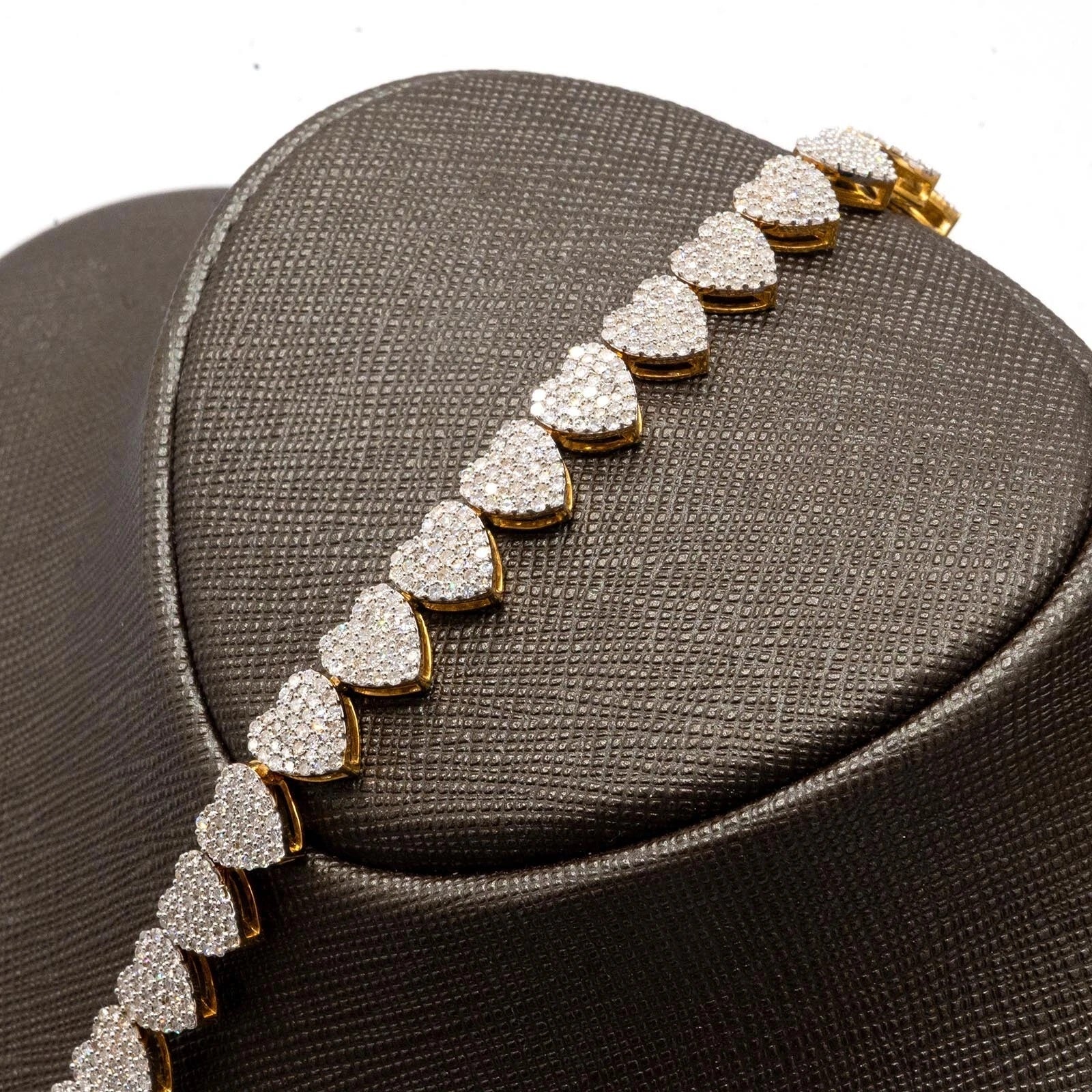 This 7.5MM 10k Yellow Gold 4.12 CTW Diamond Heart Tennis Bracelet by SB Jewelers is a stunning piece of fine jewelry perfect for special occasions like anniversaries, birthdays, engagements, and more. The bracelet features a polished finish and is professionally tested and stamped for quality assurance. The natural diamonds have a color grade of H-I and a clarity grade of SI, making them sparkle beautifully in the light. The armlet is 7 inches in length and weighs 15.03 grams, showcasing the luxurious craftsmanship and attention to detail. Additionally, this bracelet comes in a complimentary premium jewelry box, making it a perfect gift for both mothers and fathers.