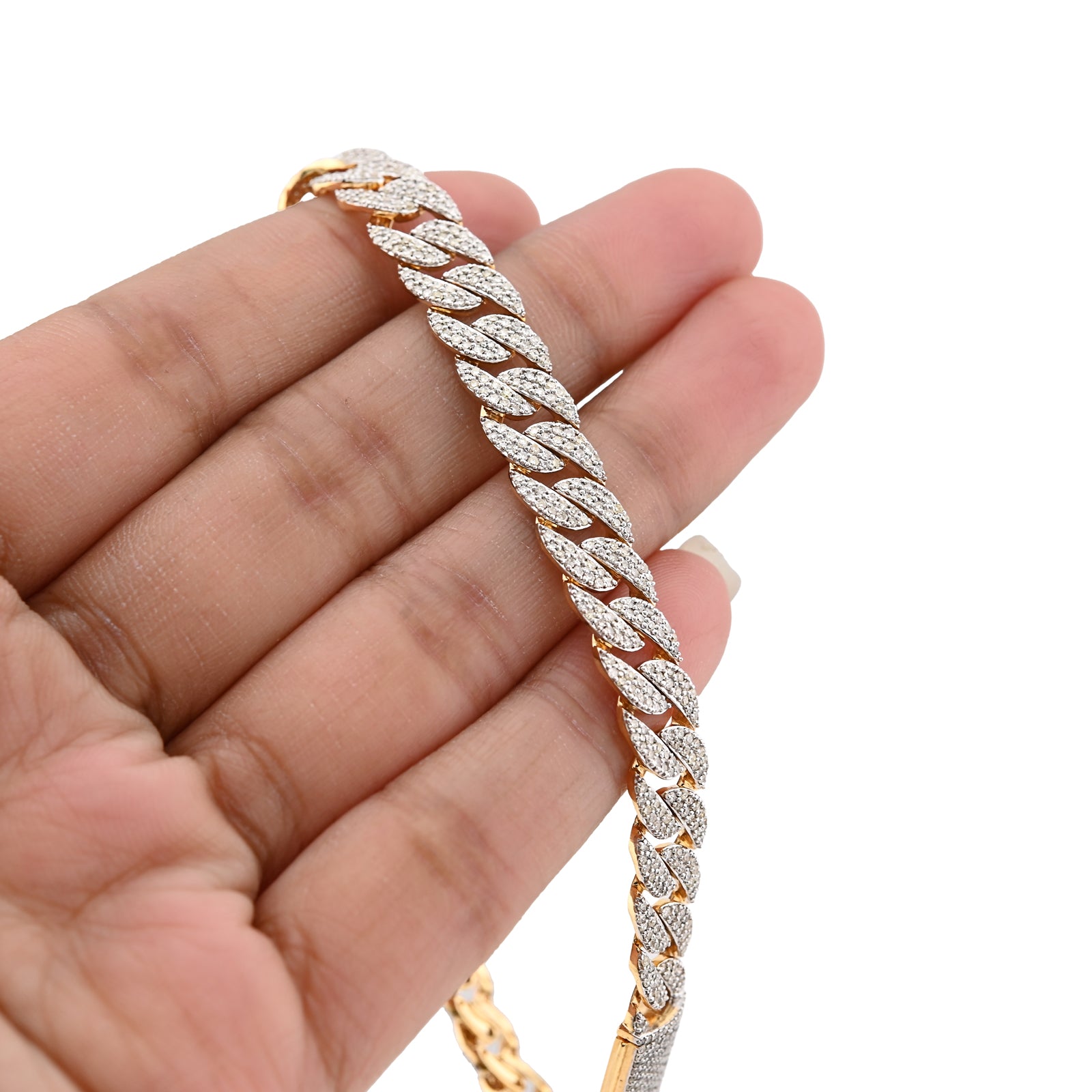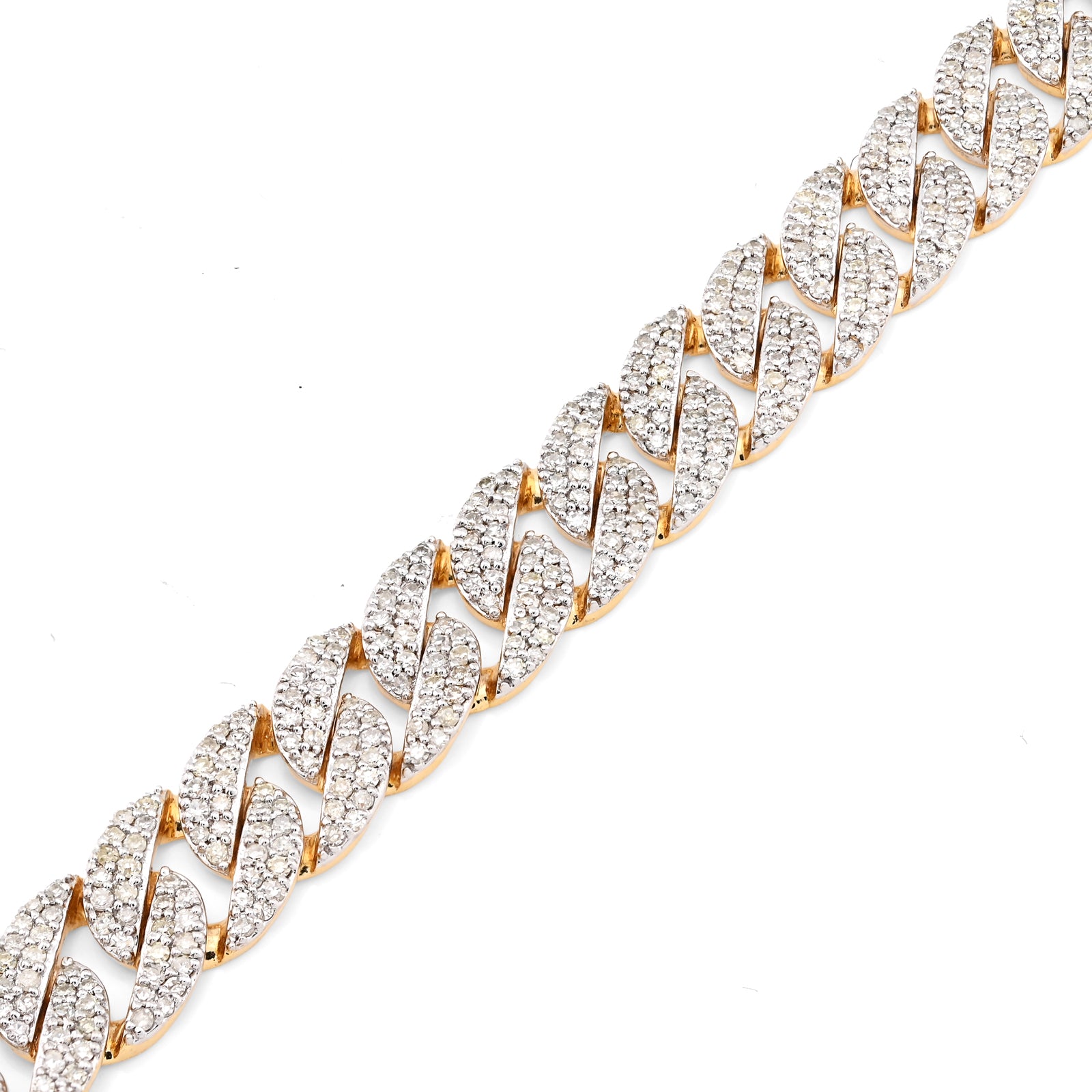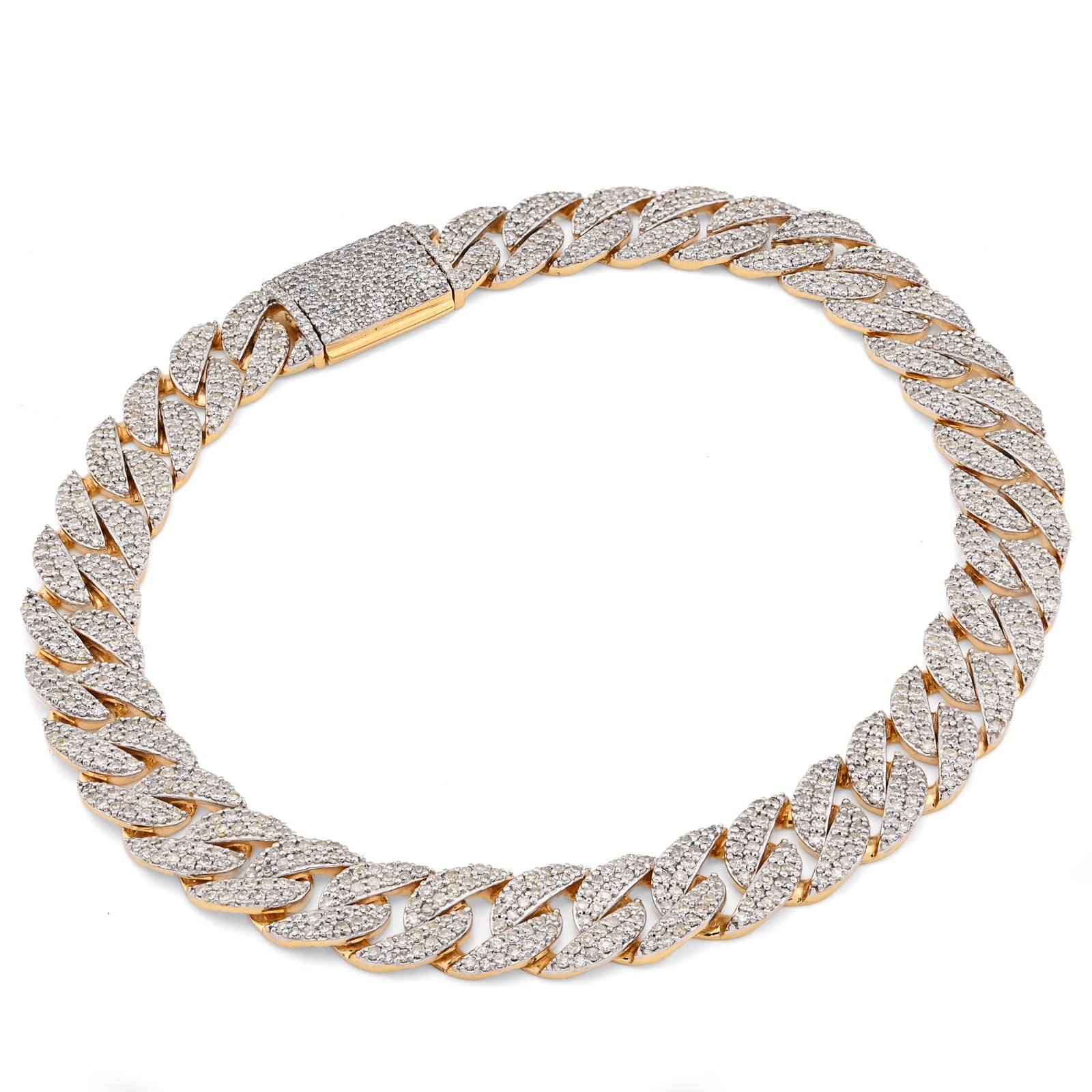 Command attention with this distinguished 10k yellow gold Cuban link bracelet, engineered for the modern man who appreciates fine craftsmanship. The robust 8mm links, totaling 16.2 grams, create an authoritative presence while the warm glow of genuine yellow gold adds timeless appeal. Set with 3.9 carats of natural diamonds, this piece transcends typical men's jewelry—each stone reflects authentic brilliance and enduring value. The classic Cuban link design remains perpetually relevant, offering versatility across casual and formal settings alike. At 8 inches, this bracelet fits comfortably while making an unmistakable statement about your refined sensibilities and appreciation for quality.