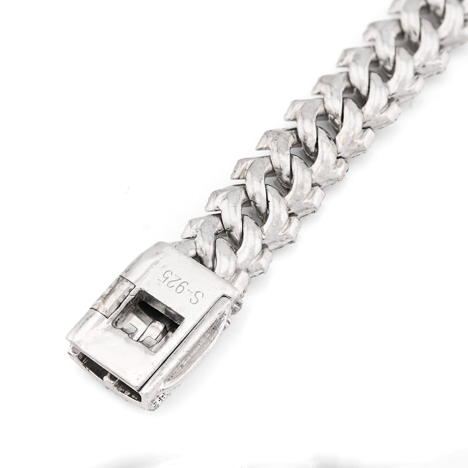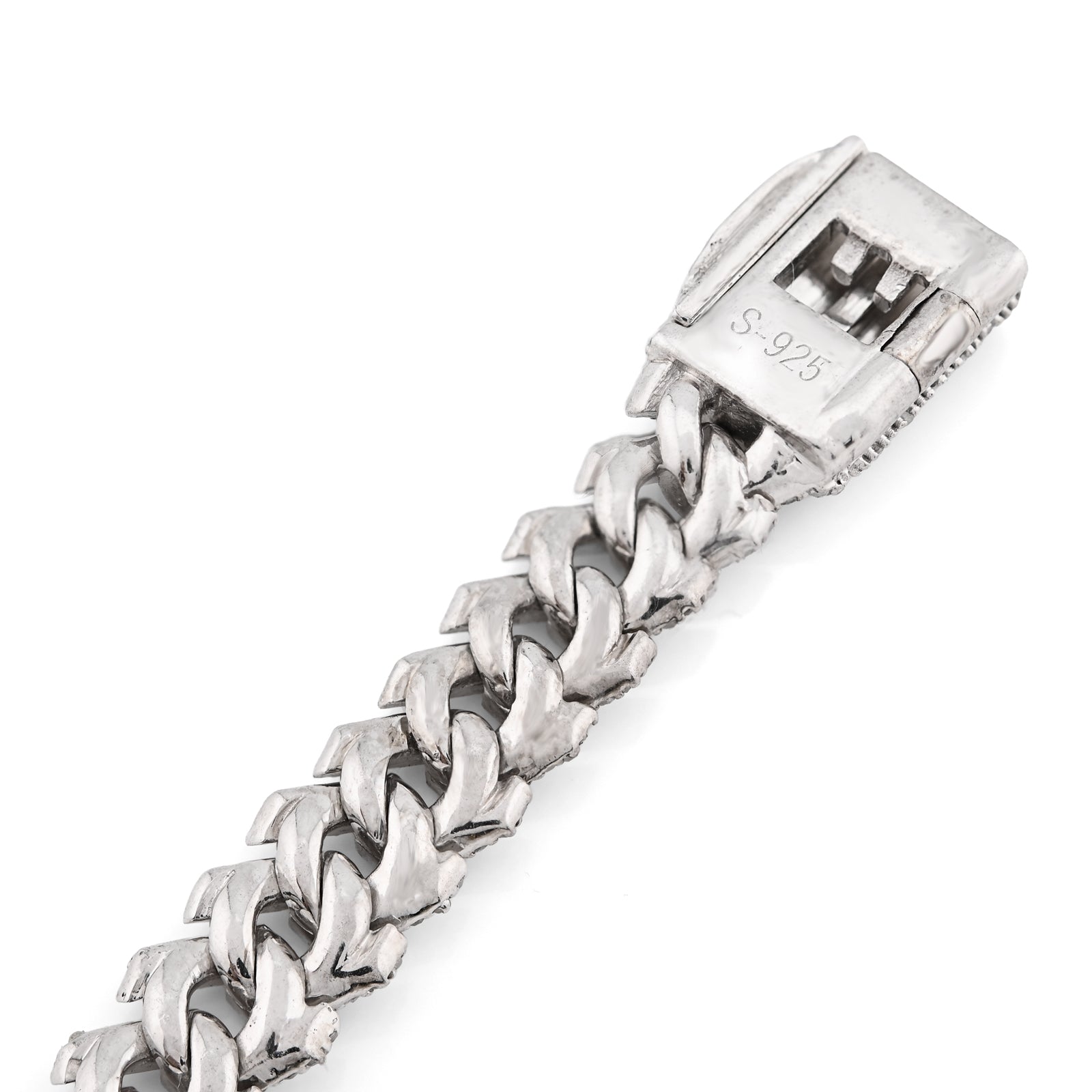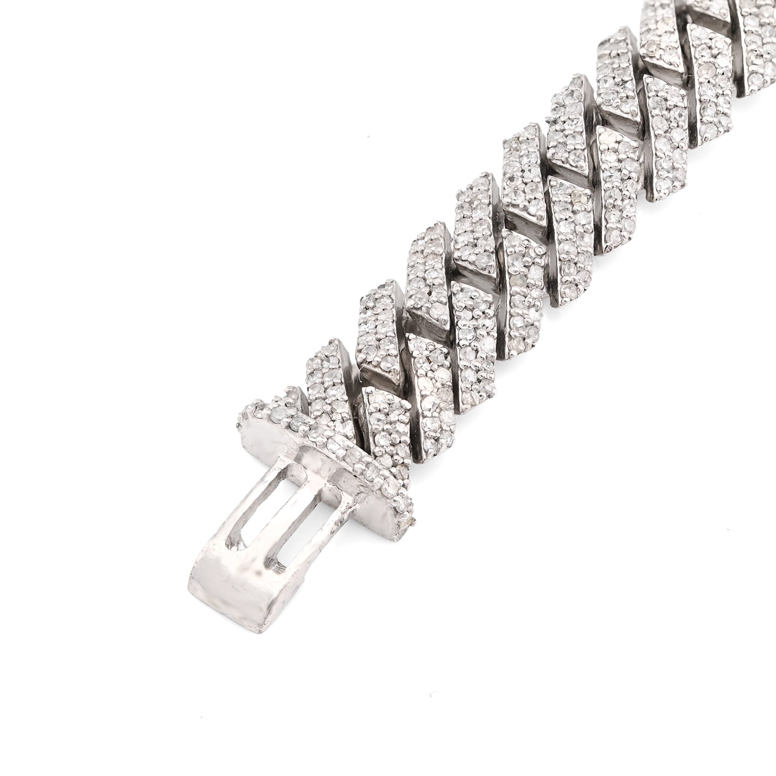 This striking 925 sterling silver bracelet merges bold design with understated luxury. The substantial 8mm Cuban link construction, weighing 23.8 grams, provides a commanding presence on the wrist while maintaining refined proportions. Adorned with 3.9 carats of natural diamonds, each stone catches light with authentic brilliance, elevating the piece beyond mere accessory to statement jewelry. The serpentine motif adds an intriguing dimension to the classic Cuban link, creating visual depth that appeals to those with discerning taste. Perfectly sized at 8 inches, this bracelet delivers the gravitas of fine jewelry with the versatility to transition seamlessly from day to evening wear.