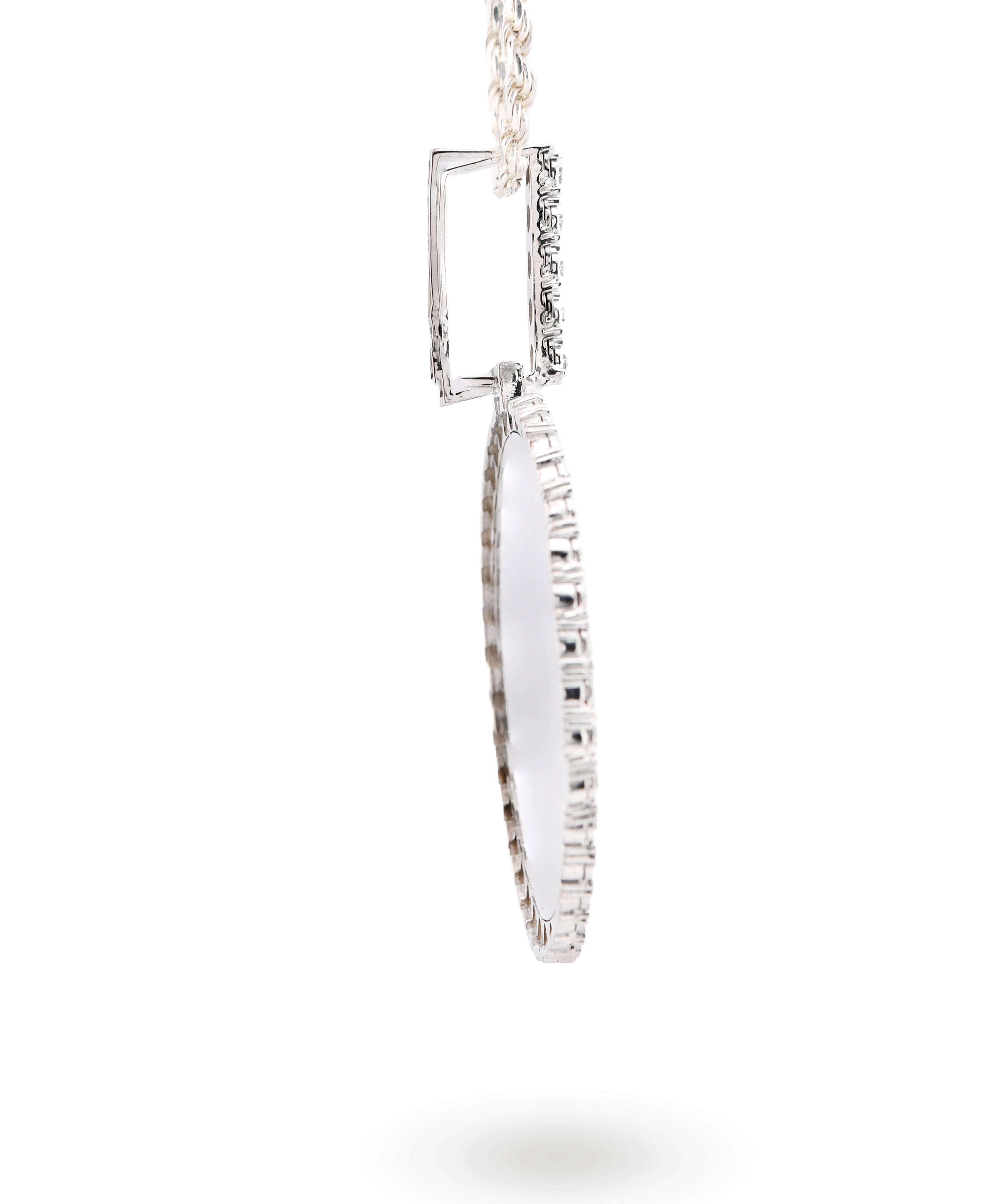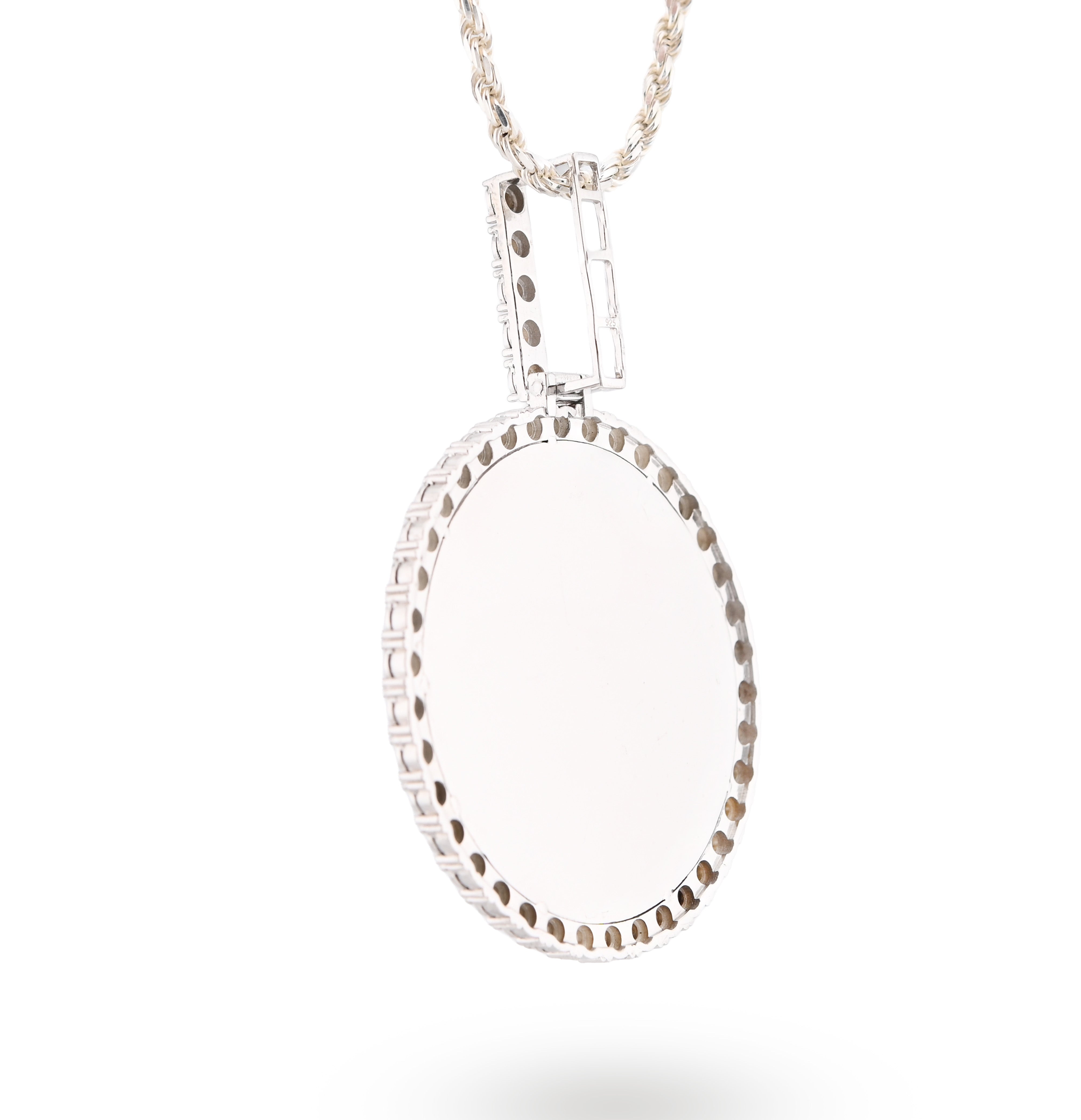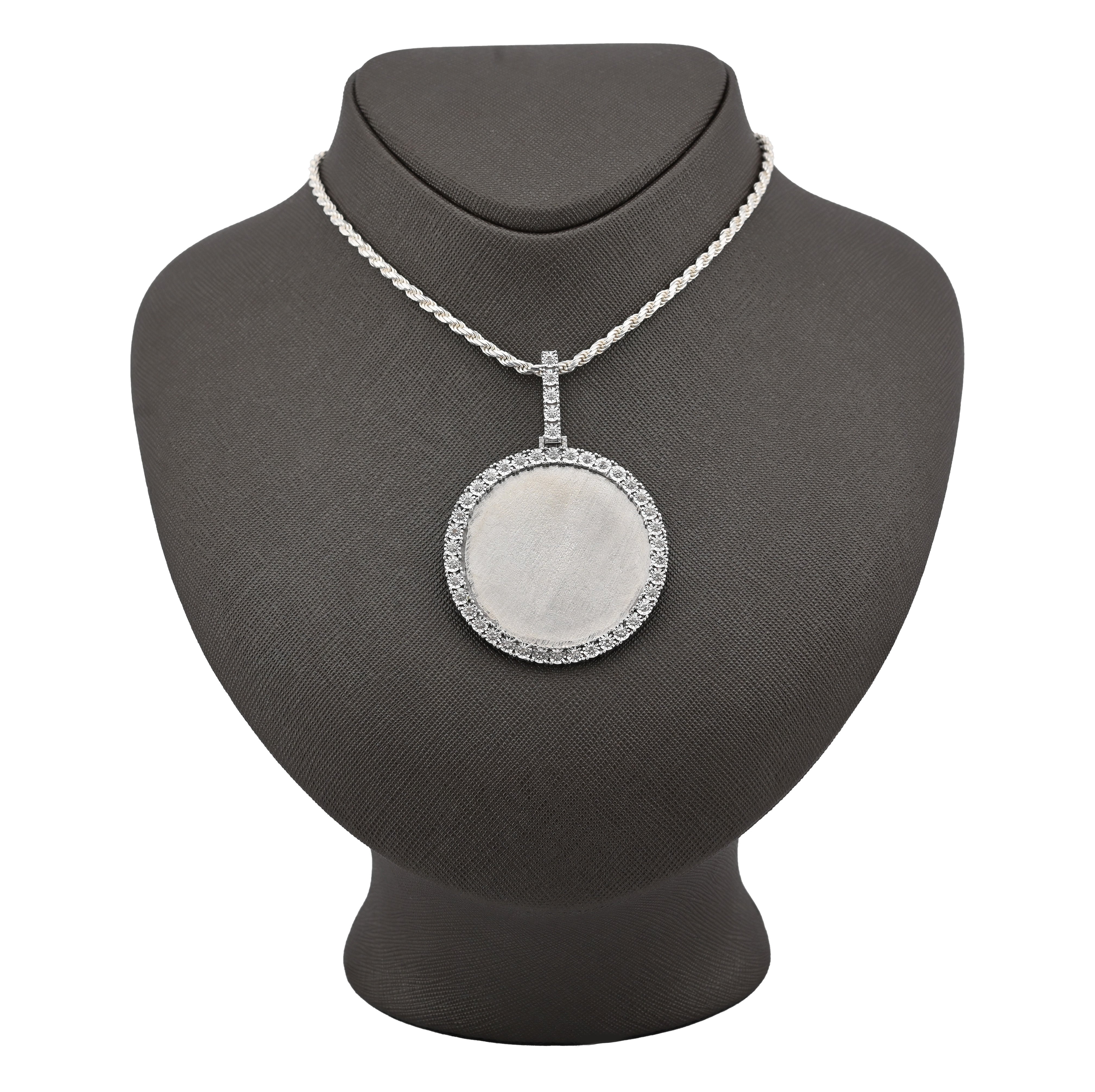Preserve cherished moments with this elegant memory pendant charm in lustrous 925 sterling silver. This substantial piece, weighing 15.1 grams, features a brilliant 0.6-carat genuine diamond and a round engraved design perfect for holding a treasured photograph or personal inscription. Its refined craftsmanship transforms everyday wear into a meaningful keepsake. An exceptional choice for commemorating loved ones or marking life's most precious memories with timeless sophistication and enduring elegance.