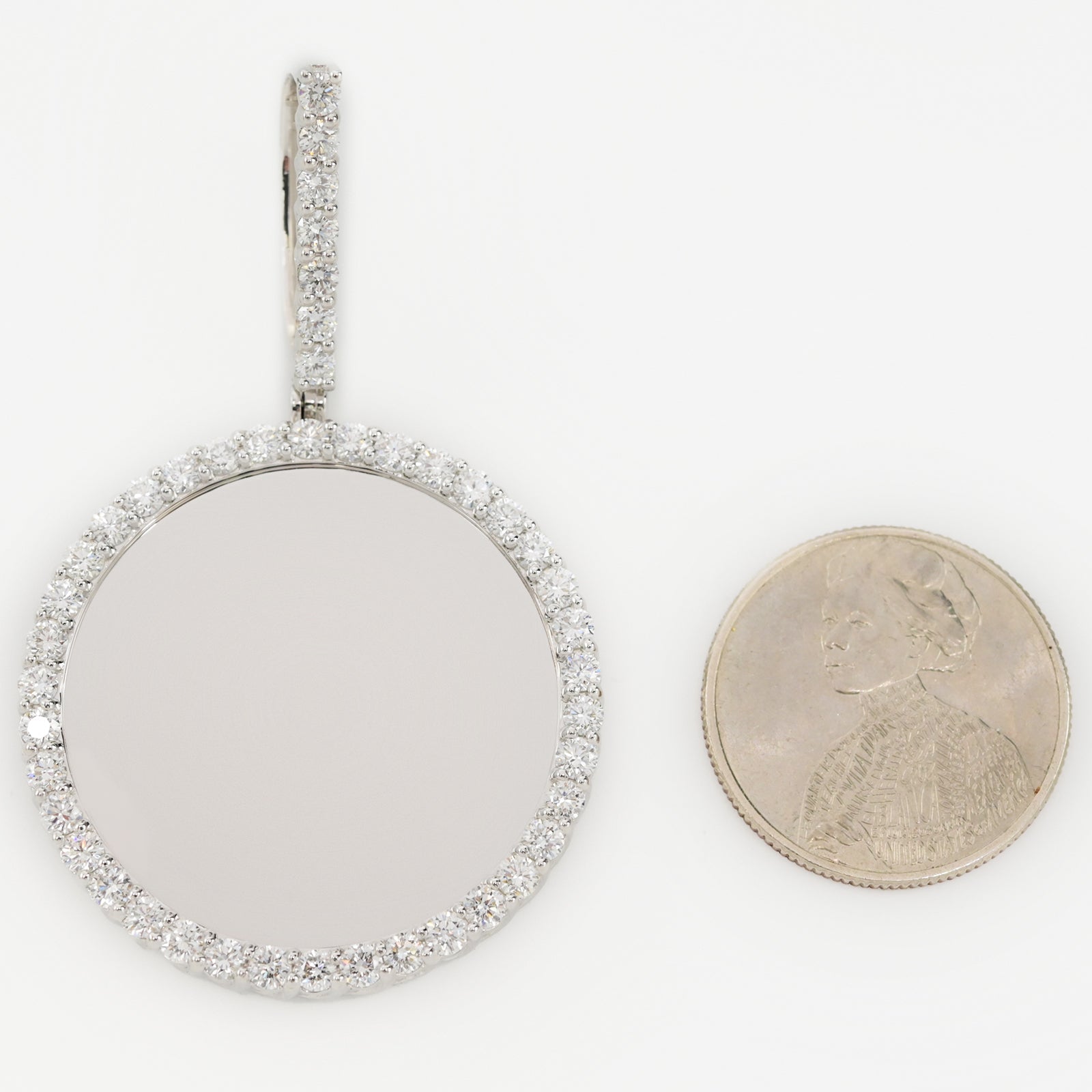Introduce understated luxury with this commanding 925 silver pendant, anchored by an impressive 3.35 carats of lab-grown diamonds arranged in bold pointer accents. The substantial 11.3-gram weight delivers presence and gravitas, while the picture charm frame invites personalization with cherished moments. Lab-grown diamonds offer exceptional brilliance and ethical sourcing, making this piece both visually stunning and conscientiously crafted. The sterling silver setting provides lasting durability and a luminous backdrop for the diamond display. An investment-worthy pendant that seamlessly bridges contemporary design with timeless sophistication.