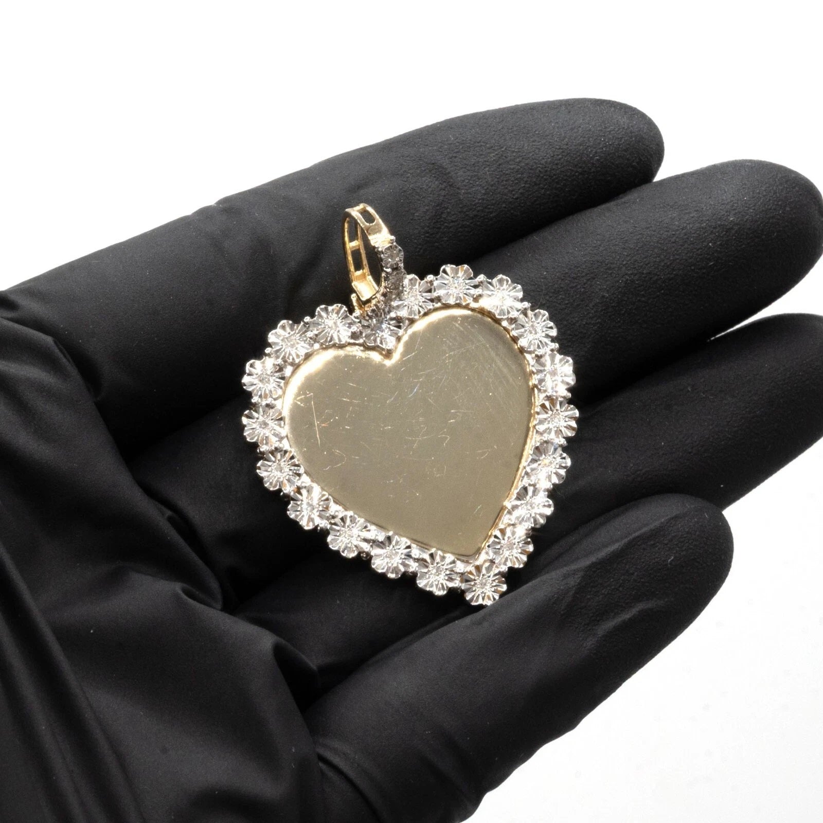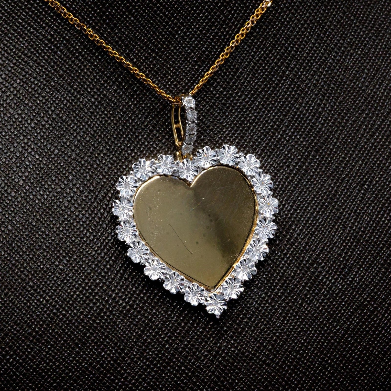 This 925 Silver with 0.1CTW Diamond Illusion Setting Heart Memory Pendant is a charming and elegant piece of fine jewelry suitable for various occasions like anniversaries, weddings, birthdays, and special holidays like Father's Day and Mother's Day. The pendant features a heart shape design with an illusion setting of sparkling diamonds, creating a beautiful diamond illusion effect. Crafted with polished silver and featuring a bail that fits up to an 8mm chain, this pendant is a thoughtful gift for someone special, symbolizing love, memory, and remembrance. The pendant comes in a complimentary SB Signature jewelry box and is professionally tested and stamped for quality assurance.