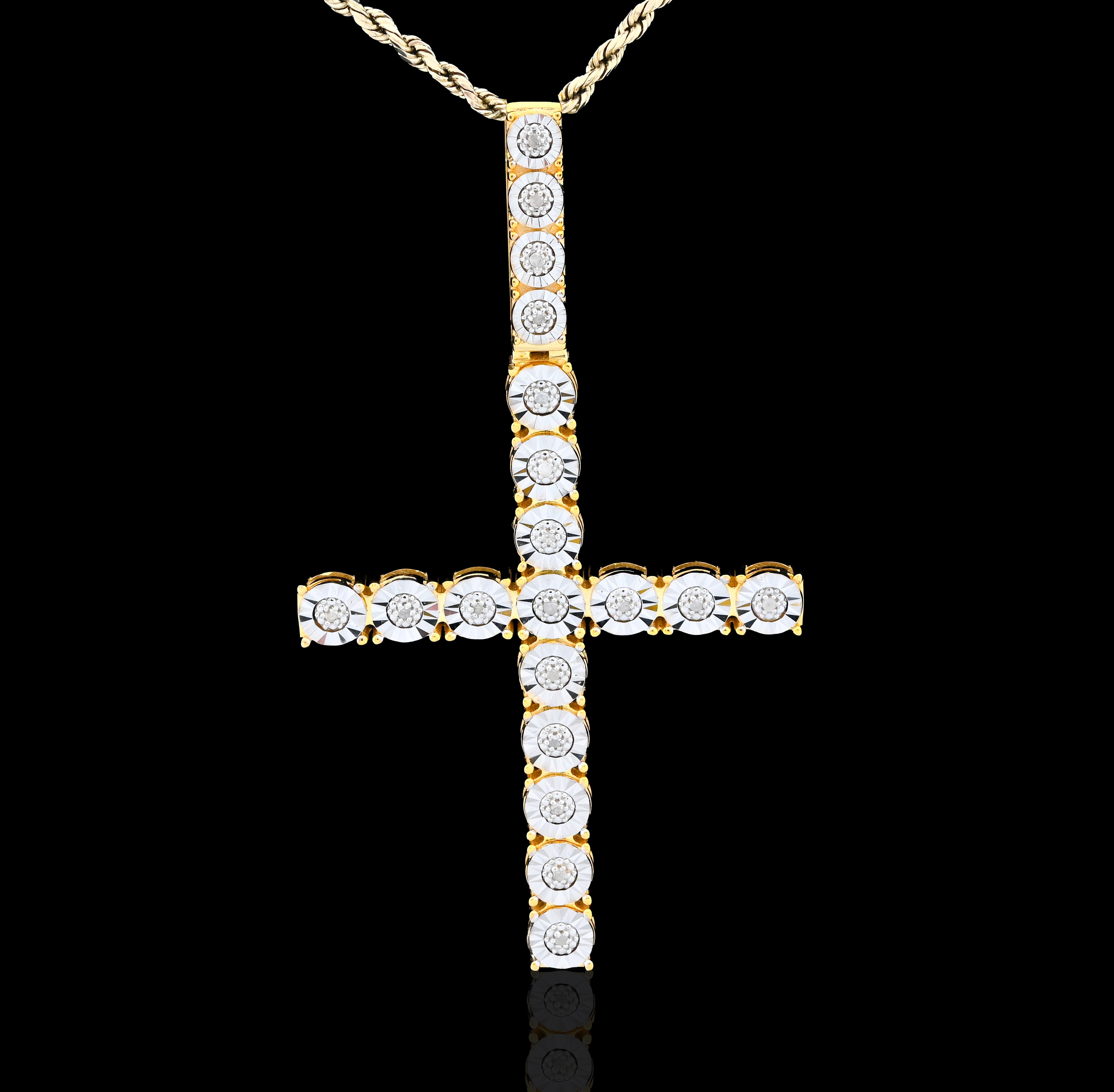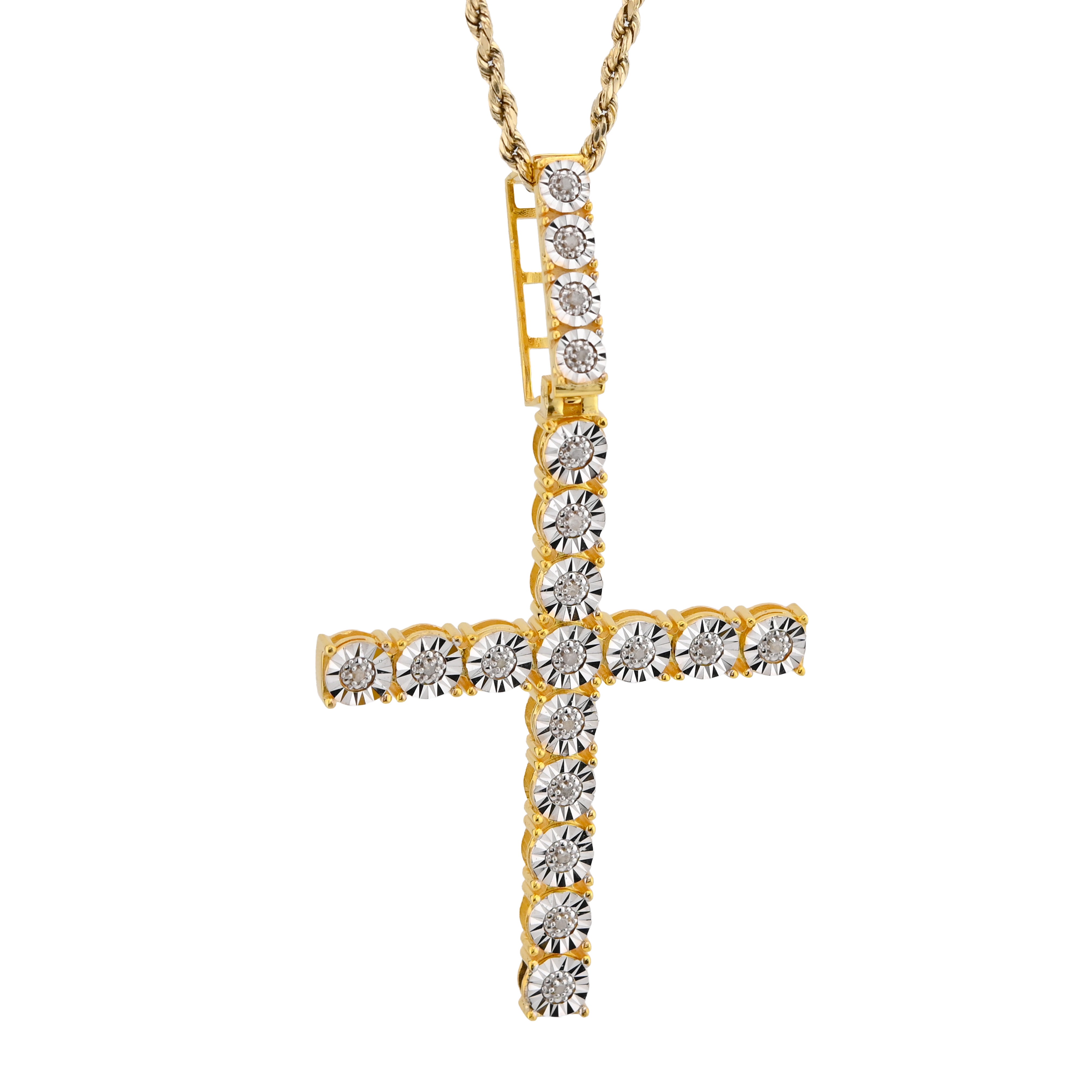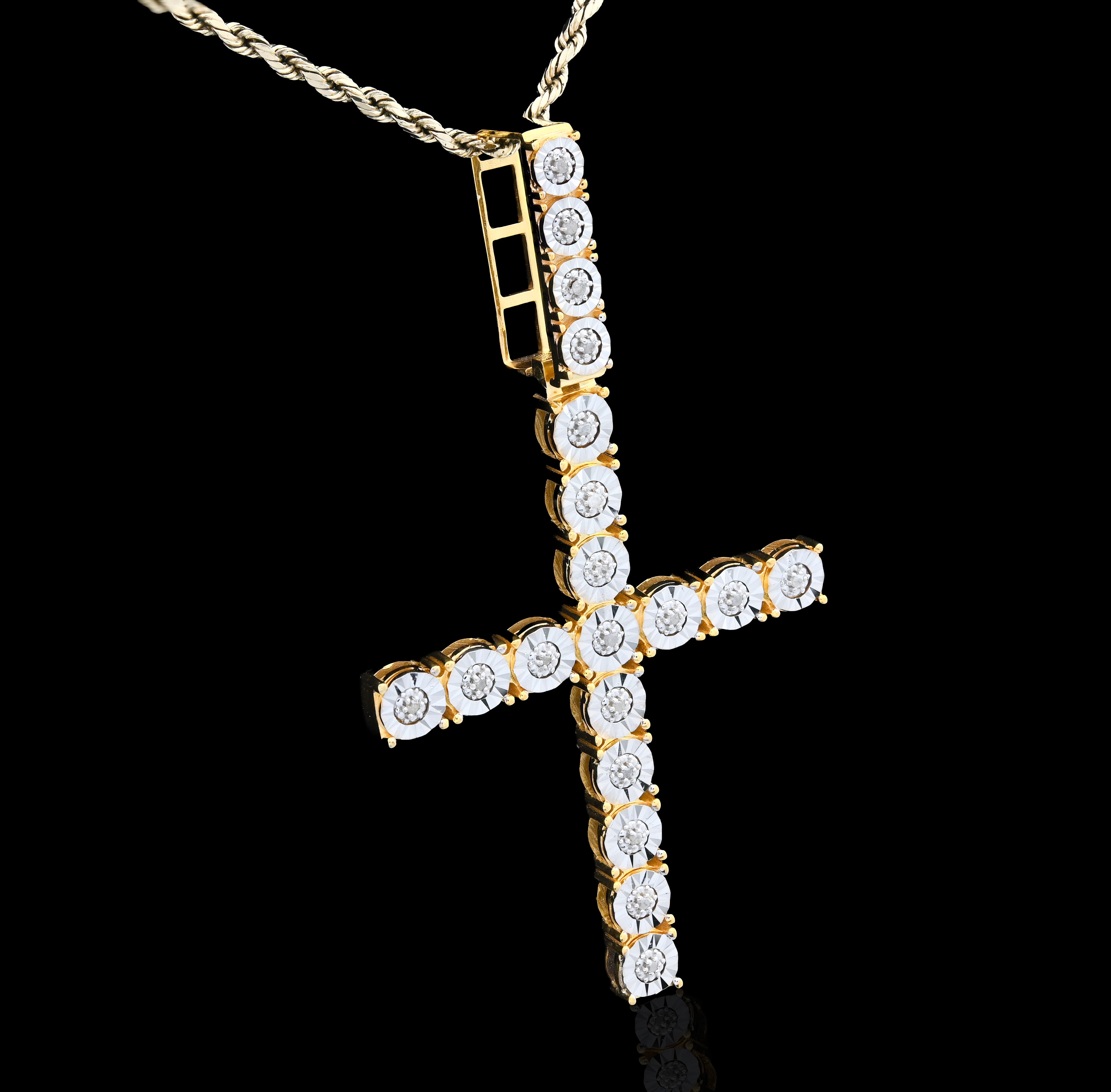 Embrace spiritual elegance with this striking cross pendant charm crafted in lustrous 925 sterling silver. Featuring a magnificent 0.6-carat genuine diamond in a sophisticated illusion setting that amplifies its visual impact, this refined piece radiates timeless grace. Weighing 7.8 grams, its substantial presence makes a meaningful statement whether worn as a standalone pendant or treasured charm. An ideal selection for those seeking jewelry that honors faith and personal conviction with exceptional craftsmanship and enduring beauty.