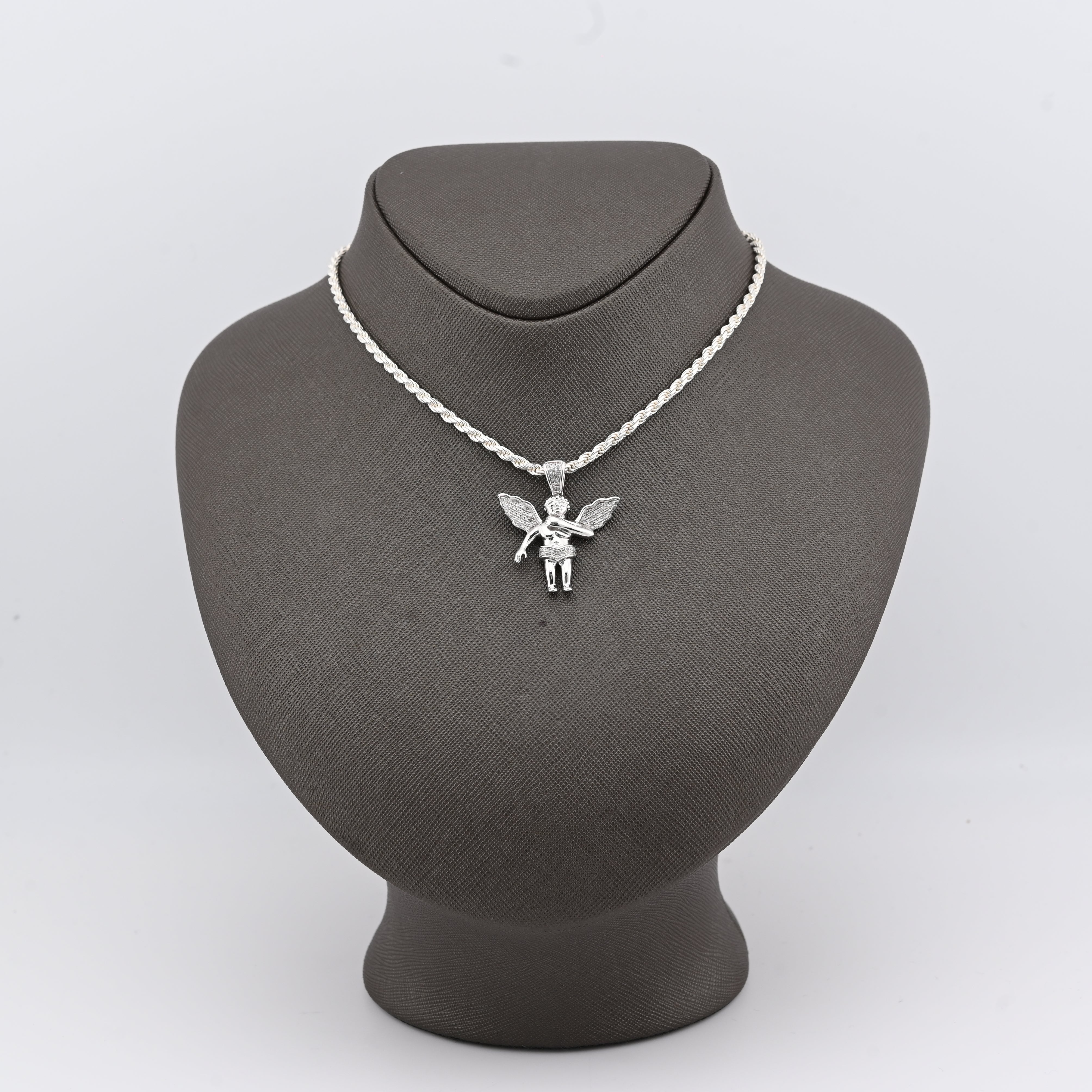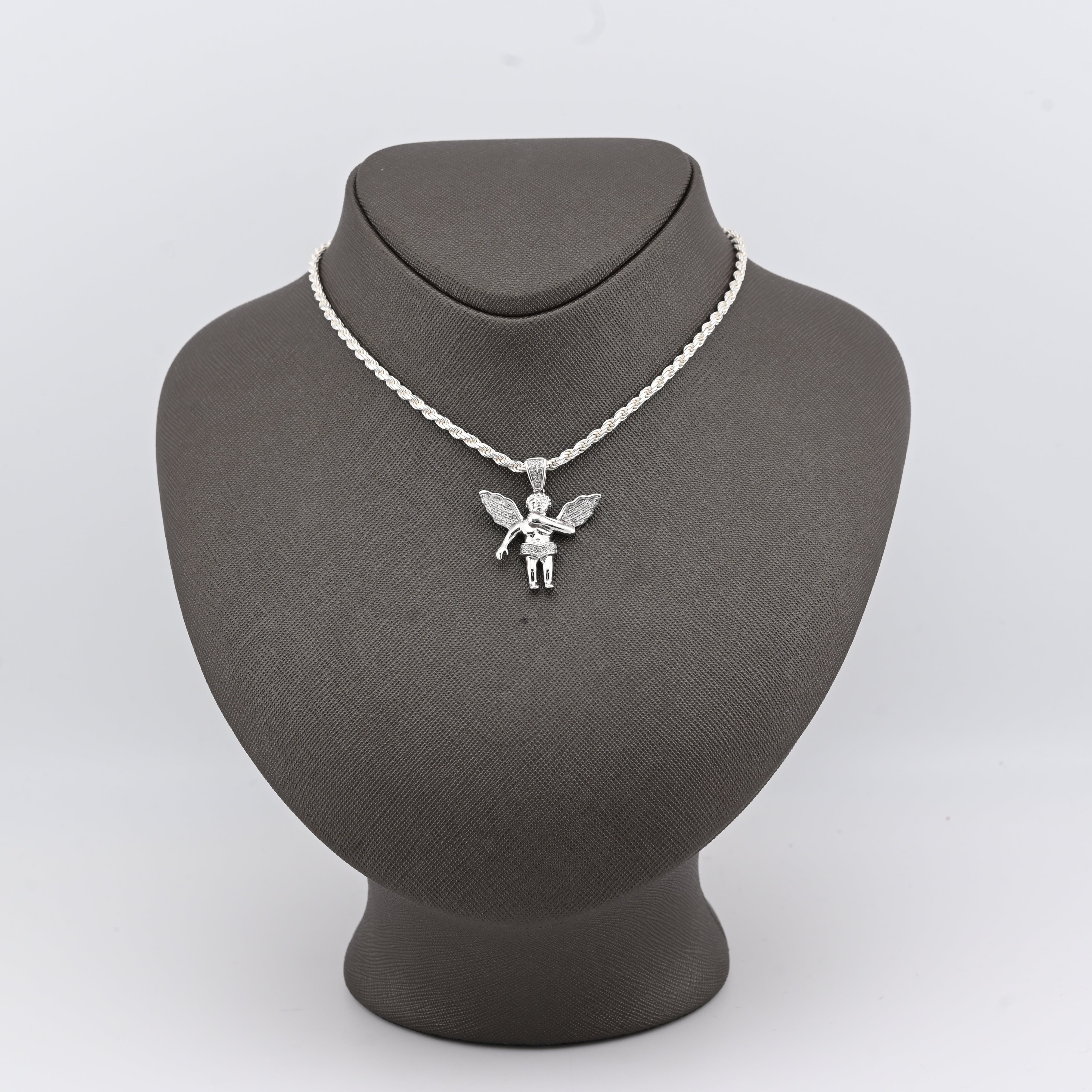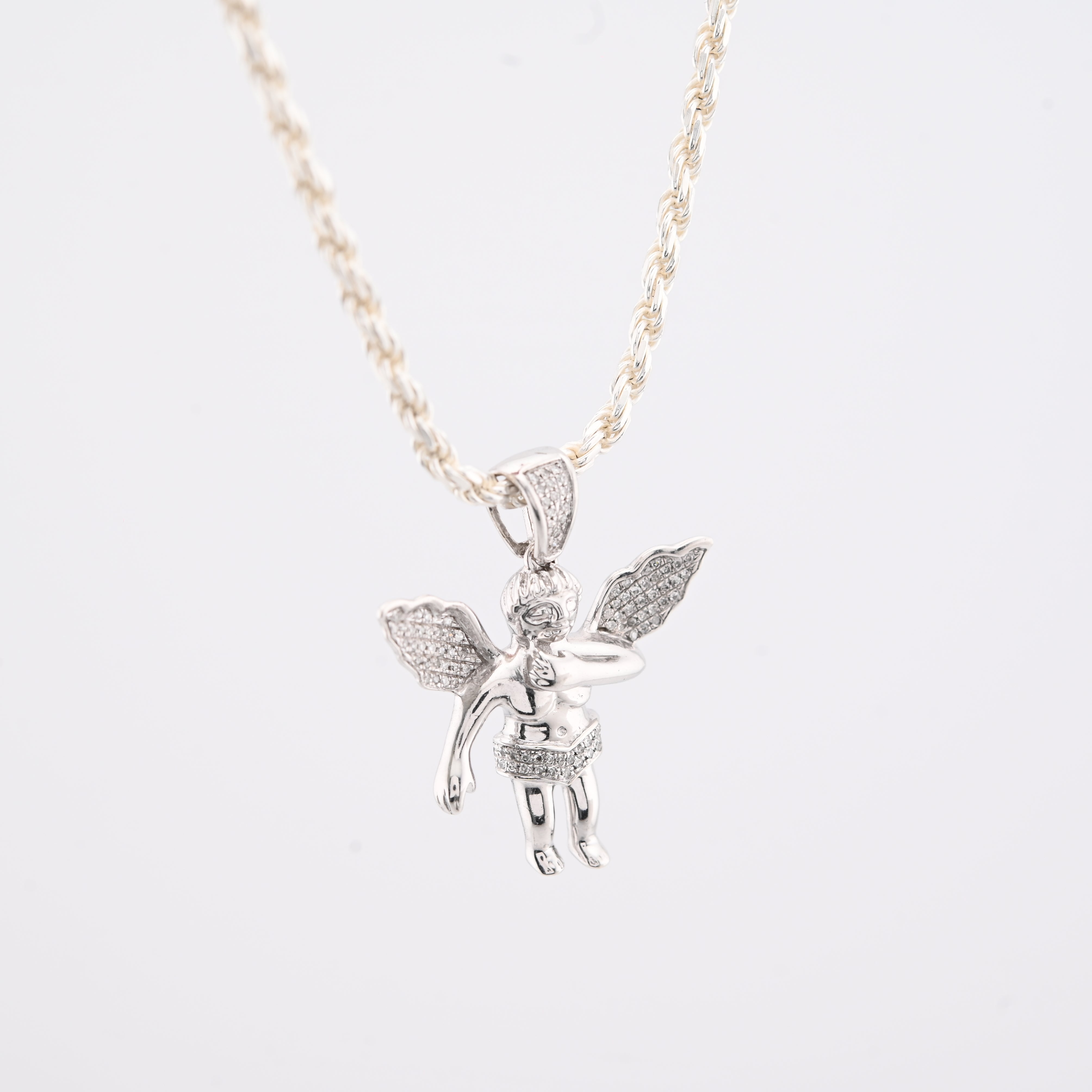 This ethereal 925 sterling silver pendant features a graceful Angel Cherub design that evokes celestial protection and divine grace. Adorned with 0.25 carats of natural diamonds that shimmer with gentle luminosity, the piece weighs just 4.6 grams, making it perfectly suited for layering or standalone wear. The angelic imagery resonates with those seeking spiritual comfort and meaningful symbolism in their jewelry collection. Crafted with meticulous attention to detail, this charm combines the timeless appeal of sterling silver with the enduring sparkle of natural diamonds, creating an accessible yet sophisticated piece that celebrates faith and beauty.