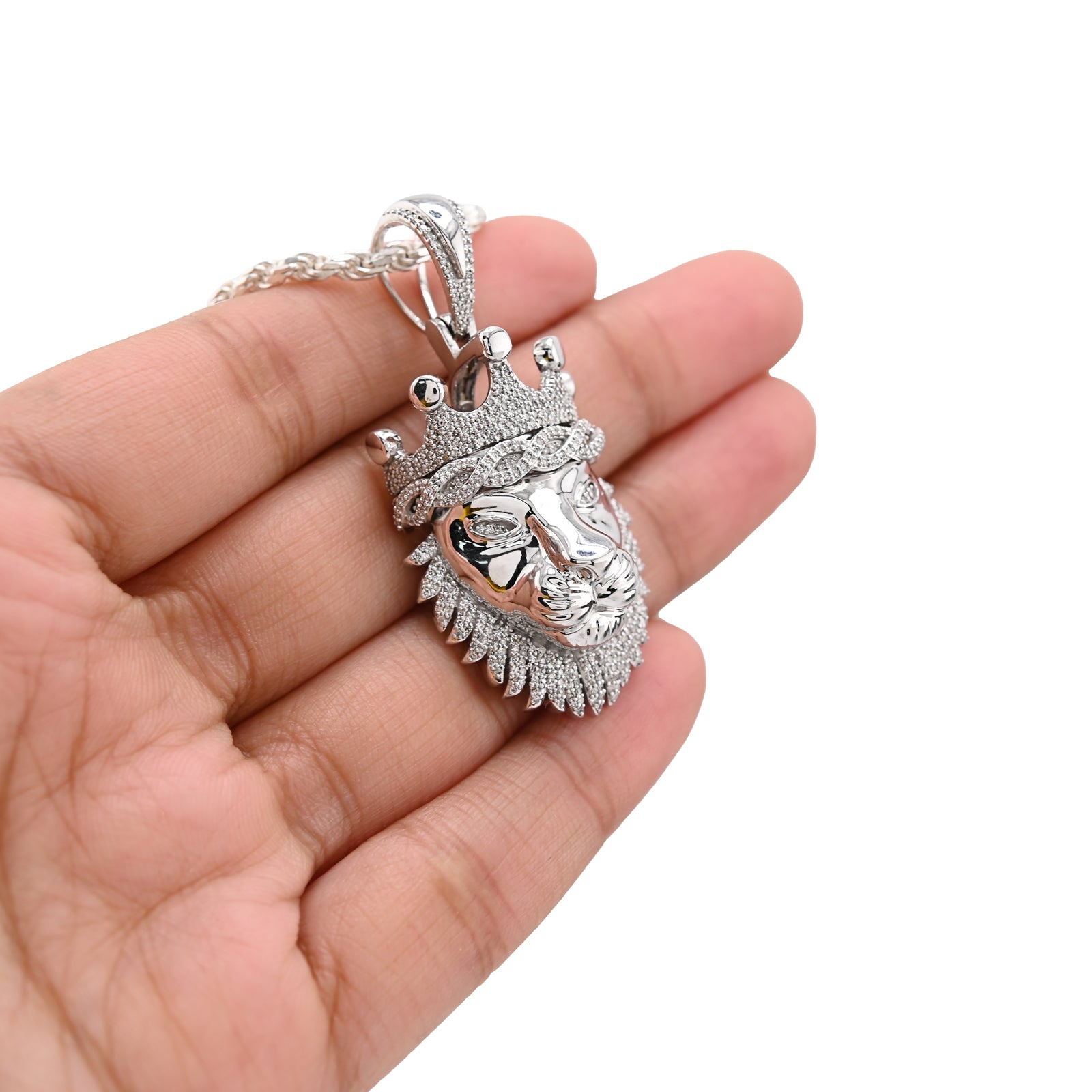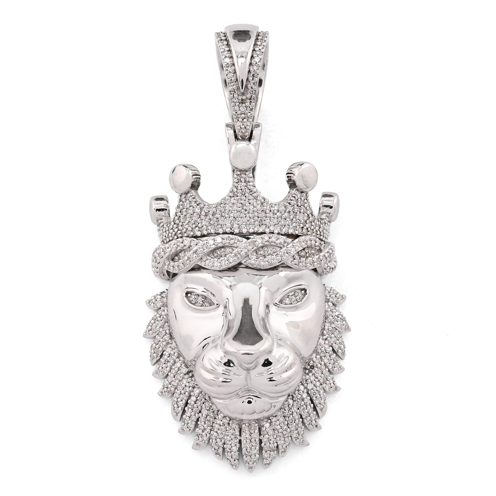 Channel strength and authority with this commanding lion head pendant in lustrous 925 sterling silver. Featuring 0.73 carats of natural diamonds that accentuate the majestic feline's features, the stones add refined sparkle to this powerful symbol of courage and dominance. Weighing 11.9 grams, this substantial piece makes an unmistakable impression, ideal for the discerning man who appreciates bold symbolism and exceptional craftsmanship. The lion's regal presence combined with genuine gemstones creates a pendant that transcends fashion, becoming a personal emblem of confidence and distinction.