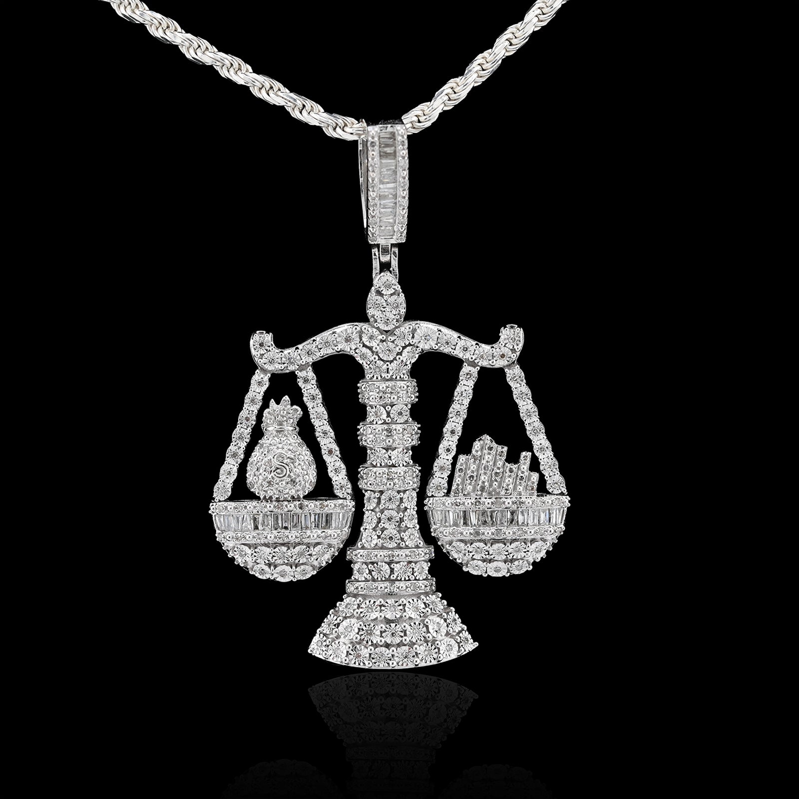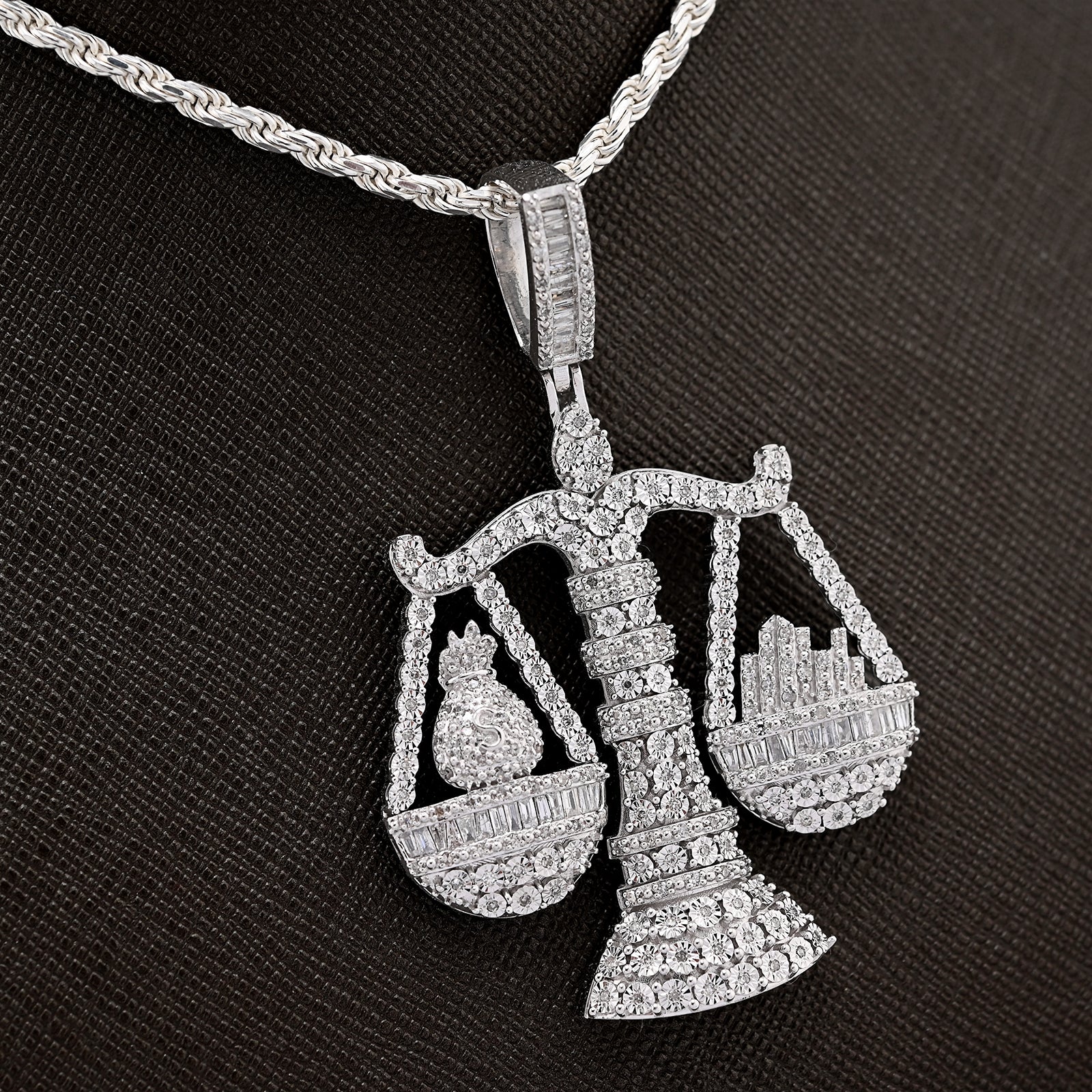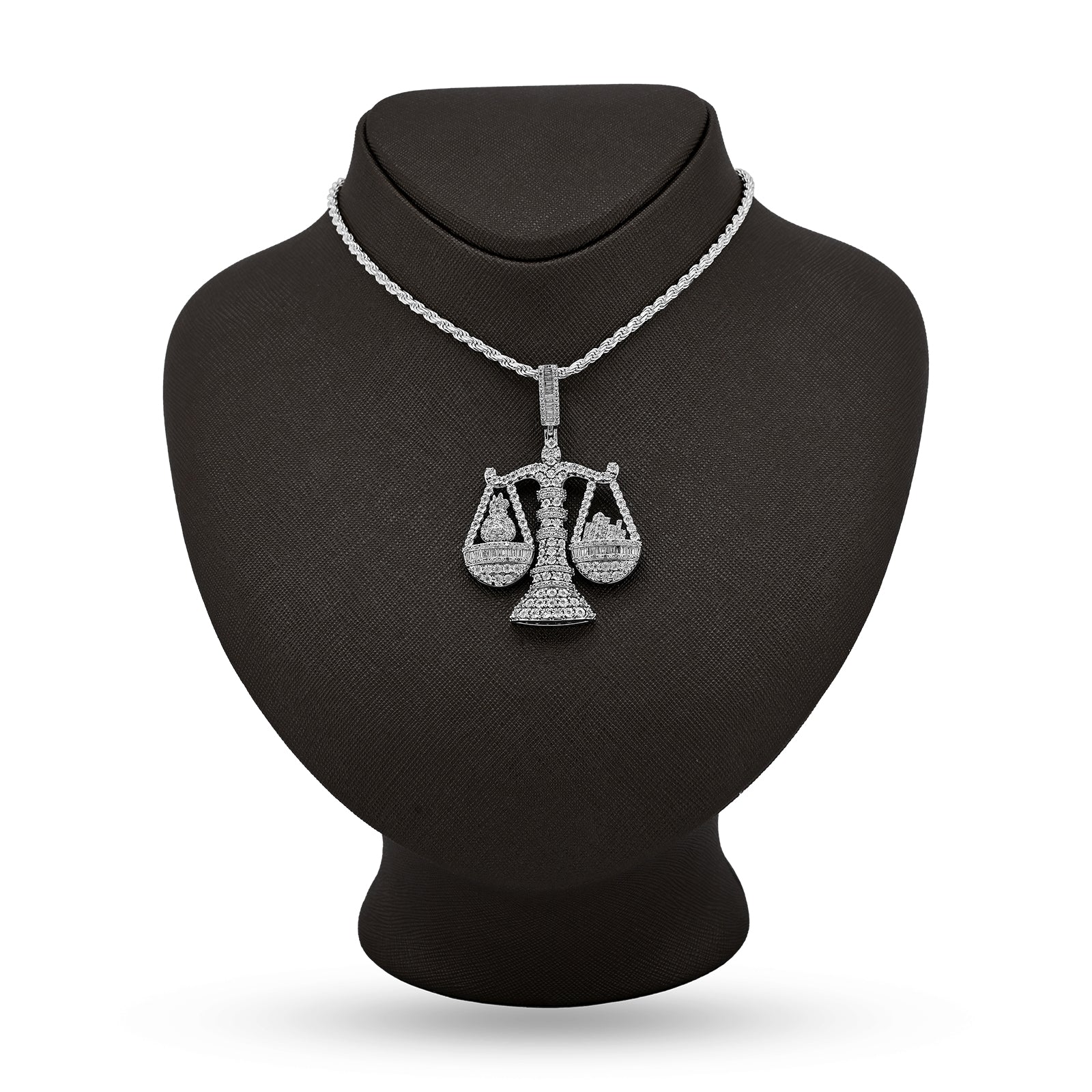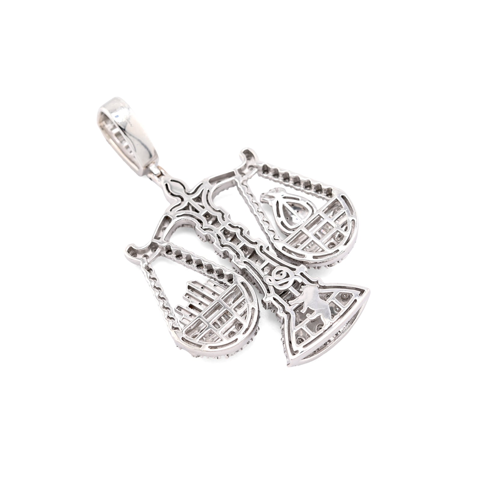 Celebrate balance and harmony with this exquisite Libra Scale pendant, meticulously crafted in 925 sterling silver. Featuring 2.4 carats of natural diamonds, this sophisticated charm captures the essence of the zodiac's most elegant sign. Weighing 16.9 grams, the piece showcases exceptional craftsmanship and timeless design. Perfect as a meaningful gift or personal talisman, this pendant pairs beautifully with any chain and makes an ideal addition to charm bracelets or collections. A refined expression of celestial elegance.