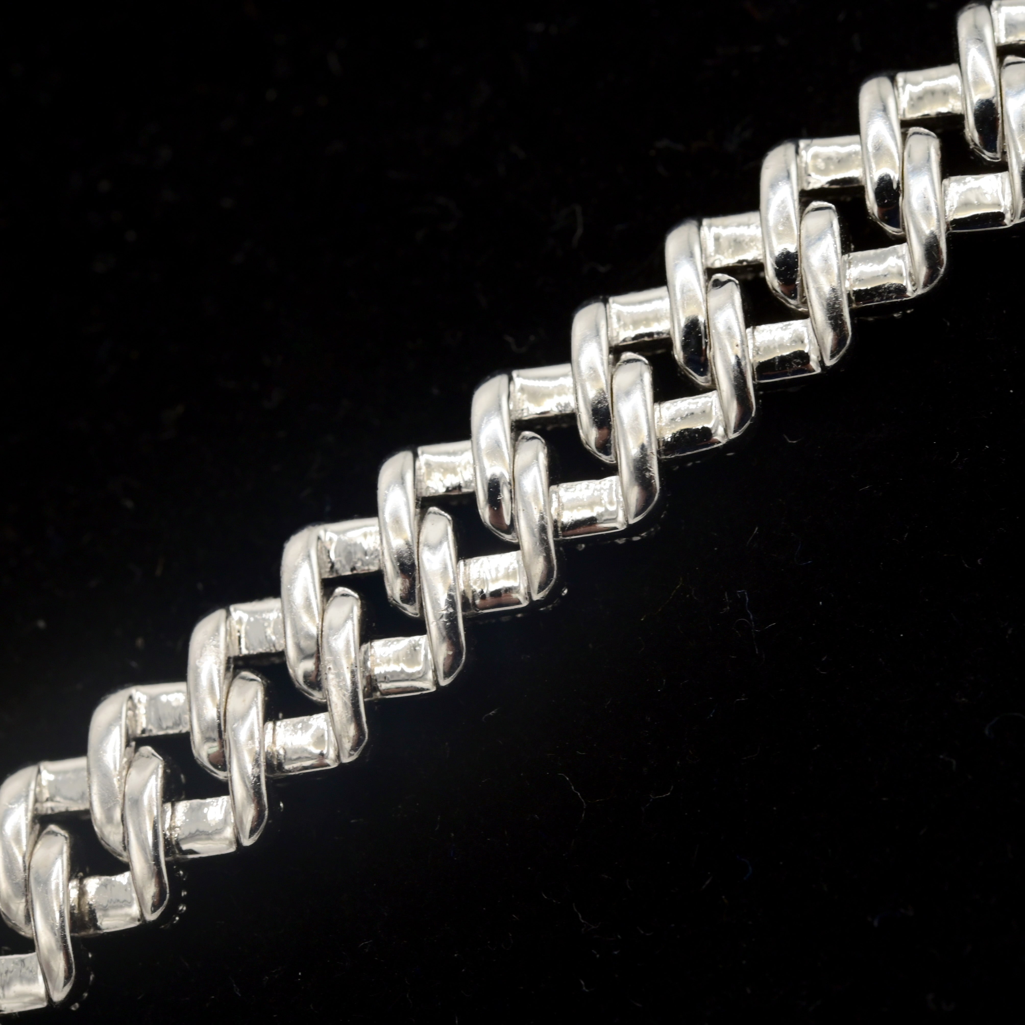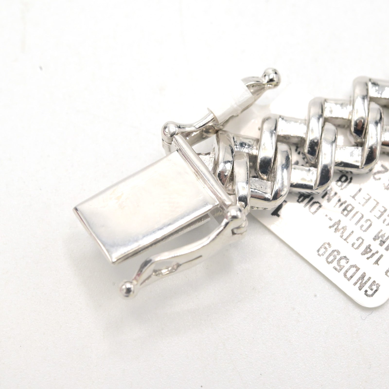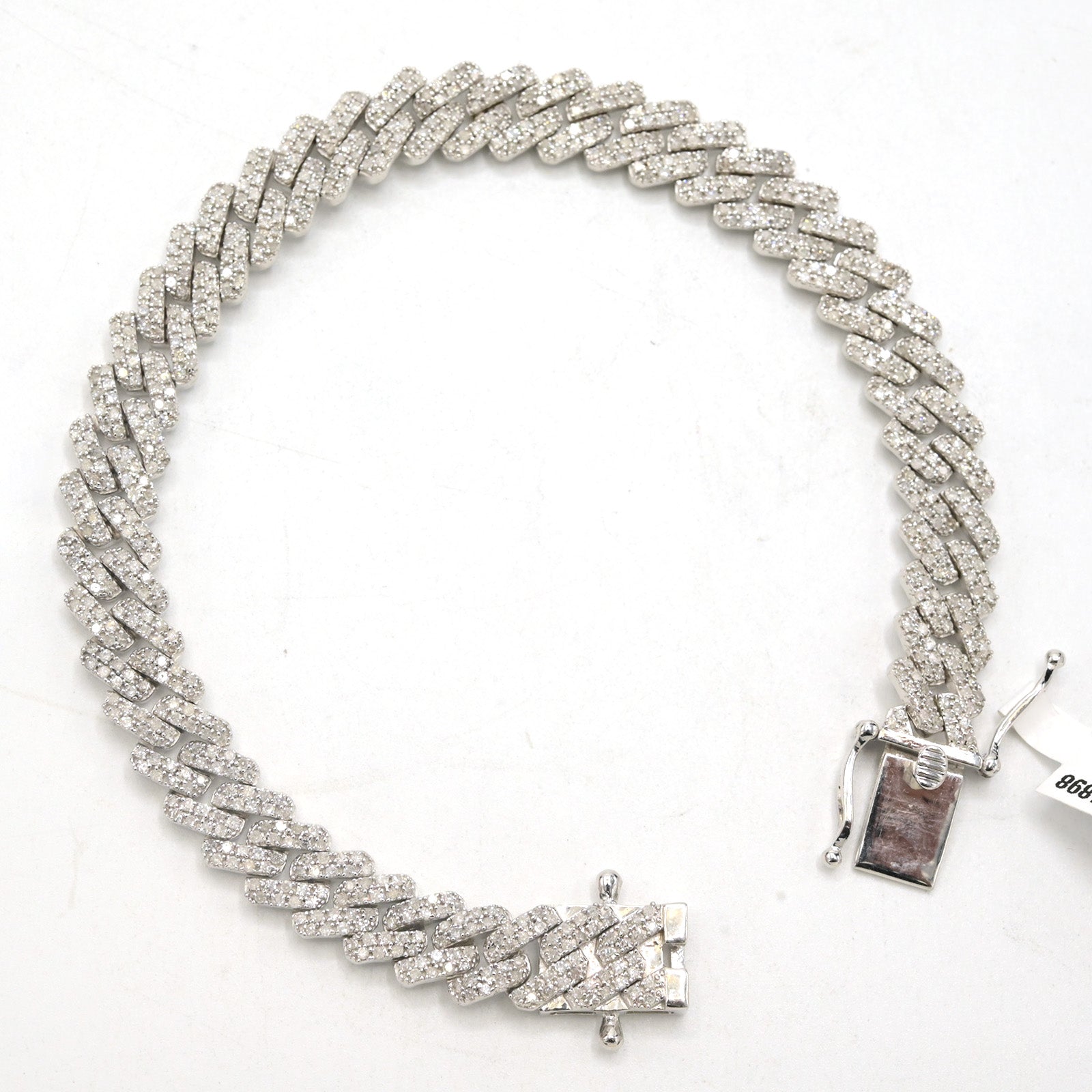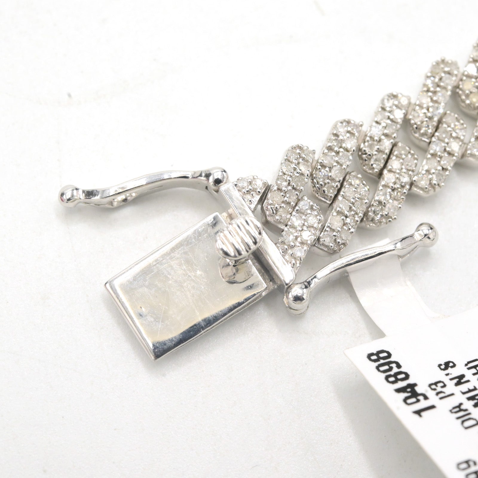 Command attention with this striking men's Cuban bracelet, forged from premium 925 sterling silver and adorned with 3.25 carats of natural diamonds. The bold, interlocking Cuban link design delivers unmistakable presence and masculine appeal, while the substantial 26-gram weight ensures lasting quality and durability. Measuring 8 inches, this armlet sits perfectly on the wrist with confident style. An investment piece that combines luxury with bold sophistication, ideal for the discerning gentleman who appreciates fine craftsmanship.