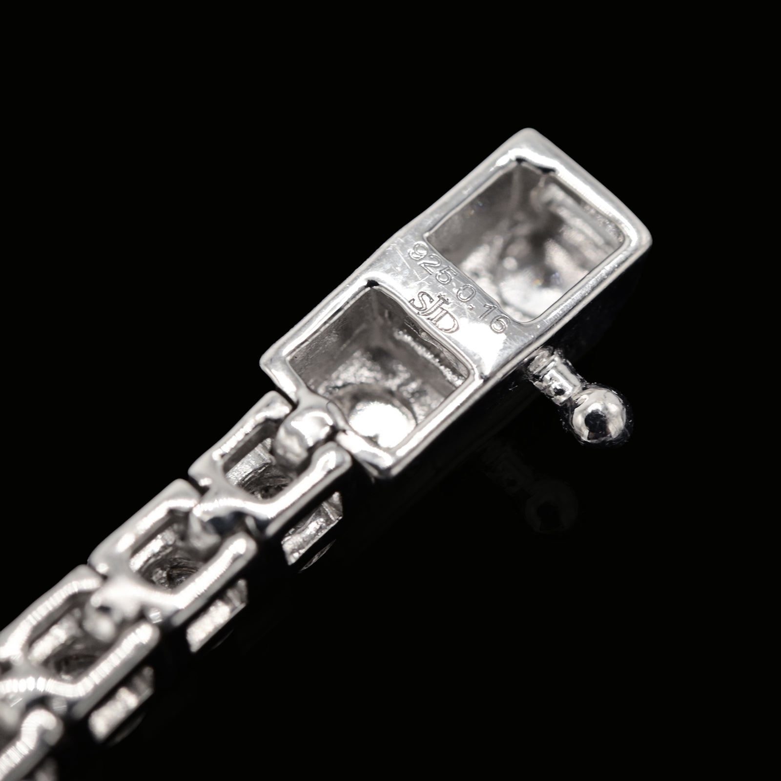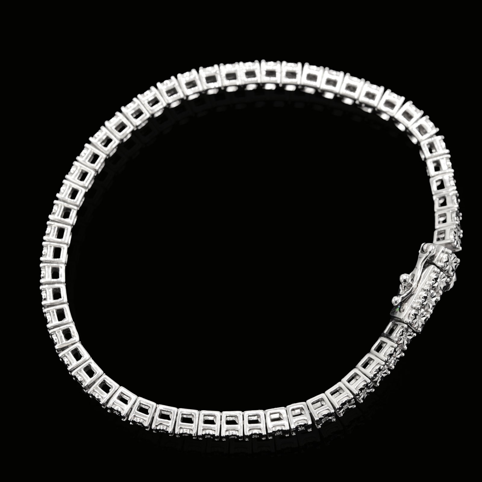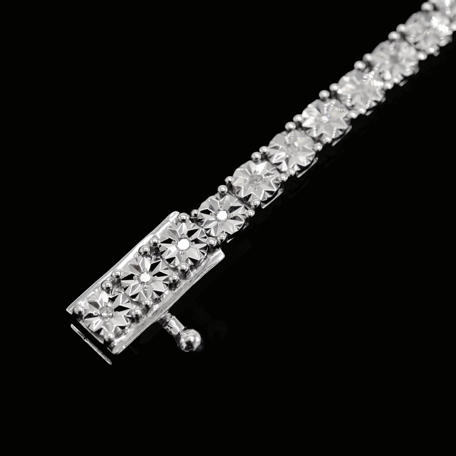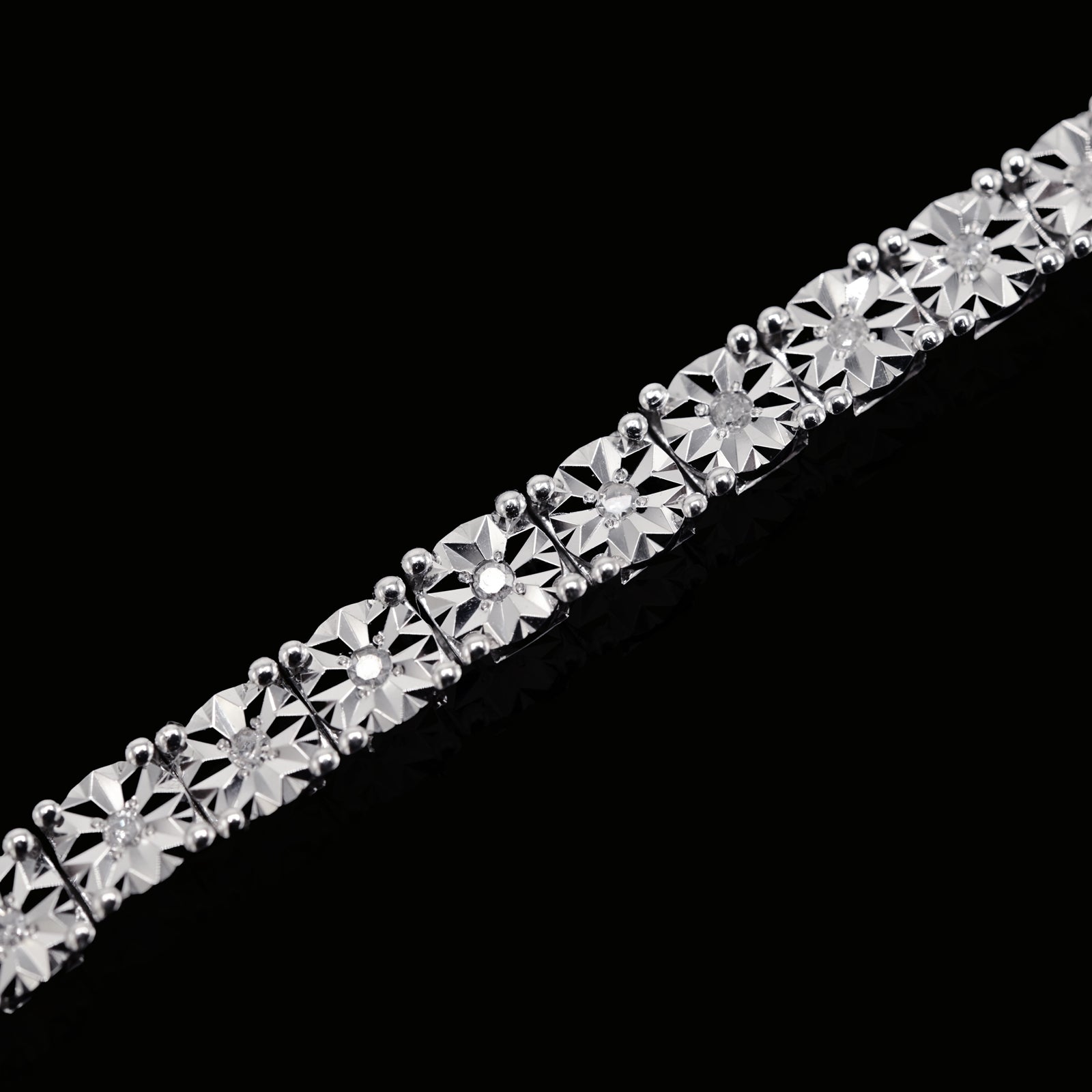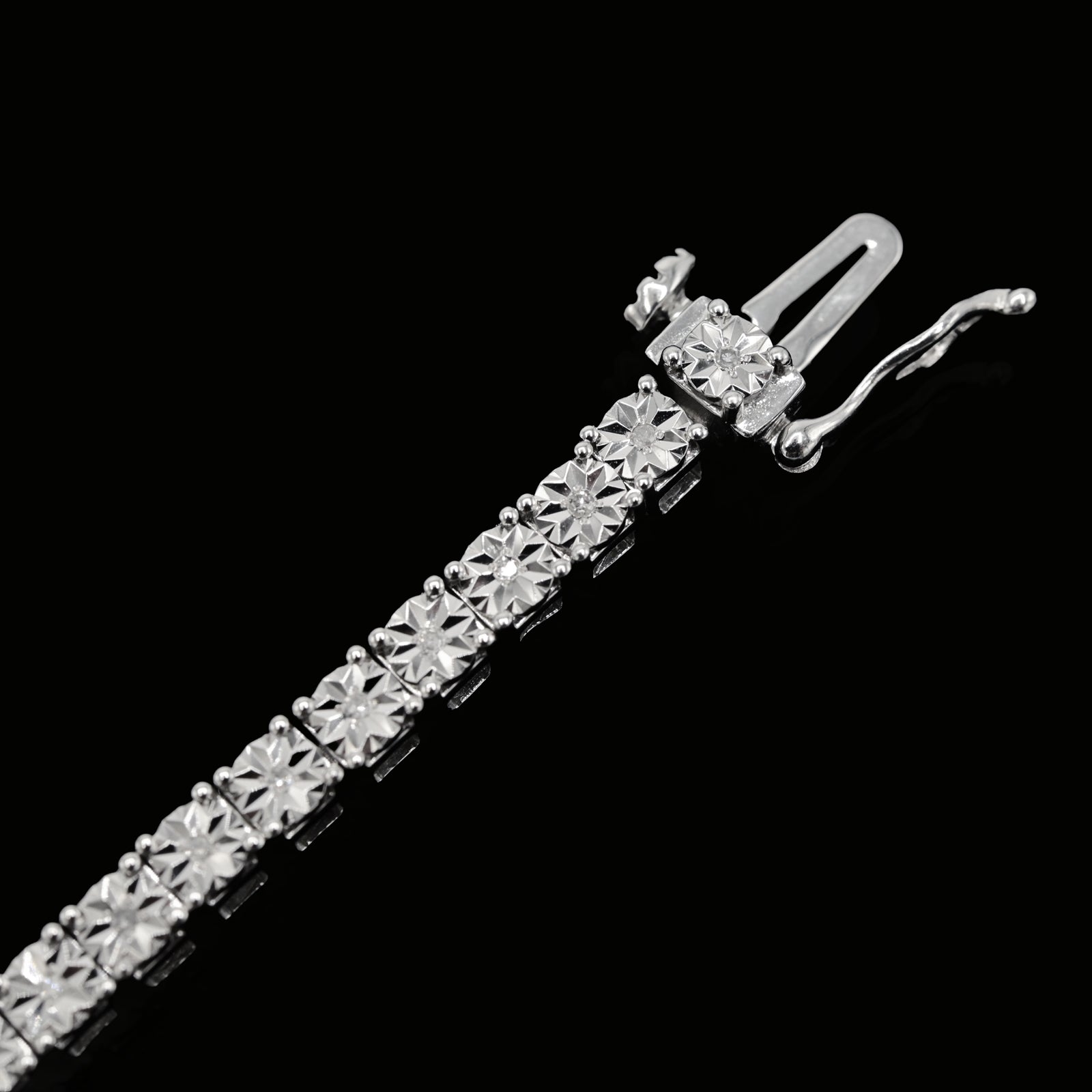 This exquisite women's tennis bracelet showcases the timeless allure of 925 sterling silver paired with 0.16 carats of brilliant diamonds. The delicate Fanouk design balances refinement with understated glamour, while its lightweight 6-gram construction ensures all-day comfort. Sized at 7 inches, this armlet fits gracefully on most wrists, making it an ideal choice for both formal occasions and refined everyday wear. A versatile investment piece that radiates elegance and sophistication.