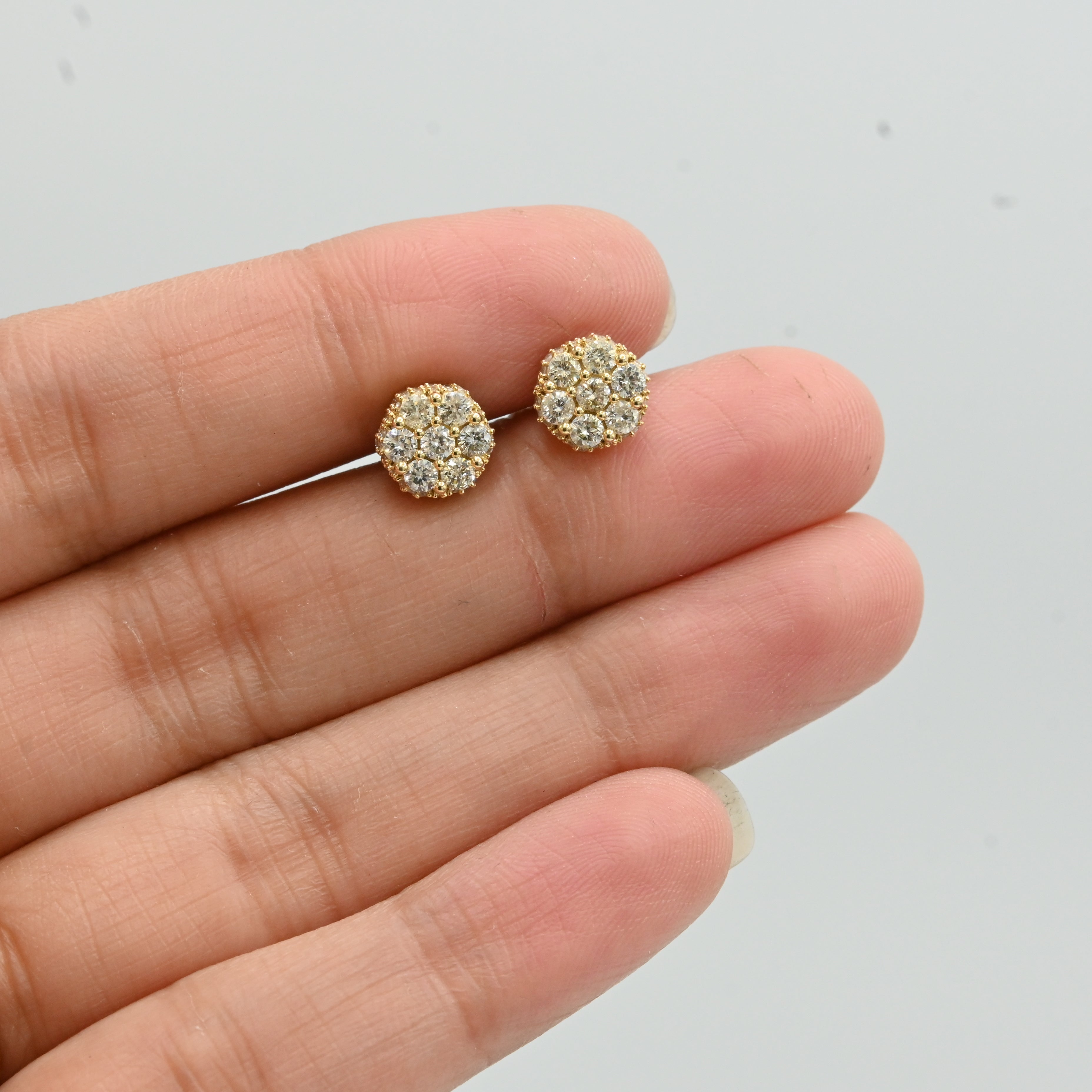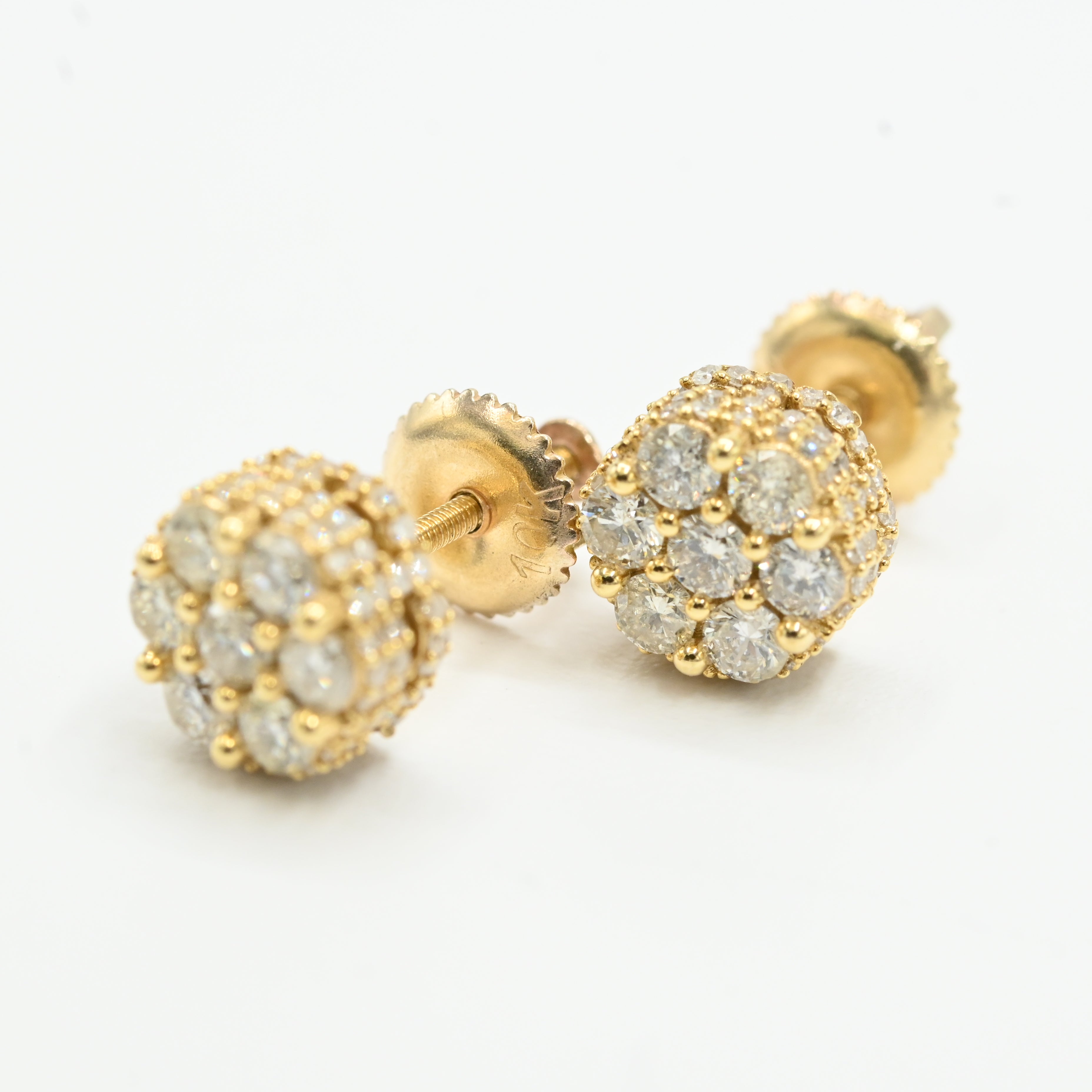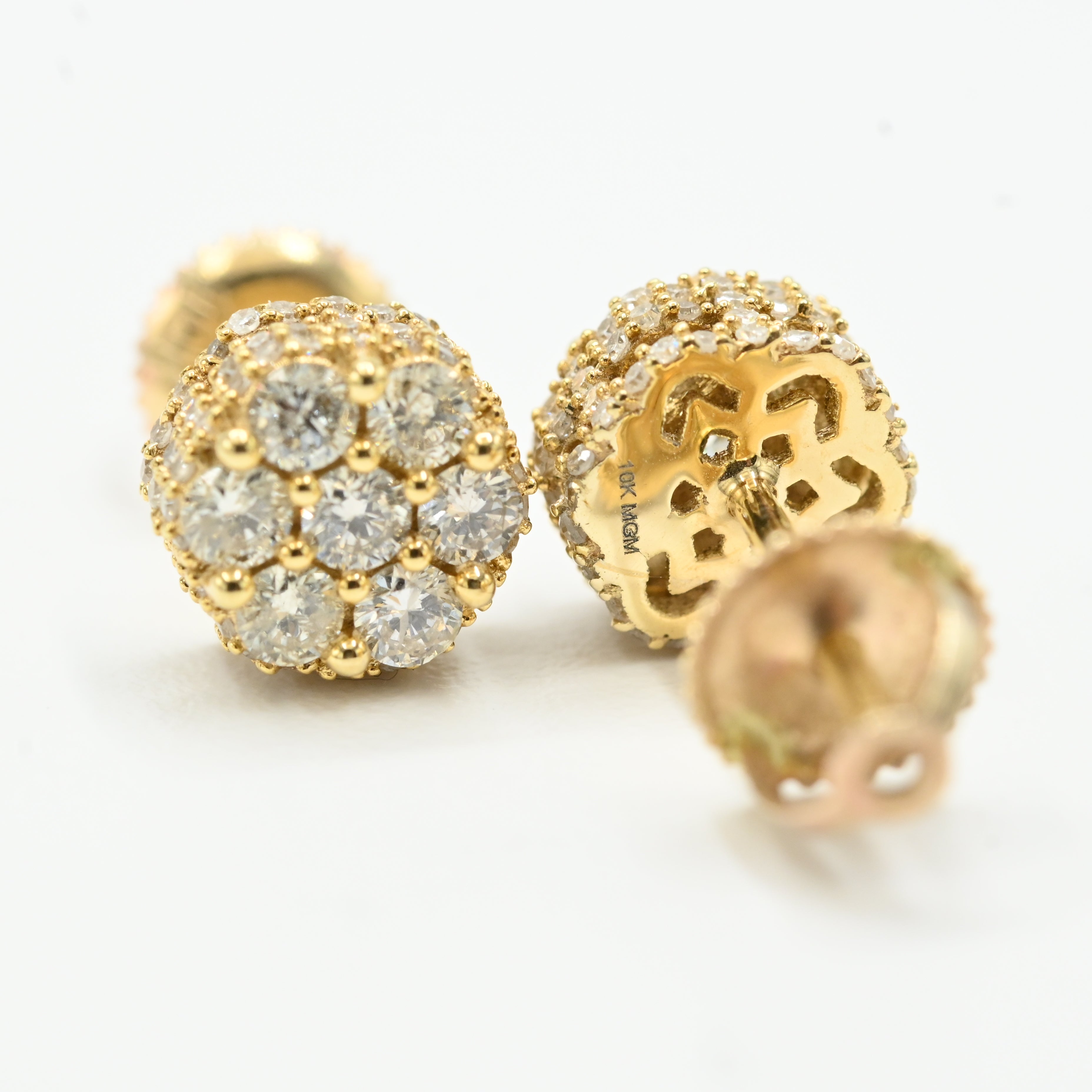 These classic 10k yellow gold round stud earrings feature a total of 0.95 carats of natural diamonds, delicately set to enhance their brilliance. Weighing 2.4 grams, these earrings offer a timeless, refined look ideal for both everyday wear and special occasions. Crafted with precision, they combine enduring quality with elegant simplicity, making them a versatile addition to any jewelry collection.