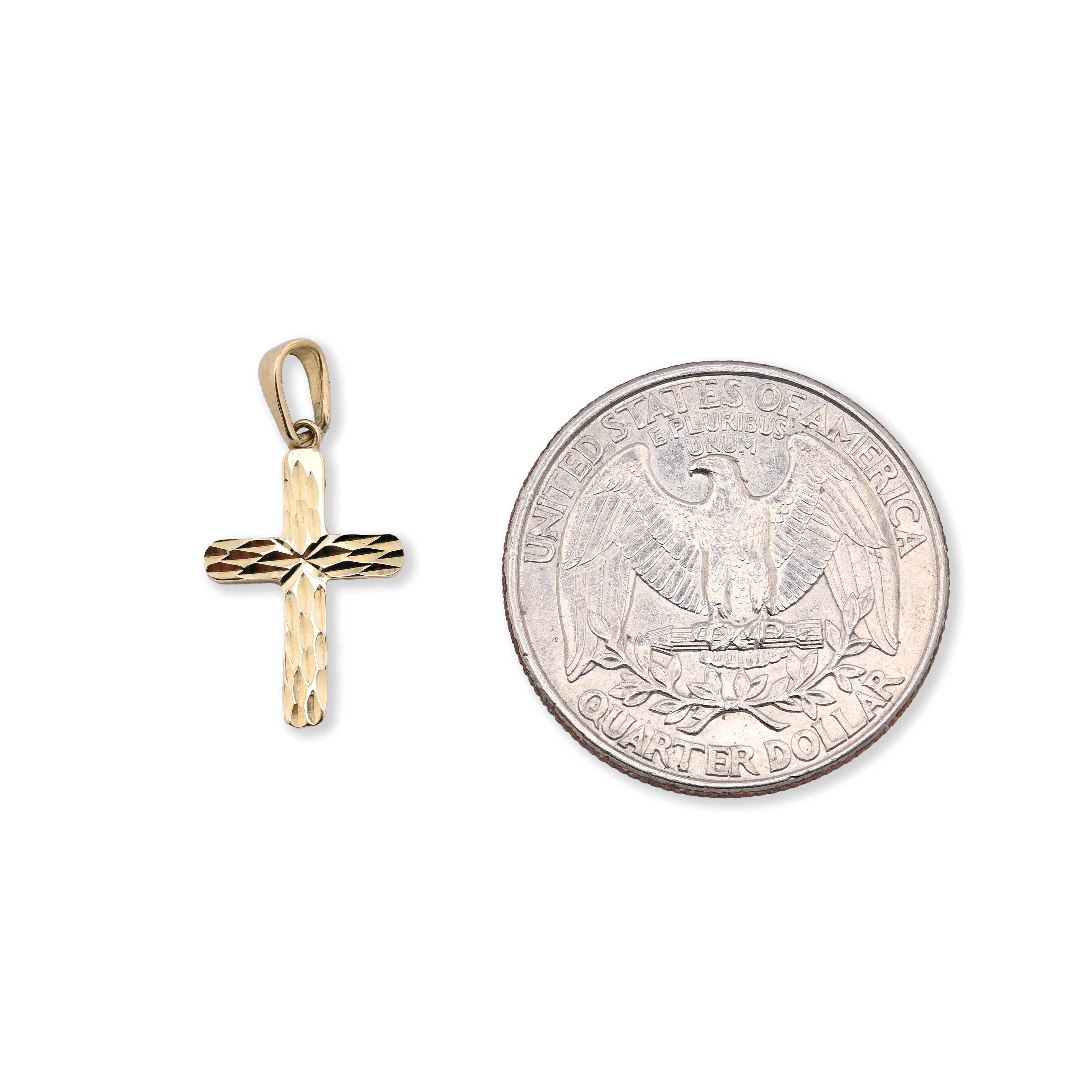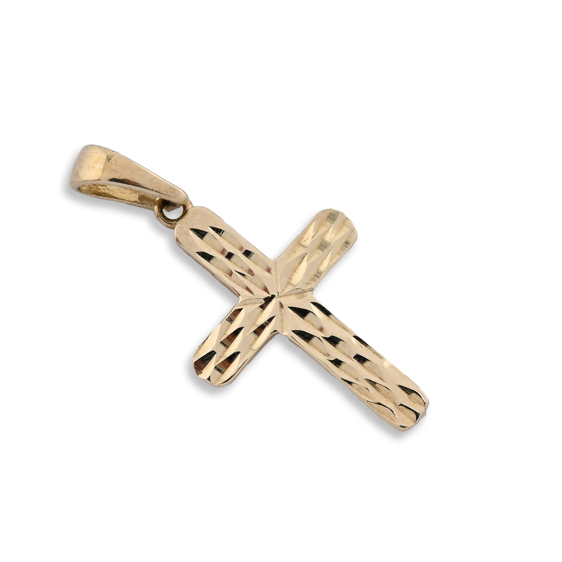 This refined cross pendant in fine 10k yellow gold embodies spiritual significance with understated elegance. At just 0.5 grams, it presents a lightweight option perfect for everyday wear without compromising on quality or presence. The minimalist design appeals to both men and women seeking a meaningful religious symbol that complements any personal style. Its delicate proportions make it ideal for layering or wearing alone as a subtle expression of faith. A distinguished piece that honors tradition while maintaining contemporary sophistication, suitable for those who value both substance and symbolism in their jewelry choices.