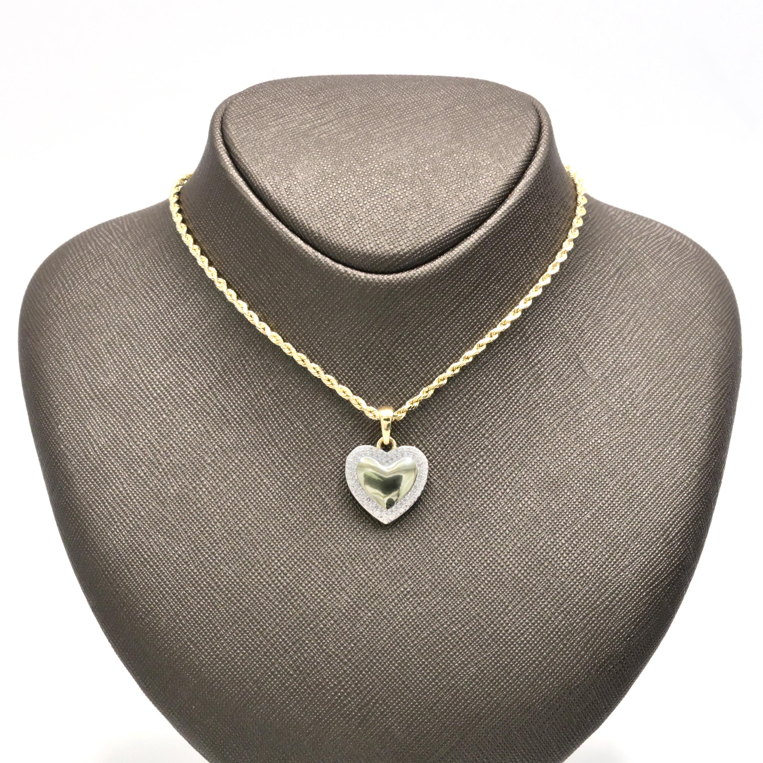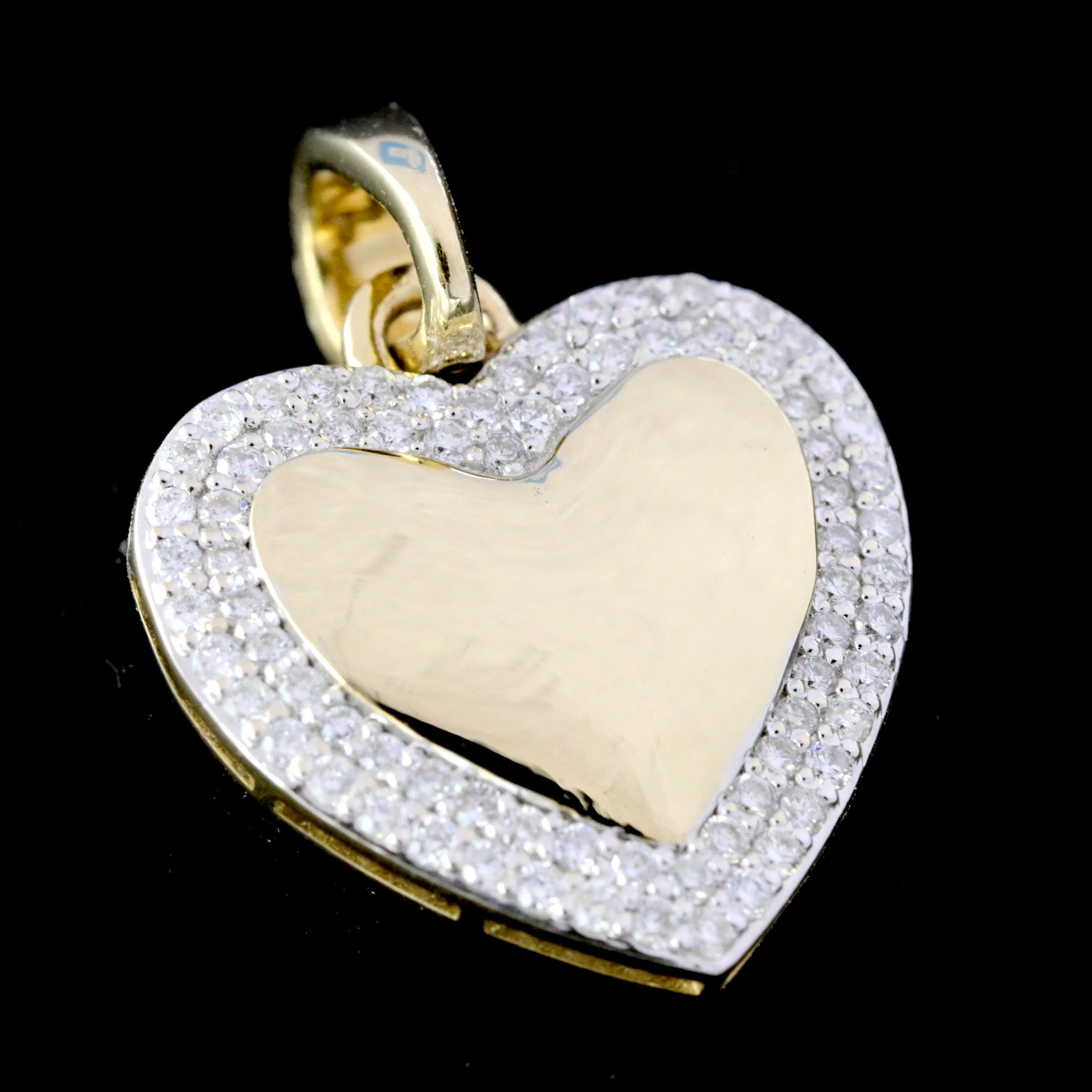This elegant women's heart pendant is crafted from 10k yellow gold, weighing 2.7 grams for a delicate yet durable finish. Adorned with natural diamonds totaling 0.45 carats, it offers a refined sparkle that enhances any neckline. Its classic design makes it a timeless accessory suitable for both everyday wear and special occasions, combining understated luxury with lasting quality.