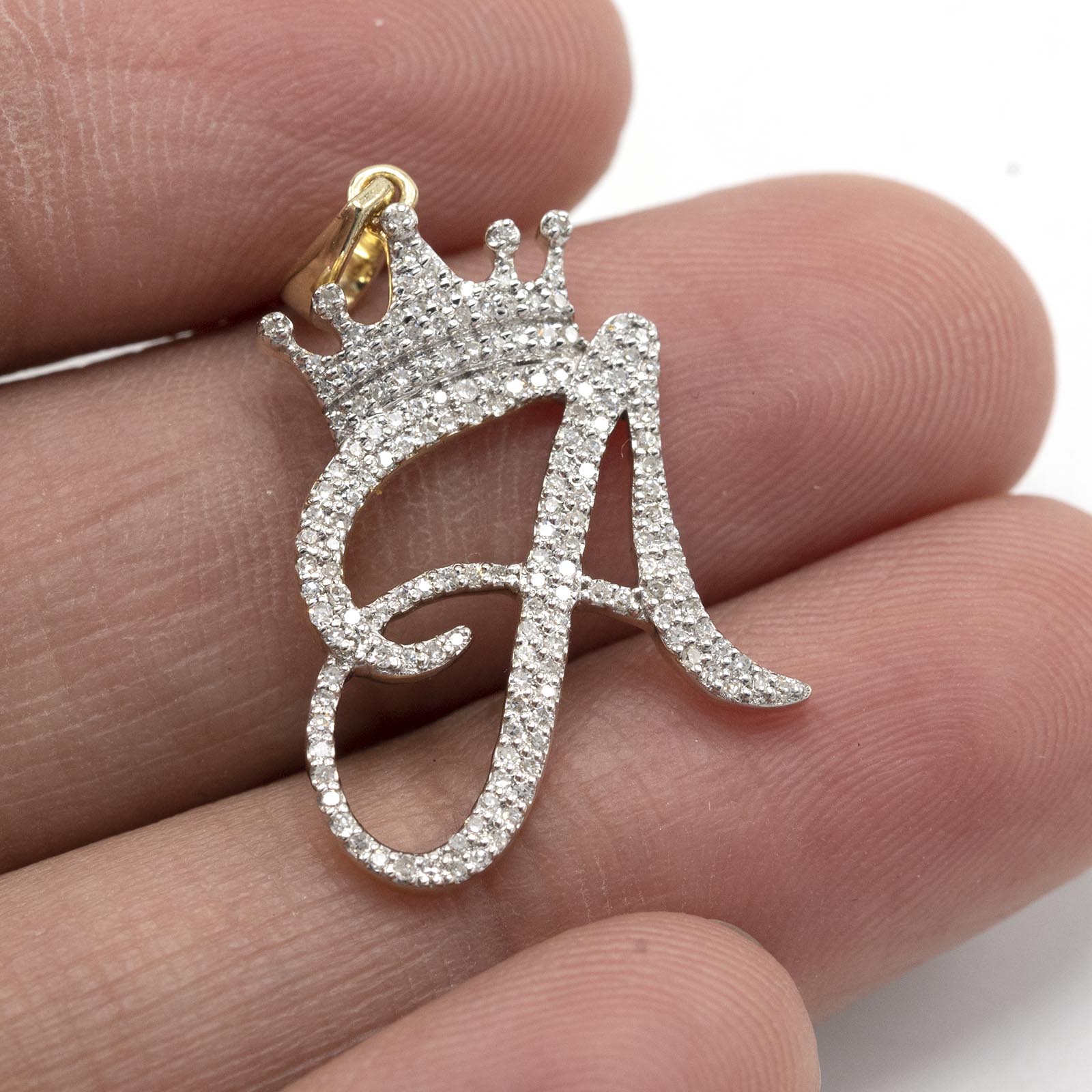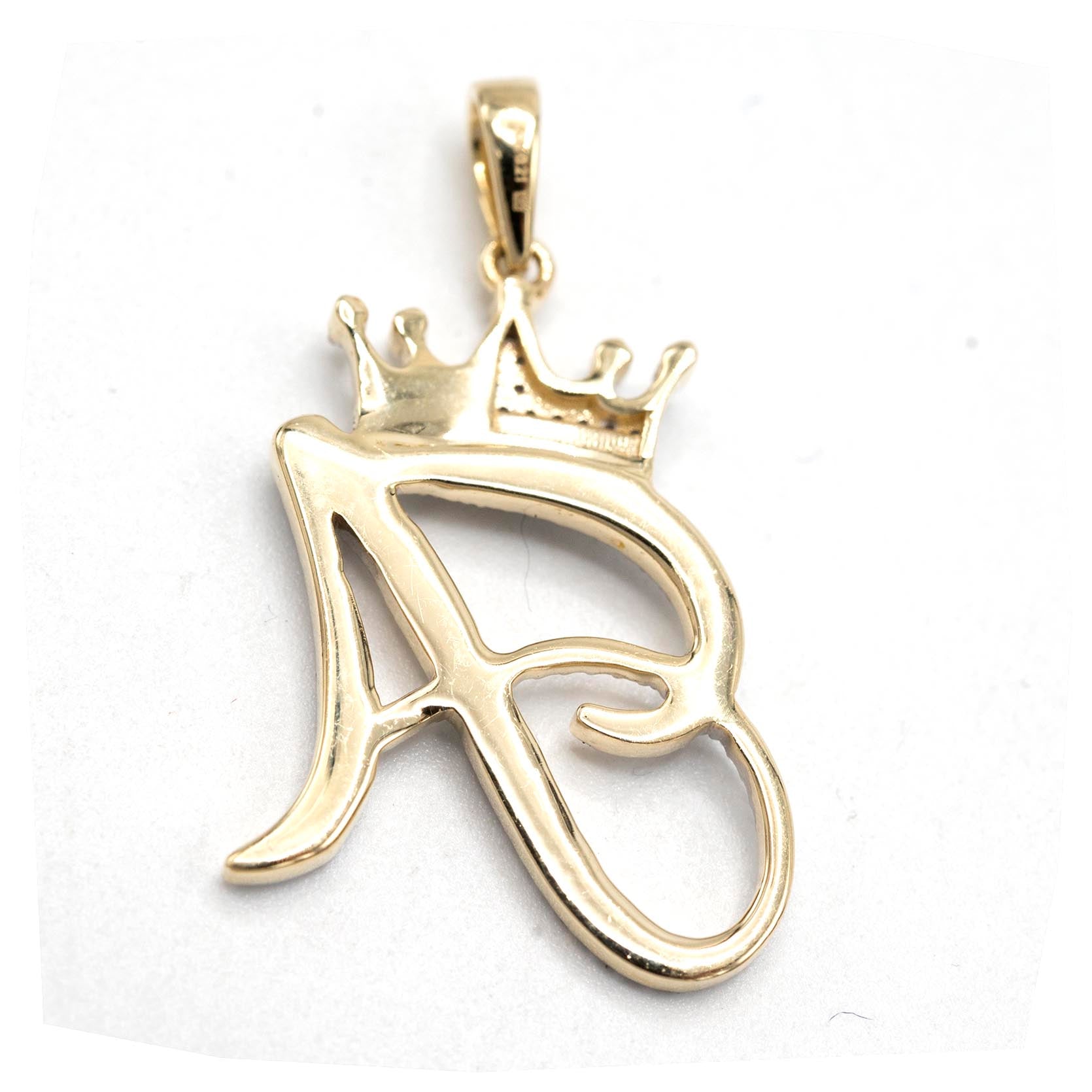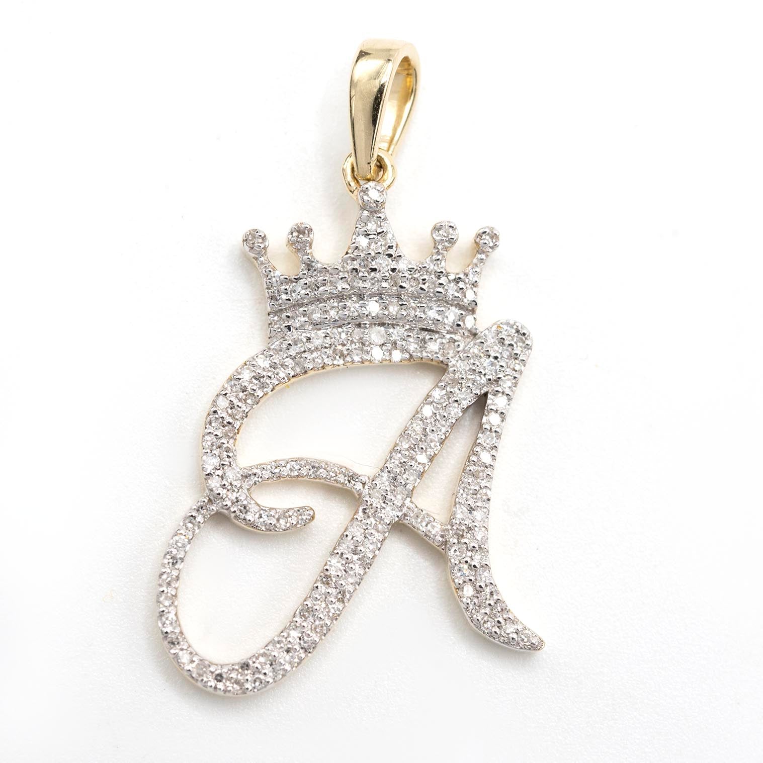 Expertly fashioned in 10k yellow gold, this Initial A Crown Pendant weighs 1.87 grams and is adorned with 0.21 carats of pure diamonds. The intricate crown design elevates the classic alphabet charm with a regal sophistication, combining refined aesthetics and enduring quality. Ideal for making a personalized, elegant statement.