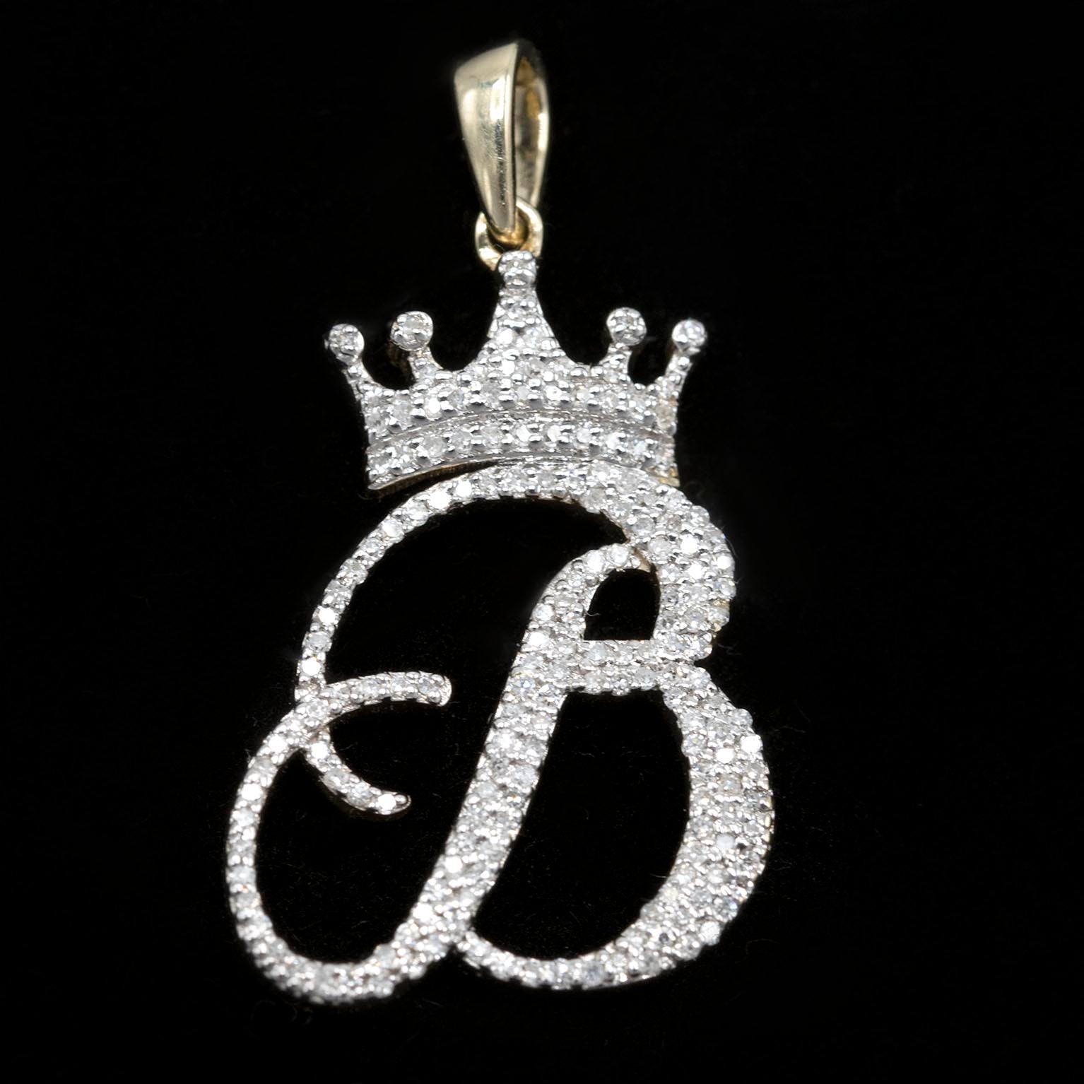 This 10k yellow gold Initial B Crown Pendant showcases expert craftsmanship with a weight of 1.82 grams. Featuring 0.21 carats of pure diamonds, the crown design adds a regal and distinctive touch to the classic alphabet charm. Its balanced combination of luxury and durability makes it an exceptional piece for both daily wear and special occasions.