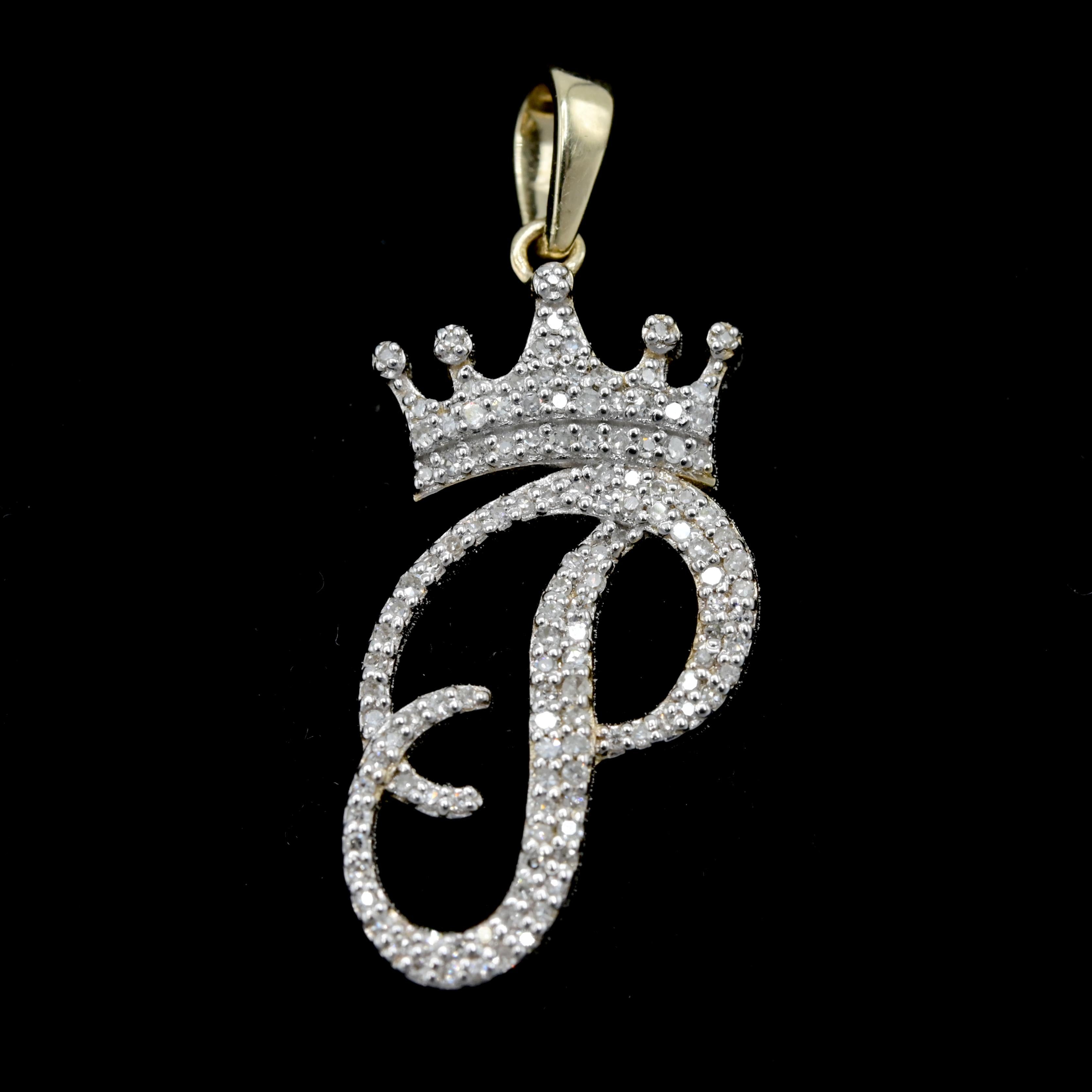 Crafted in 10k yellow gold, this Initial P Crown Pendant features a refined 0.16-carat pure diamond that adds subtle brilliance. Weighing 1.52 grams, the alphabet charm combines personal significance with elegant design, making it a distinguished accessory for daily wear or special occasions.