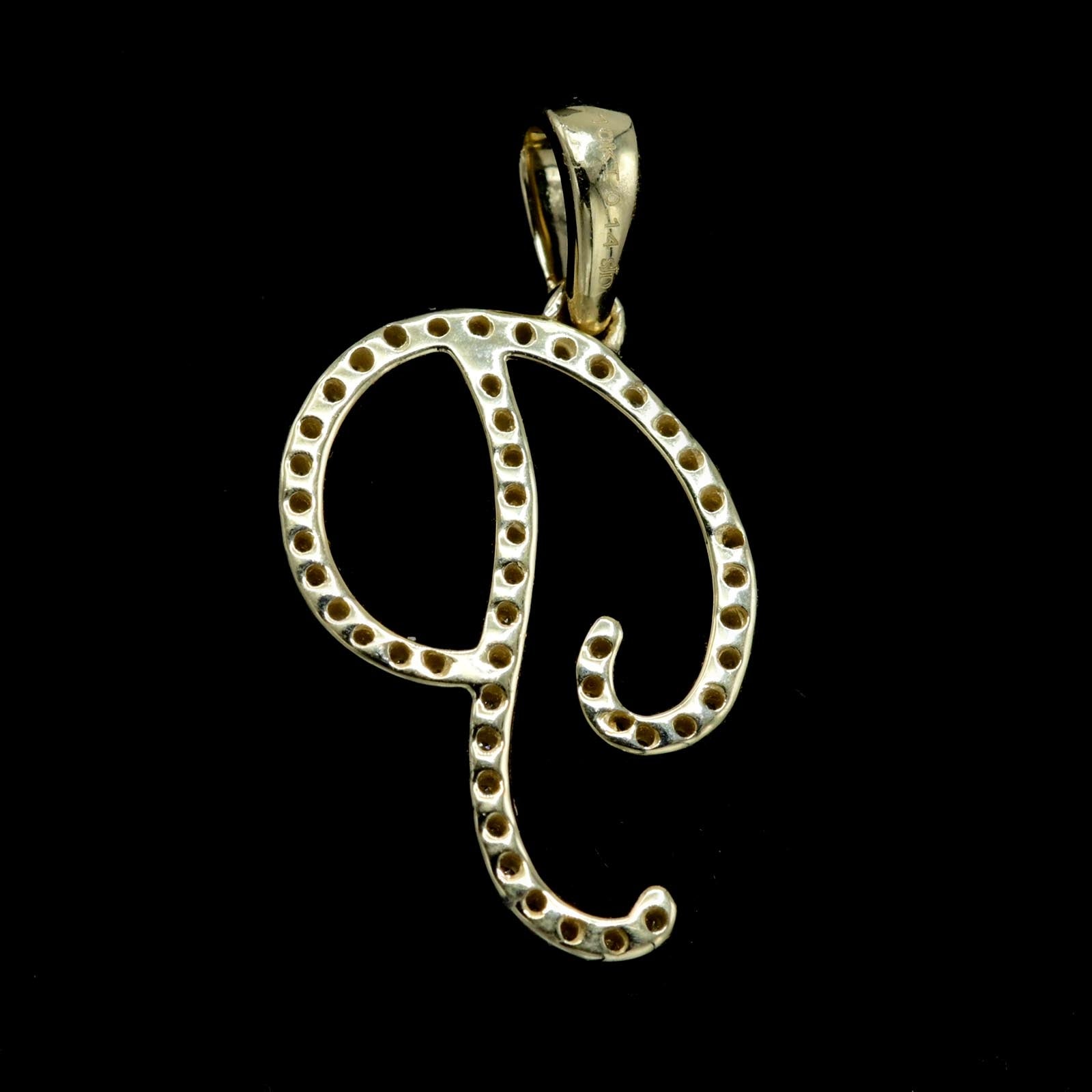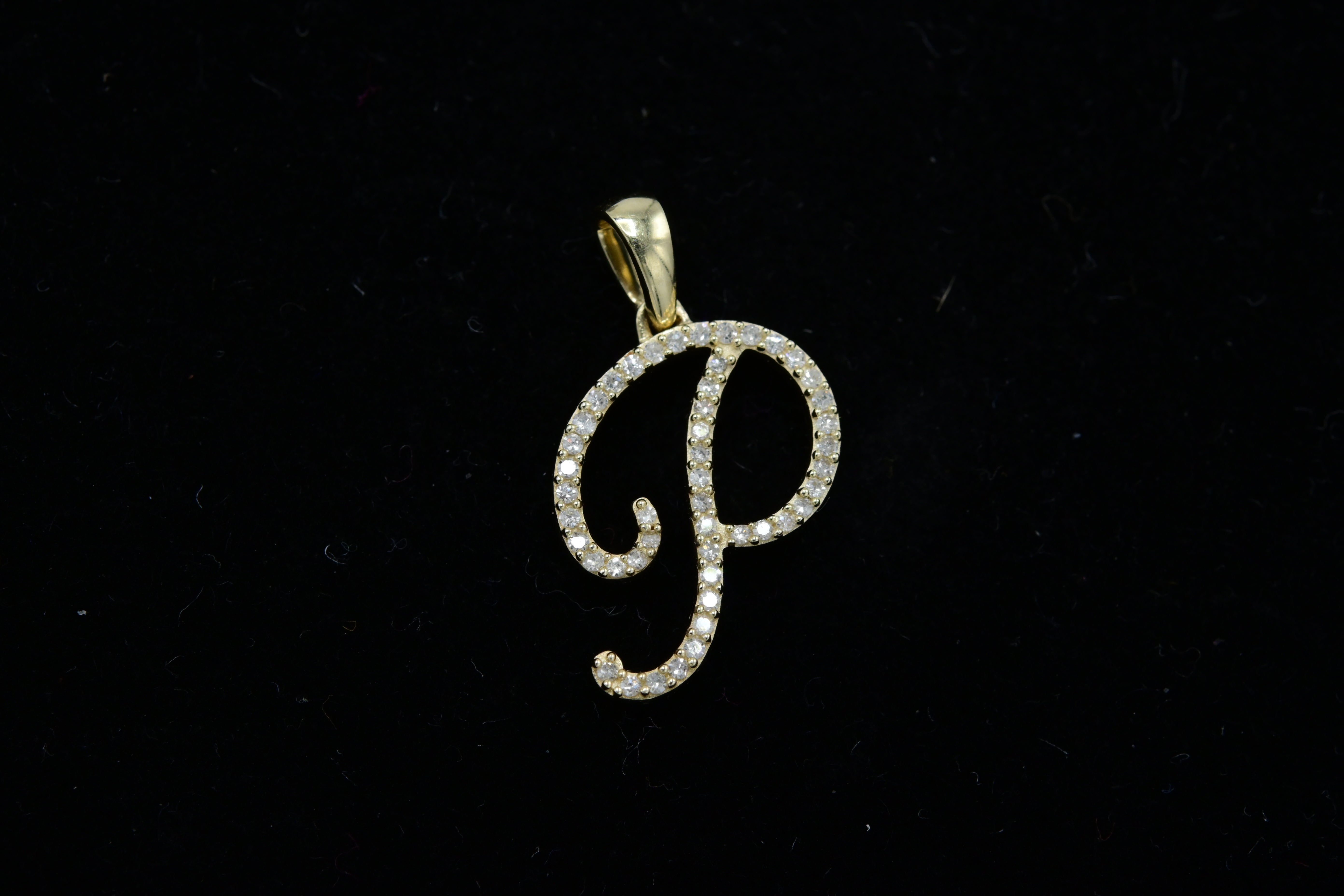 Crafted from 10k yellow gold, this elegant Initial P pendant features 0.14 carats total weight of natural diamonds, adding subtle brilliance to its classic design. Weighing 1.11 grams, this alphabet charm offers a refined way to personalize your jewelry collection or create a meaningful gift. Its timeless style ensures it complements any look, from everyday wear to special occasions.