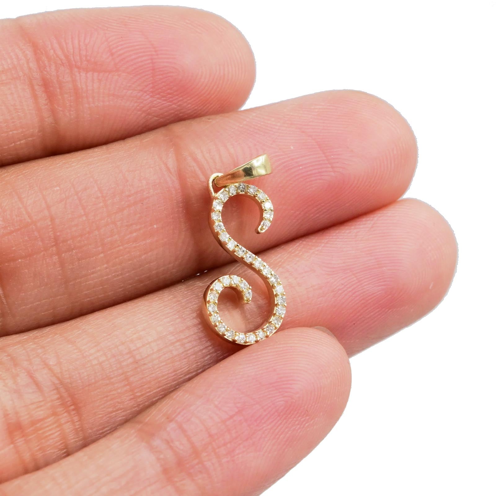 Crafted from 10k yellow gold, this Initial S pendant features a refined design accentuated by 0.13 carats total weight of natural diamonds. Weighing 0.77 grams, this alphabet charm balances subtle elegance with durability, making it an ideal personalized accessory for daily wear or special occasions.