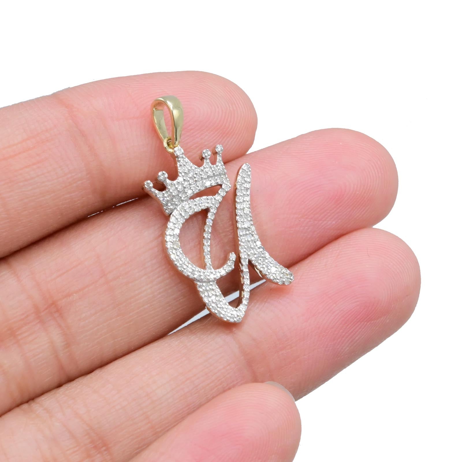 Crafted from 10k yellow gold, this Initial "U" crown pendant features 0.19 carats of pure diamonds, enhancing its refined appeal. Weighing 1.82 grams, the pendant combines meticulous craftsmanship with a timeless alphabet charm design, making it a distinguished accessory that balances elegance and personal significance. Ideal for adding a sophisticated touch to any jewelry collection.