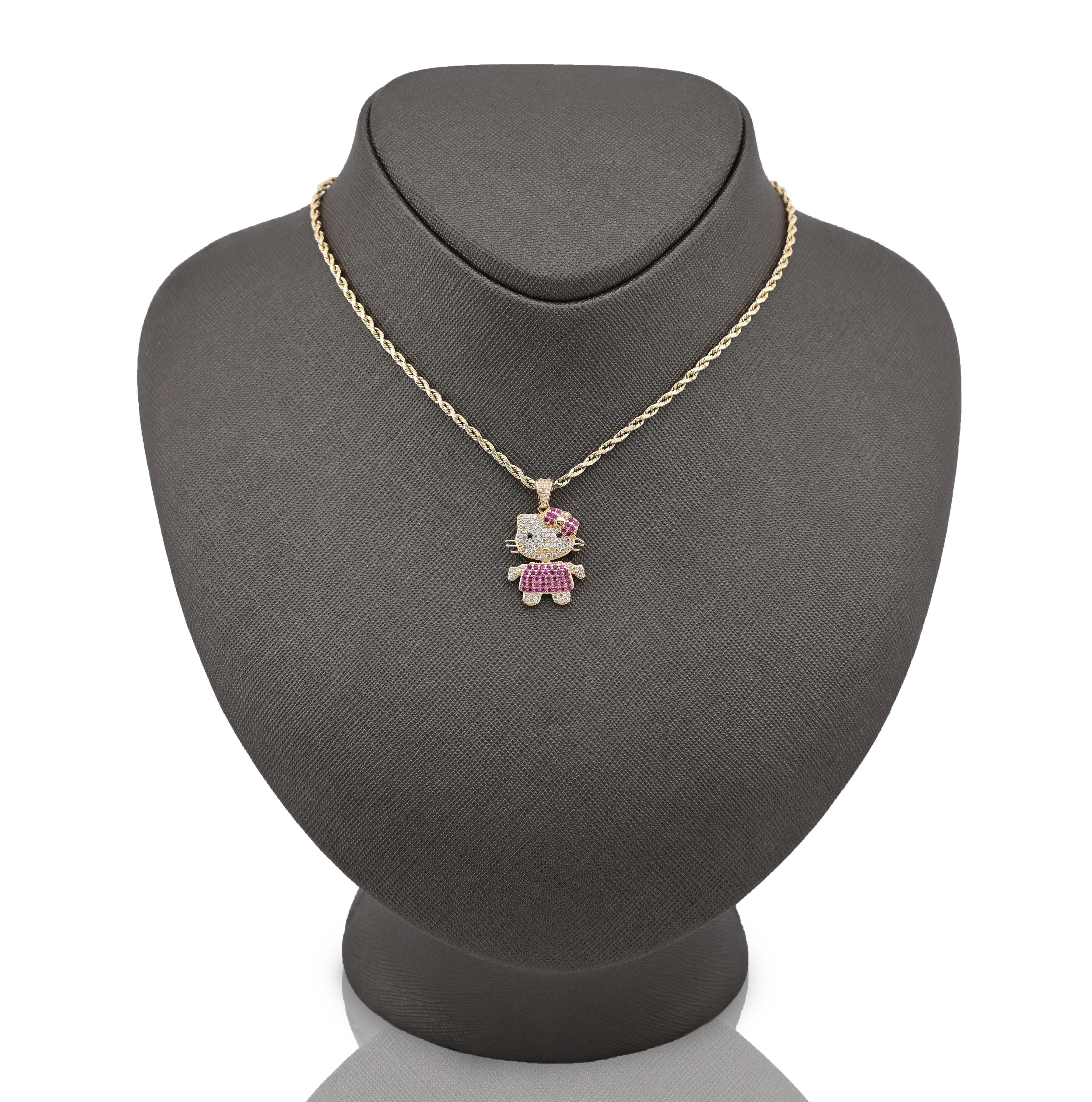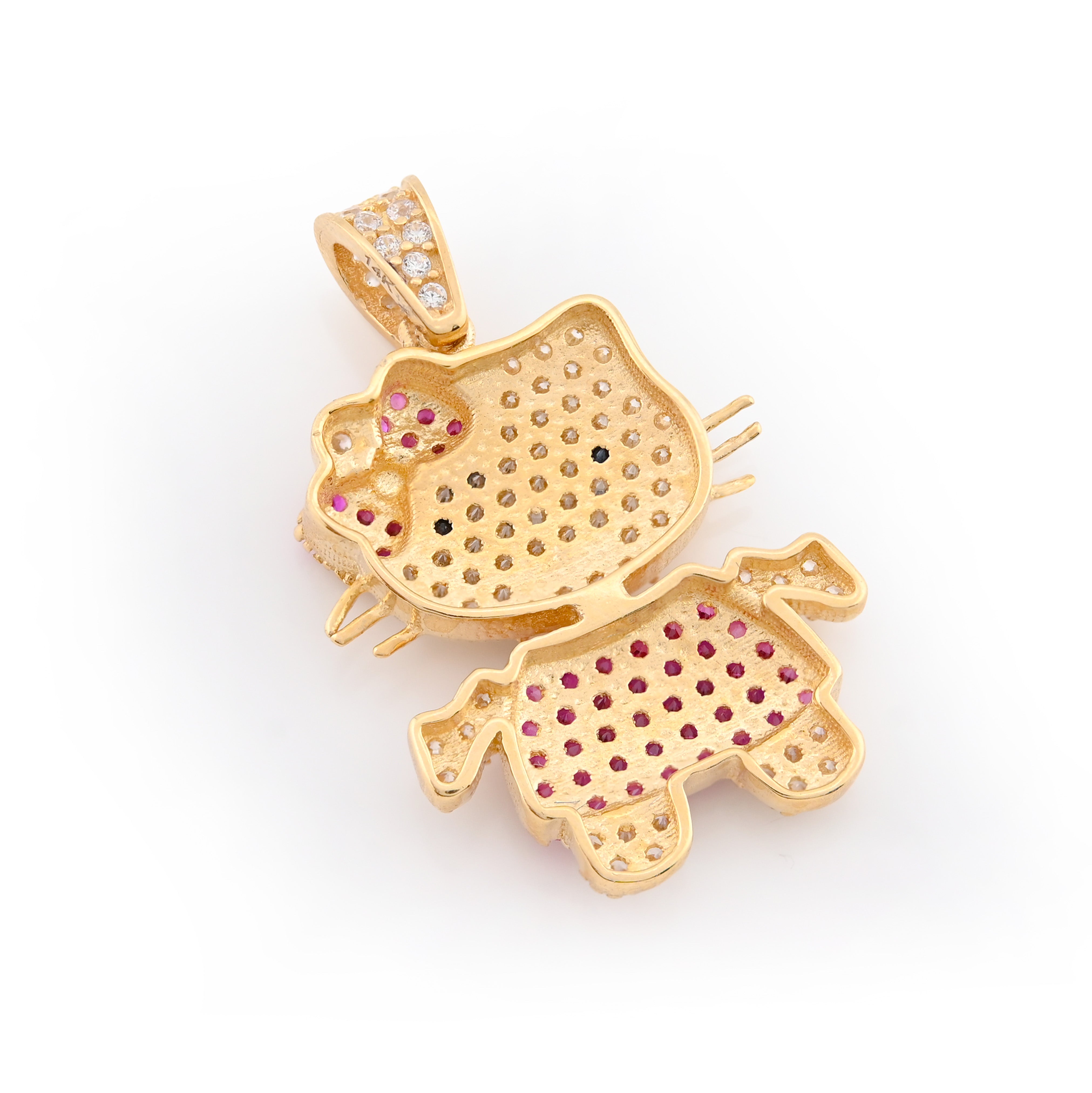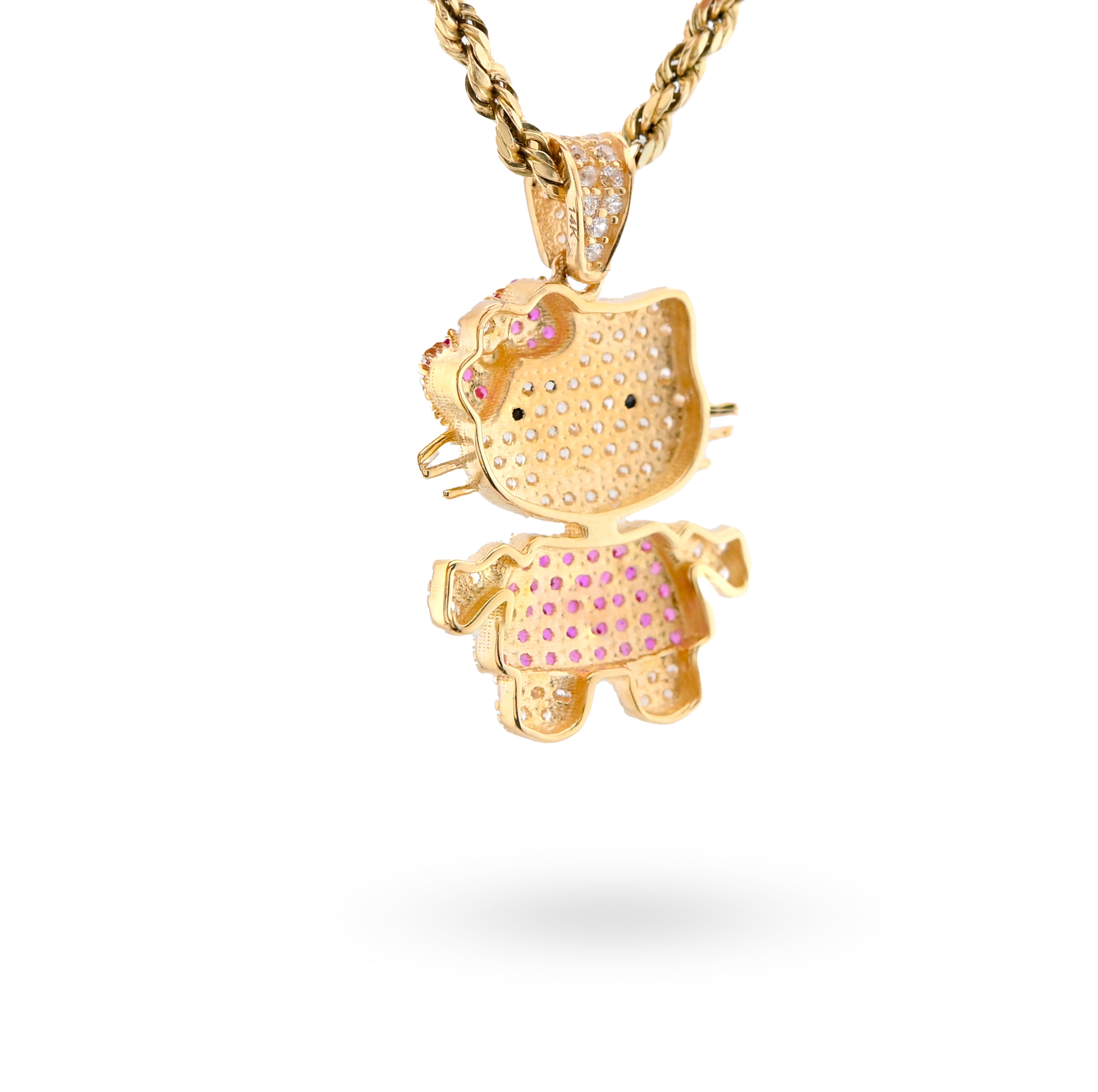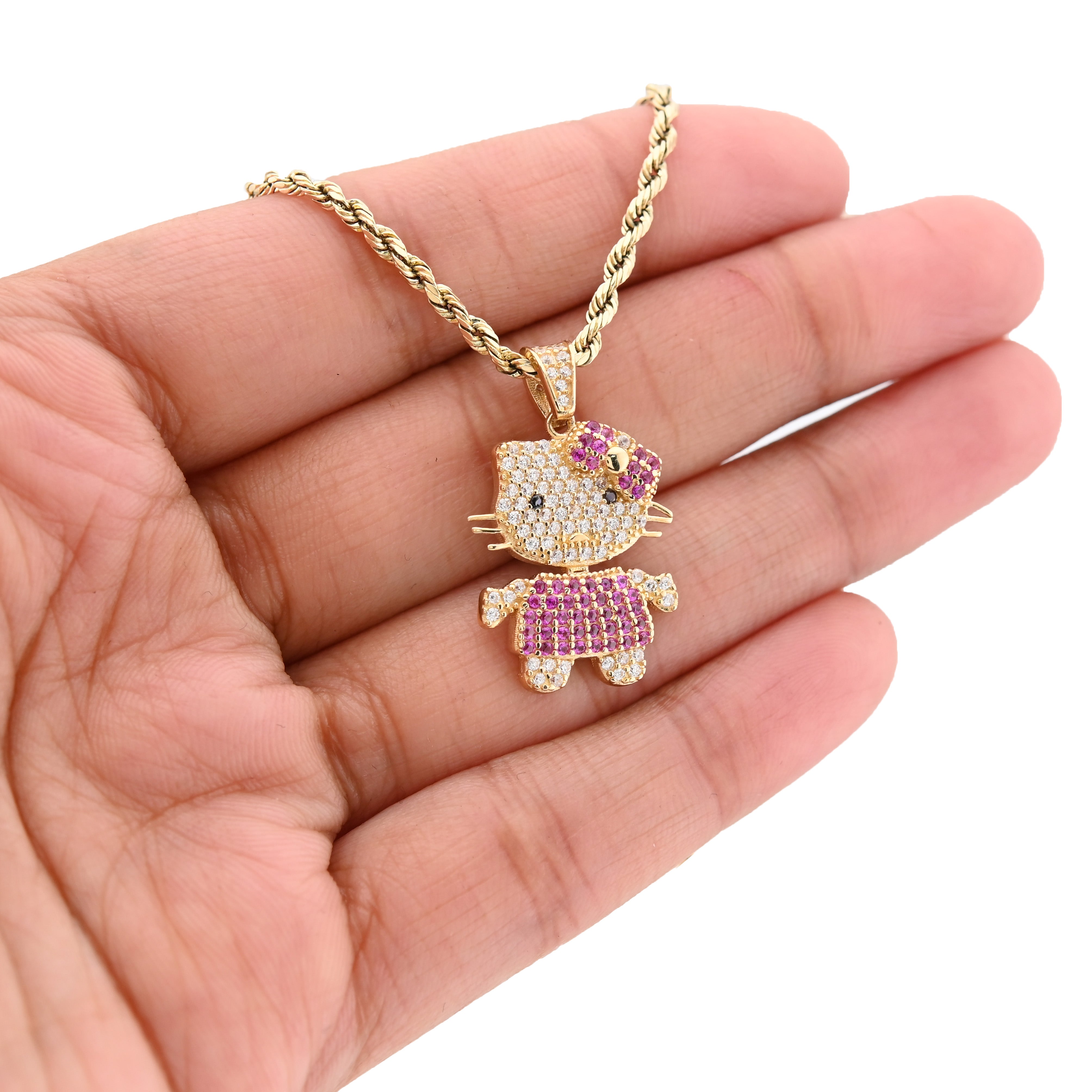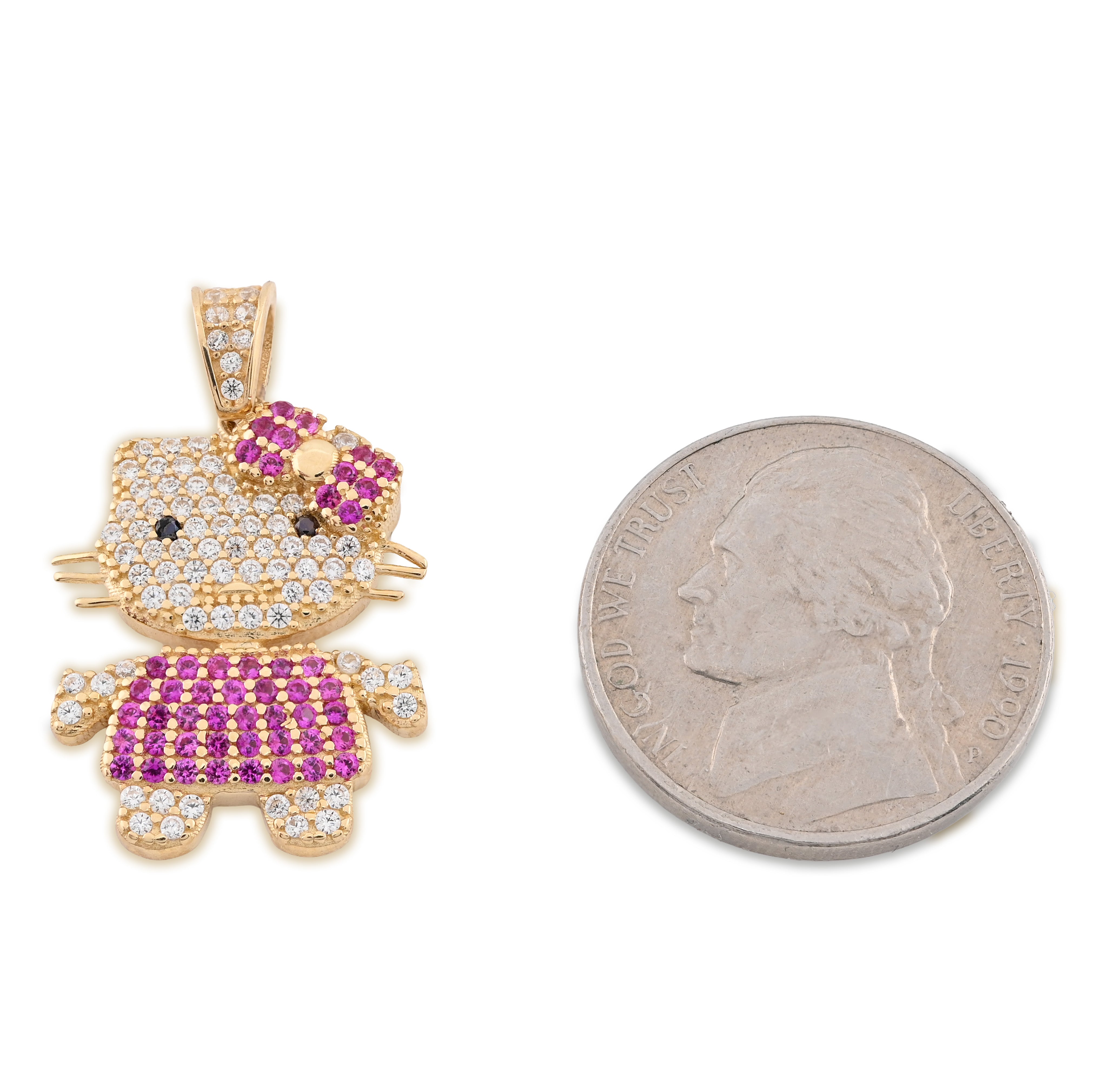 Introducing the Ladies 14k Yellow Gold Cubic Zirconia Hello Kitty Pendant, an exquisite charm that effortlessly blends playful elegance with high-end craftsmanship. Meticulously crafted from radiant 14k yellow gold, this delightful pendant features a stunning array of sparkling cubic zirconia that captures the light with every movement, making it a perfect statement piece for any occasion. Weighing 3 grams, this charming hip-hop-inspired design is not only a tribute to the beloved character but also a luxurious addition to your jewelry collection, reflecting both style and sophistication. Elevate your accessory game with this enchanting pendant that embodies the spirit of fun while maintaining an air of refined elegance.