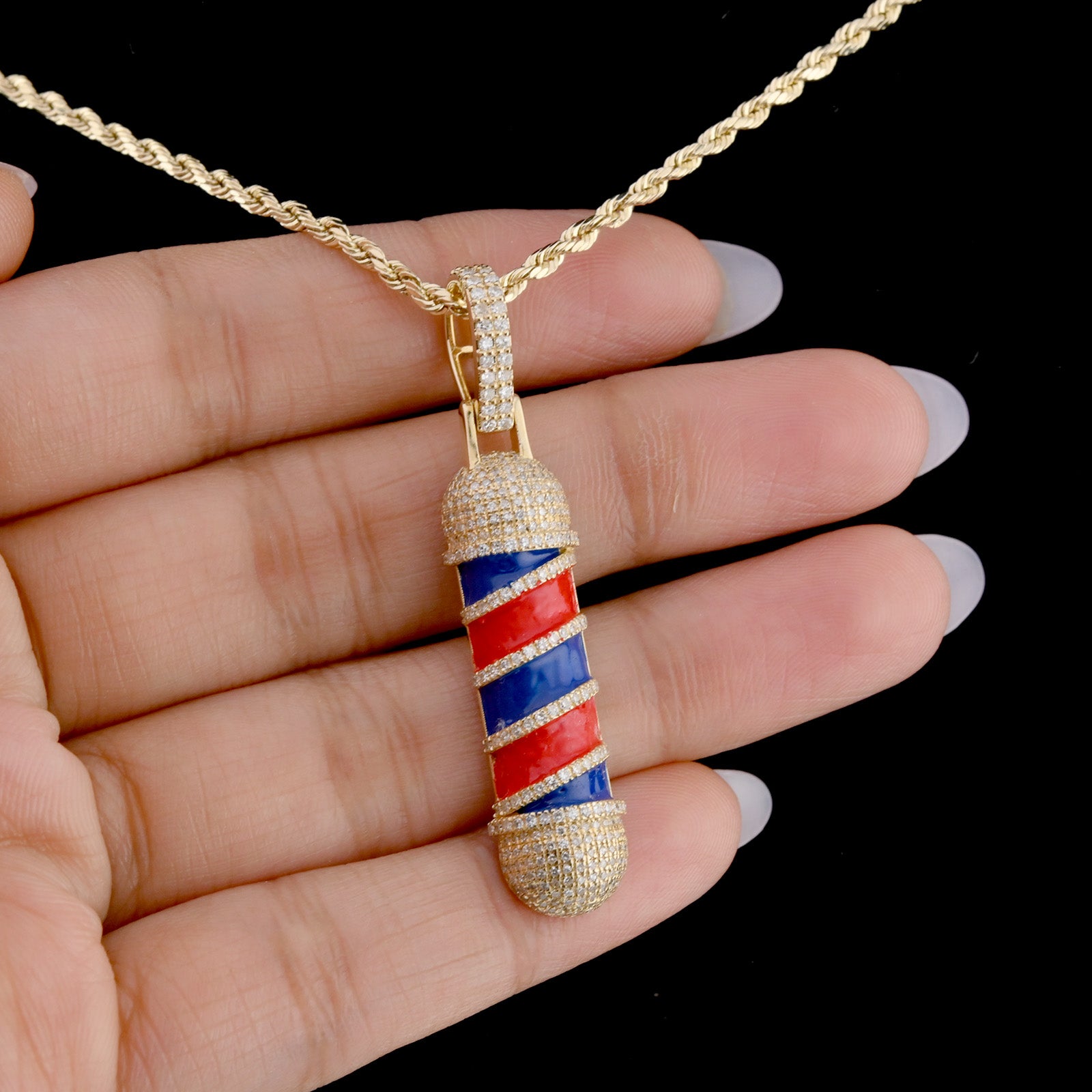 Crafted from pure 10k yellow gold, this men's pendant features a 0.76-carat natural diamond set in an iconic barber poll design. Weighing 4.5 grams, it offers a balanced combination of durability and refined weight, making it a distinguished charm for daily wear or special occasions. This piece reflects expert craftsmanship and timeless style, perfect for those seeking a subtle yet meaningful accessory.