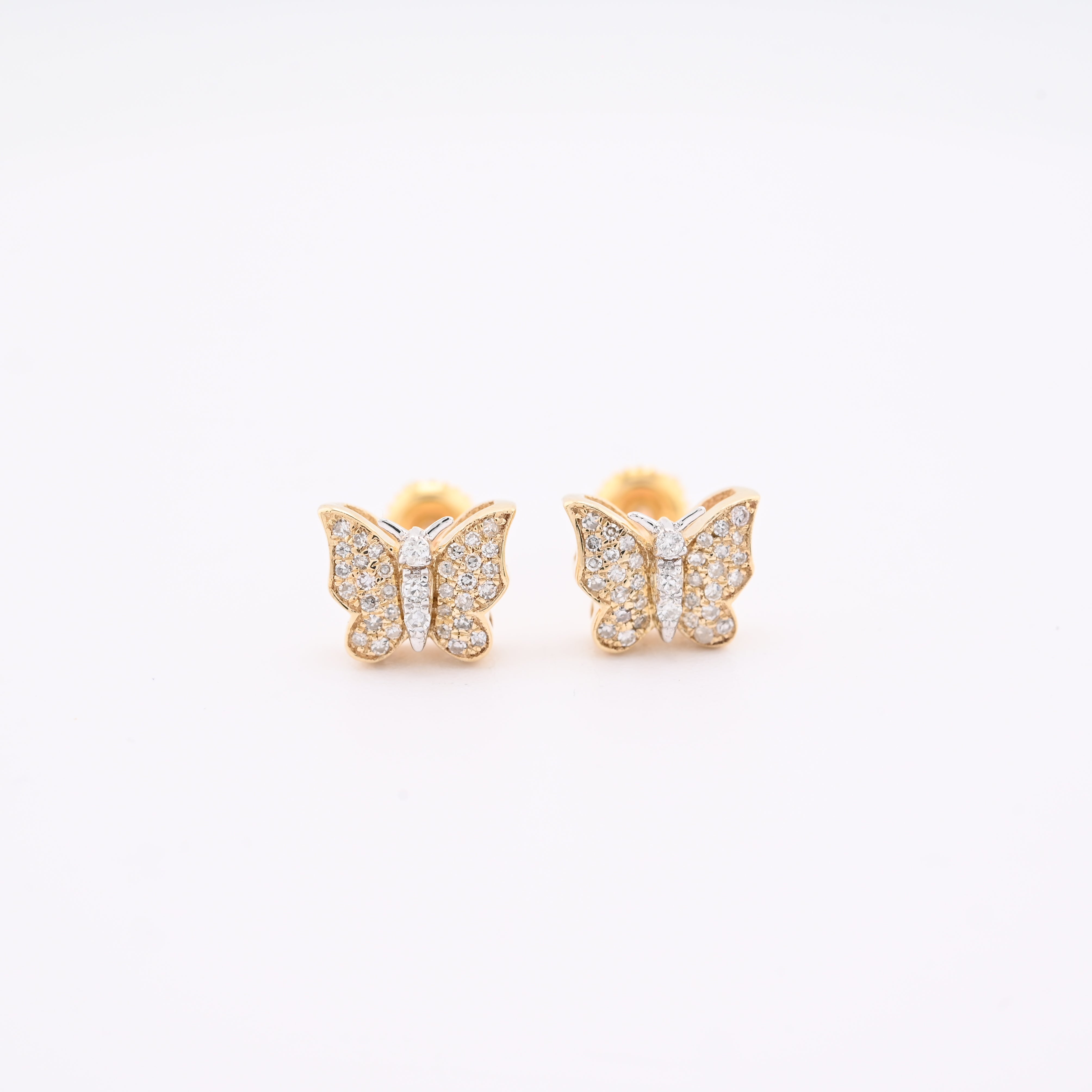These butterfly studs in pure 10k yellow gold blend natural symbolism with refined craftsmanship, featuring 0.25 carats of natural diamonds. At 1.8 grams per earring, they provide noticeable presence while remaining comfortable for all-day wear. The diamonds catch light beautifully across the butterfly design, creating subtle sparkle that enhances rather than overwhelms. Crafted for women seeking jewelry that celebrates transformation and elegance, these studs offer versatile sophistication suitable for both professional and social settings. An investment in timeless beauty, they represent the perfect balance between meaningful symbolism and enduring luxury, making them an ideal choice for those who value quality and aesthetic refinement.
