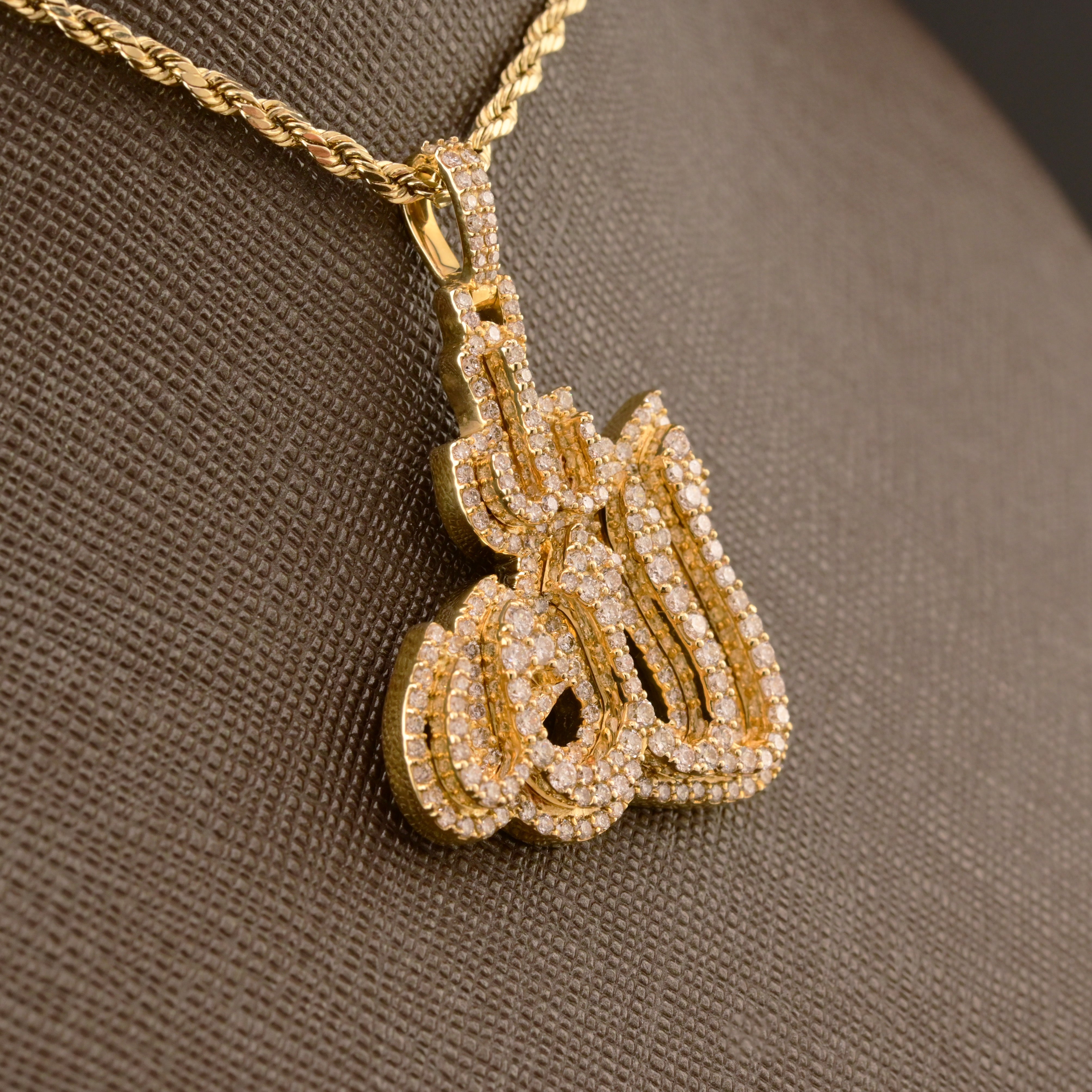 Pure 10k Yellow Gold 2.31CTW Natural Diamond Allah Pendant 13g Religious Charm.