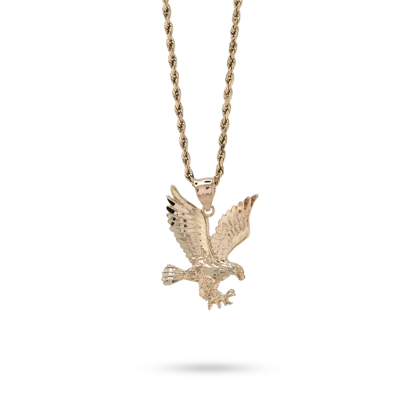 Elevate your jewelry collection with this refined 10k yellow gold eagle pendant, a timeless symbol of strength and freedom. Crafted from pure 10k yellow gold and weighing a substantial 2 grams, this unisex charm combines classic elegance with meaningful symbolism. The detailed eagle design captures both power and grace, making it an ideal choice for those seeking a versatile piece that transitions seamlessly from everyday wear to special occasions. Whether worn alone on a delicate chain or layered with other pendants, this sophisticated charm adds an understated touch of luxury to any ensemble.