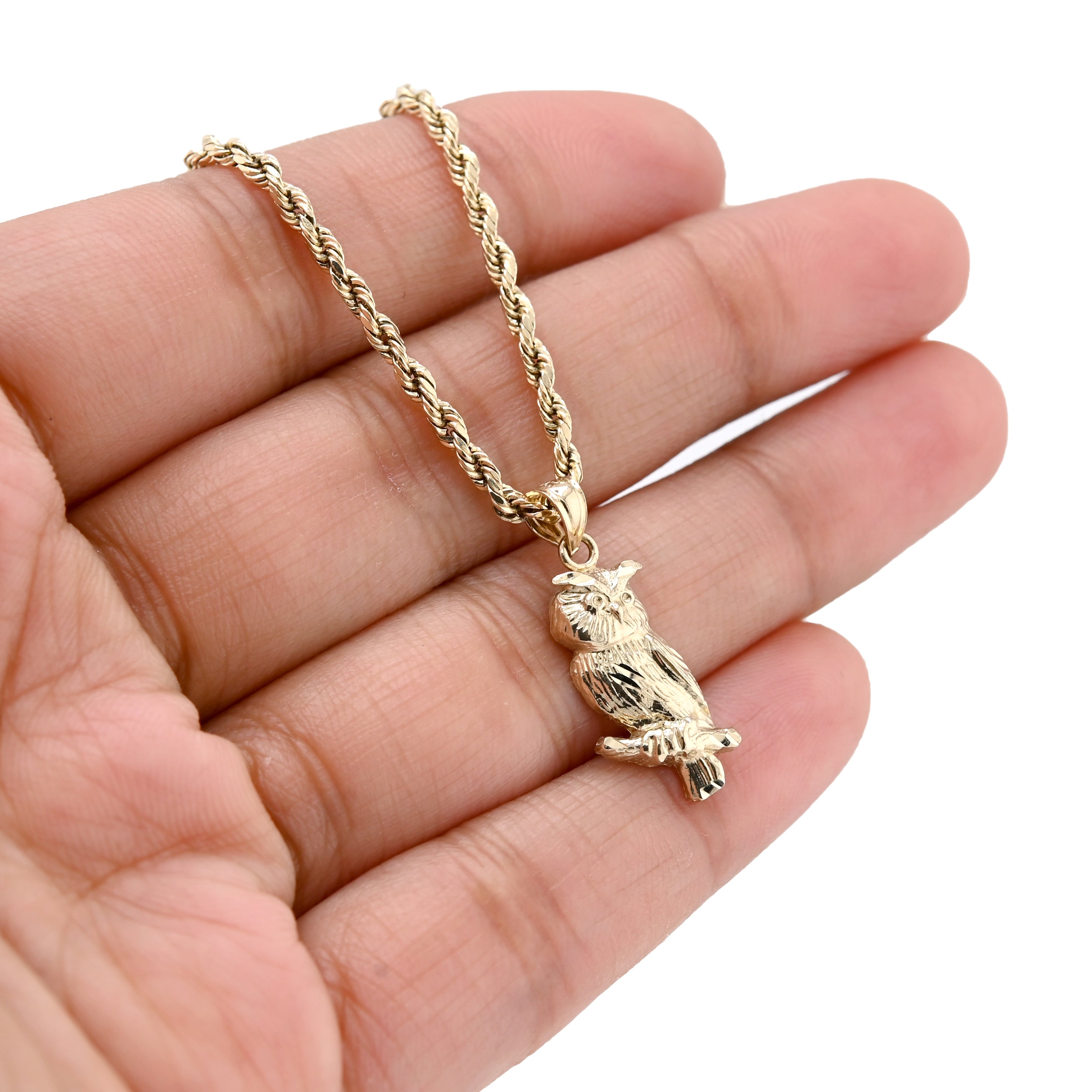 Crafted in pure 10k yellow gold, this owl charm captures the wisdom and mystique associated with this iconic bird. Weighing 1.2 grams, the piece strikes an ideal balance between presence and wearability, making it equally suited for men and women. The classic animal design transcends fleeting trends, offering enduring appeal for those who appreciate symbolic jewelry. Whether worn as a standalone pendant or integrated into a charm bracelet, this refined piece celebrates nature's intelligence with understated elegance. A thoughtful selection for collectors of meaningful, timeless adornments.
