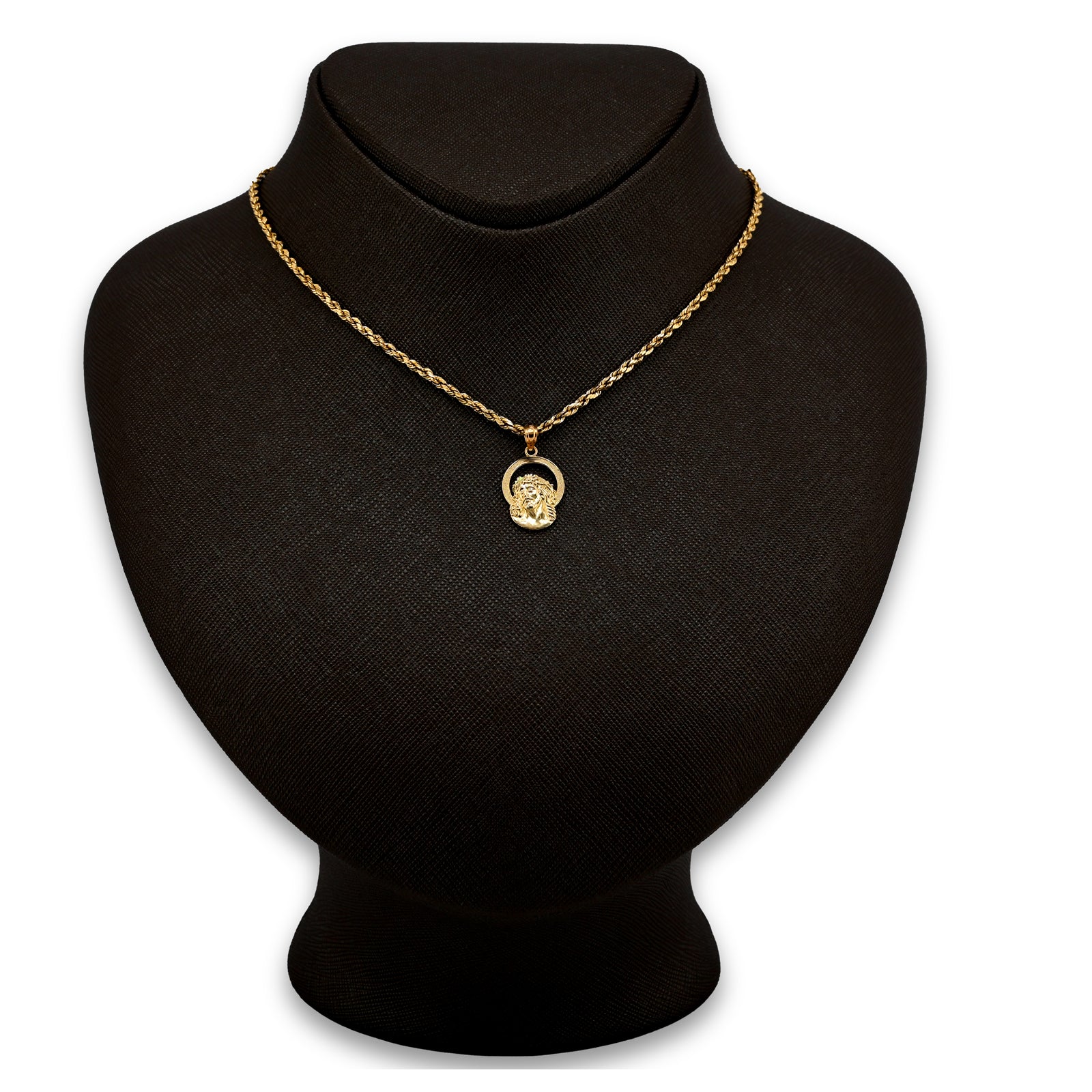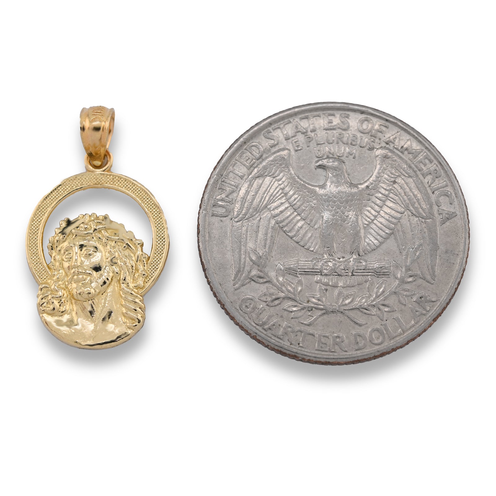 A refined expression of faith, this exquisite women's pendant features a Jesus charm meticulously crafted in authentic 10k yellow gold. Weighing a delicate 0.9 grams, this religious piece combines spiritual significance with timeless elegance, making it an ideal addition to any jewelry collection or a meaningful gift for someone special.