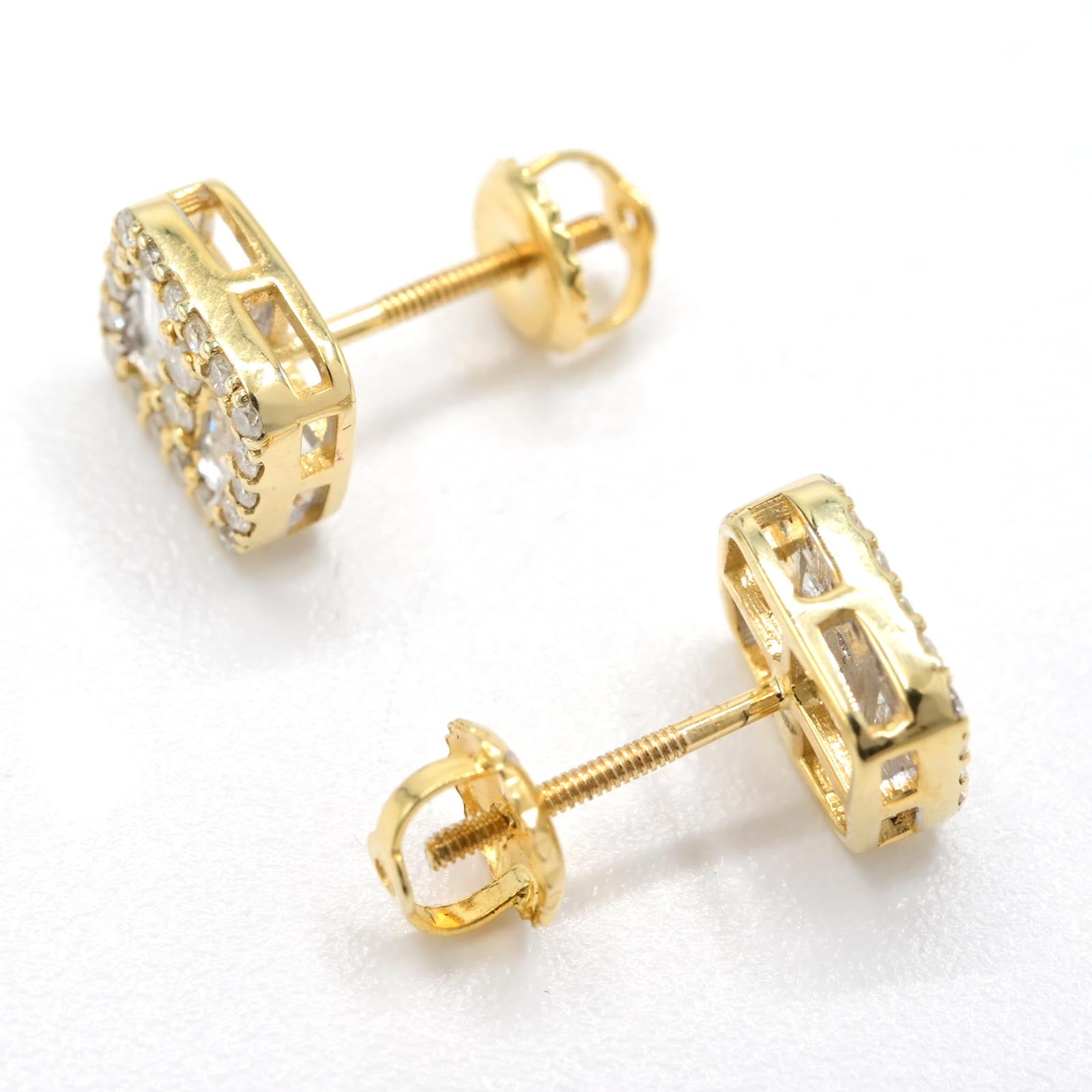 Crafted in 10k yellow gold, this rectangle stud earring features 0.50 carats total weight of natural baguette diamonds, offering a sleek and refined sparkle. Weighing 1.8 grams, the design balances durability with elegant simplicity, making it an ideal choice for sophisticated everyday wear or special occasions. The baguette cut enhances clarity and light reflection, highlighting the craftsmanship of this timeless piece.