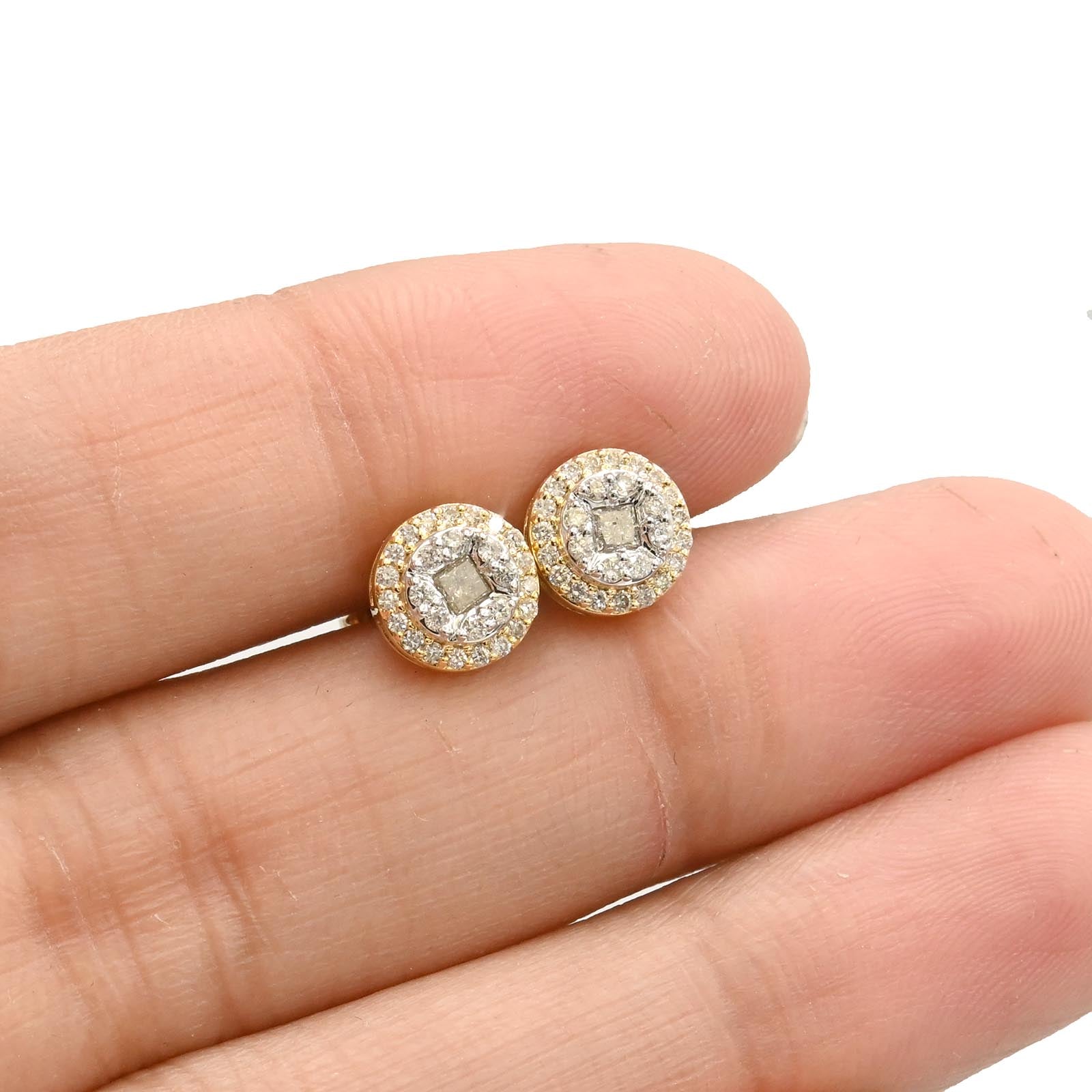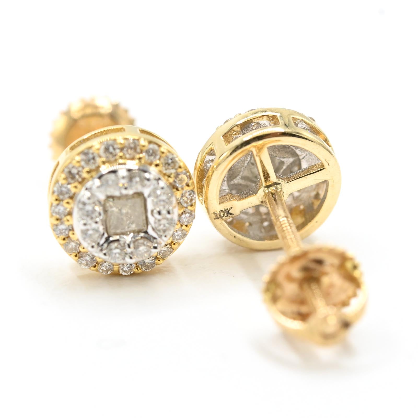 Crafted from 10k yellow gold, these round double-layer stud earrings feature 0.35 carats total weight of natural diamonds, offering refined brilliance in a classic design. Weighing 1.6 grams, they provide durable comfort for everyday wear while enhancing your look with subtle elegance. Perfect for those seeking a sophisticated accessory that balances quality and style.