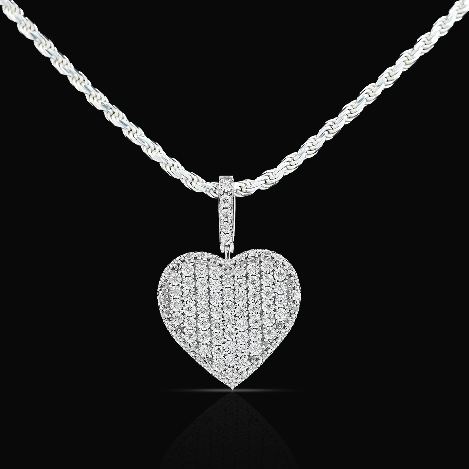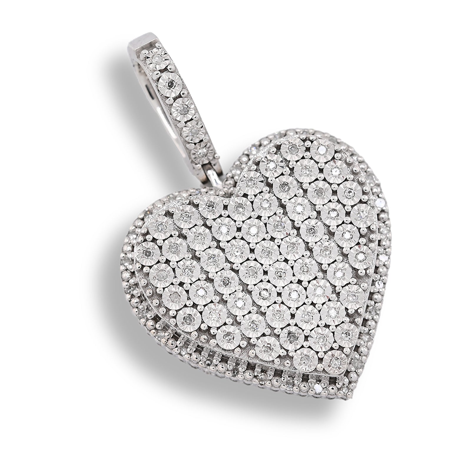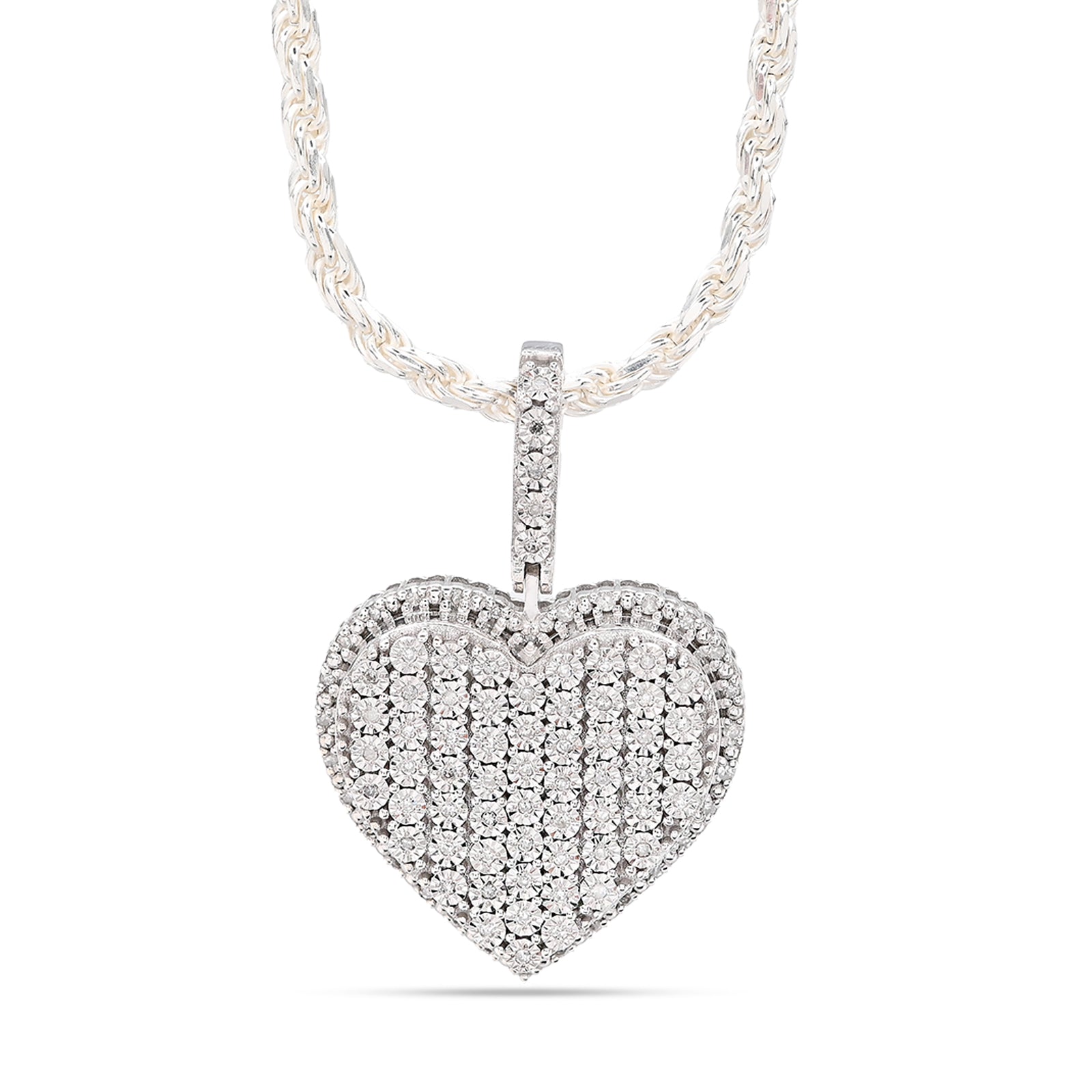 Elevate your jewelry collection with this exquisite sterling silver pendant featuring a captivating heart-shaped design. Adorned with 0.35 carats of natural diamonds, this piece radiates timeless elegance and romantic appeal. Weighing 7.3 grams, the pendant strikes a perfect balance between substantial presence and refined delicacy. Crafted from premium sterling silver, it offers durability and a lustrous finish that complements any complexion. An ideal charm for those who appreciate genuine gemstones and meaningful jewelry that transcends fleeting trends.