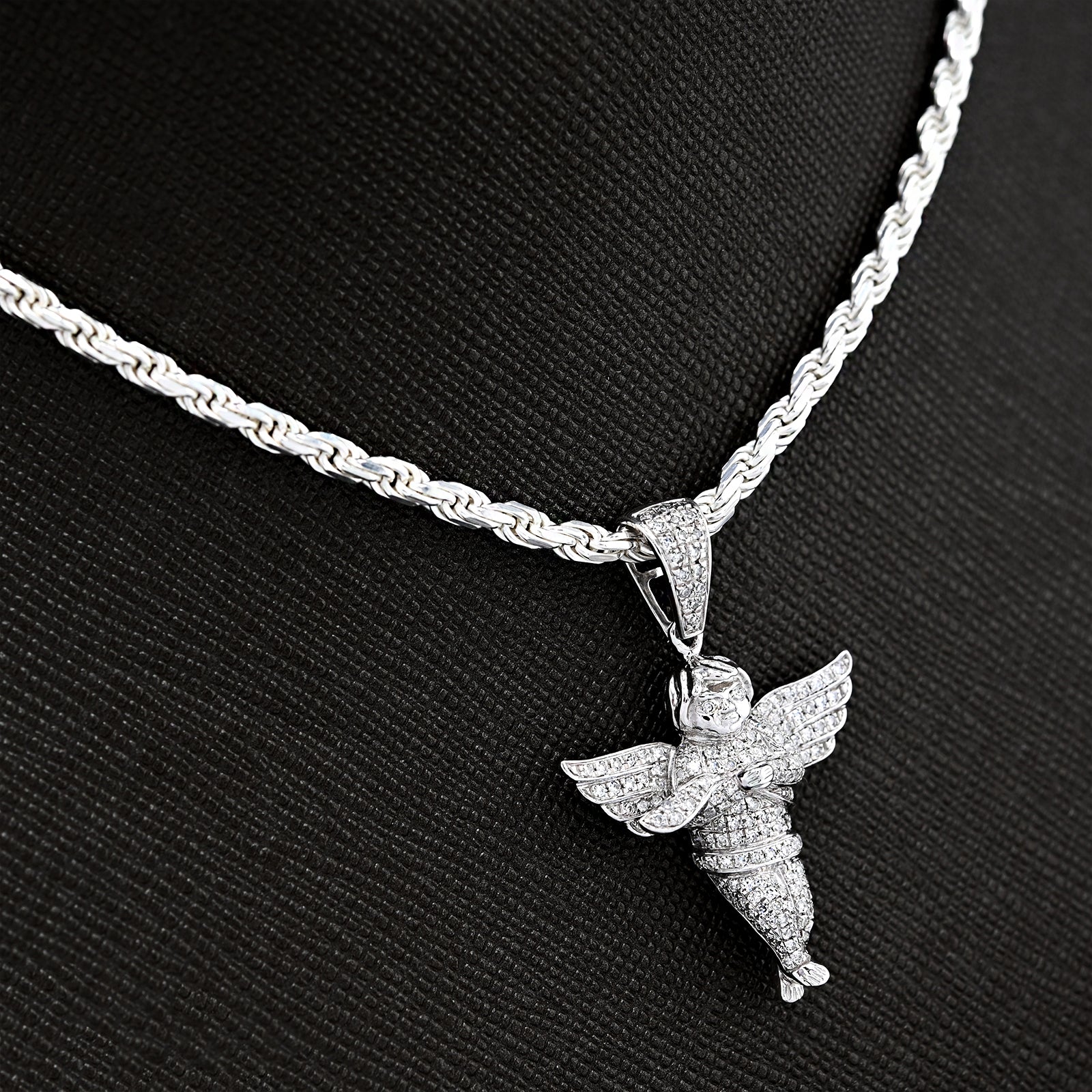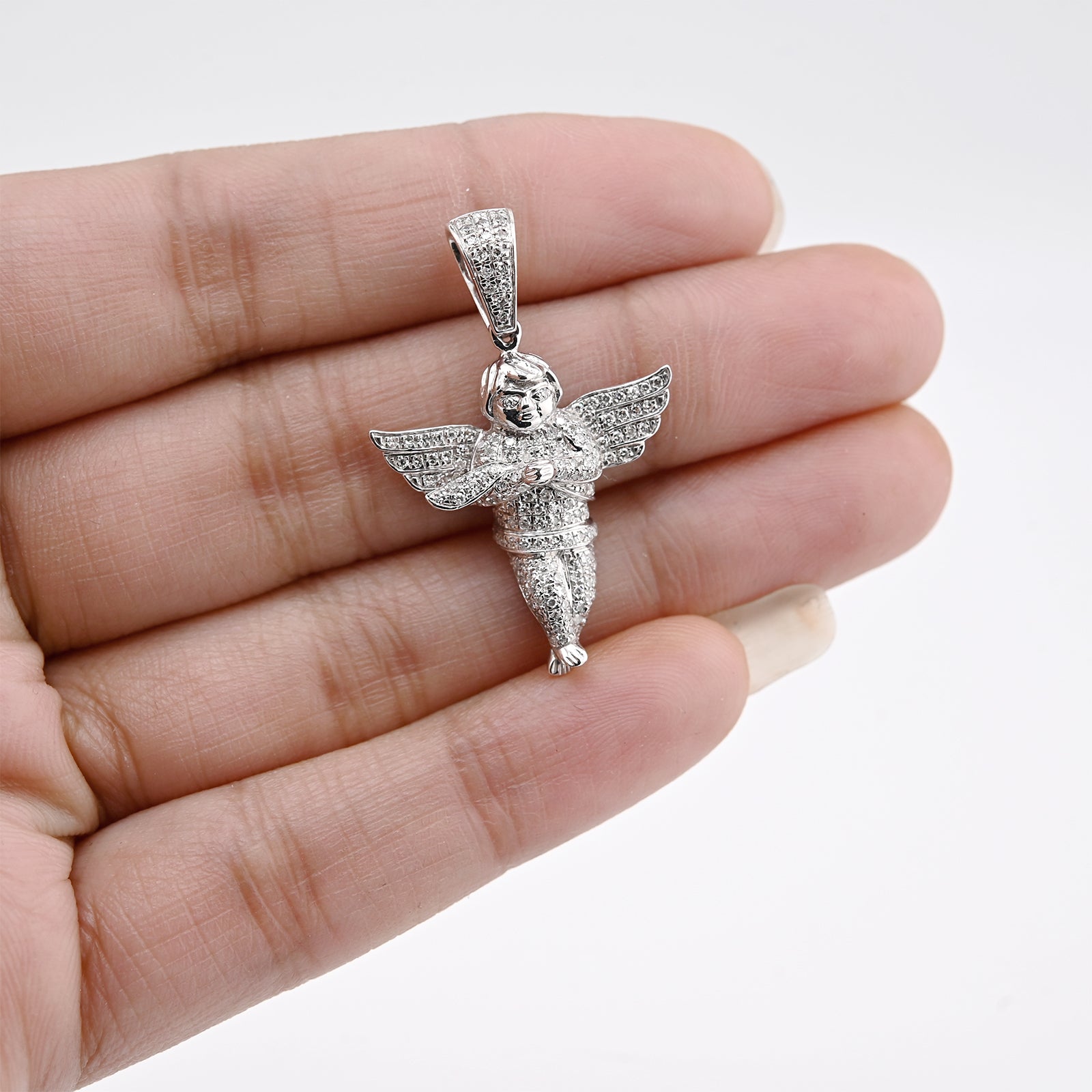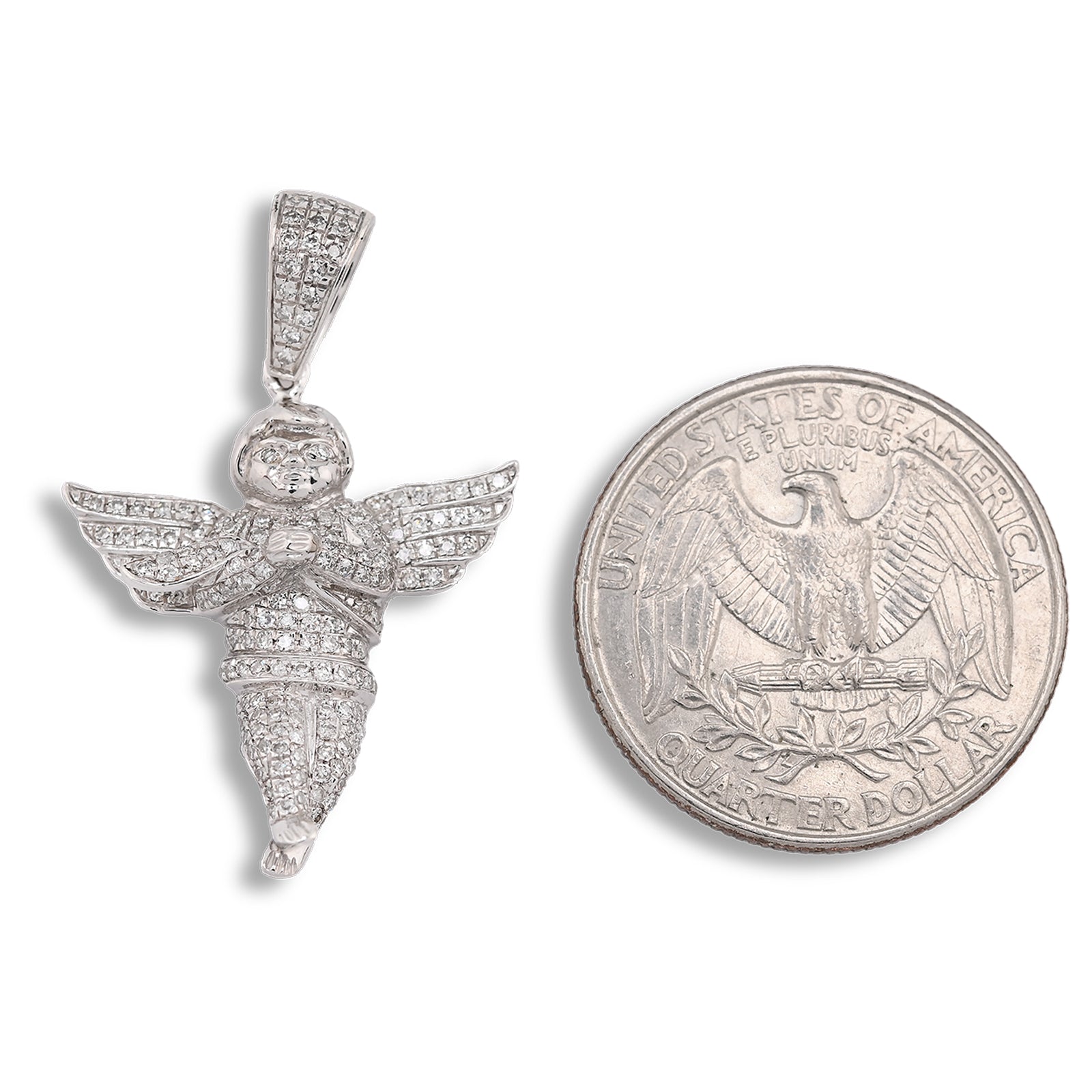 This elegant sterling silver angel pendant features a natural diamond weighing 0.45 carats, crafted to captivate with timeless grace. Weighing just 3.3 grams, the delicate design combines celestial symbolism with refined craftsmanship, making it an ideal choice for both men and women. The natural diamond catches light beautifully, adding subtle sparkle to everyday wear or special occasions. Perfect as a meaningful gift or personal keepsake, this versatile charm complements any style while embodying protection and spiritual significance.