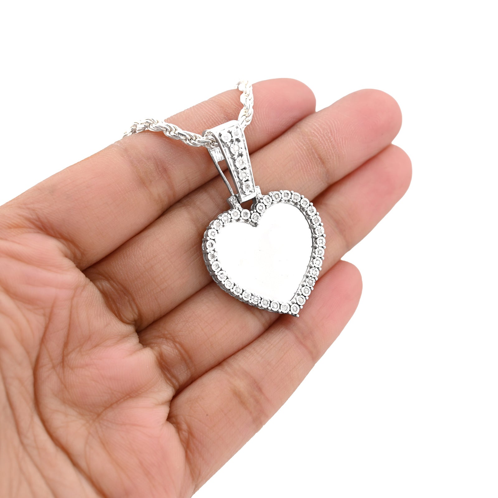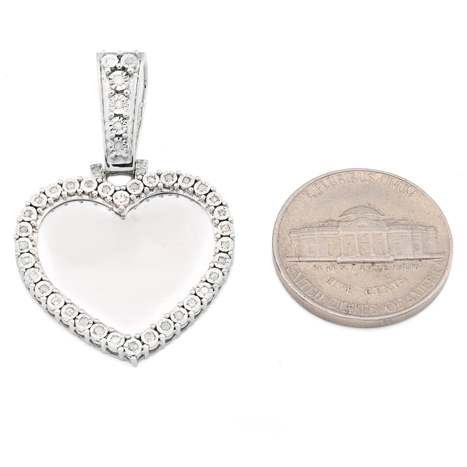 Treasure heartfelt moments with this romantic heart-shaped pendant charm in elegant 925 sterling silver. Adorned with a sparkling 0.3-carat natural diamond, this refined piece provides the perfect canvas for displaying a cherished photograph or personal inscription. Weighing just 5.1 grams, its delicate design offers comfortable everyday wear while maintaining sophisticated appeal. An ideal selection for women seeking meaningful jewelry that celebrates love and connection with timeless grace and enduring beauty.