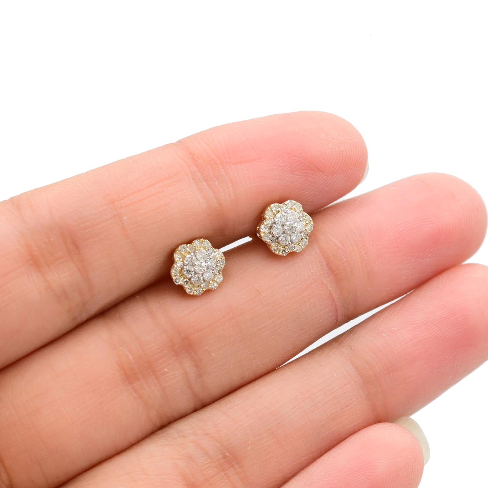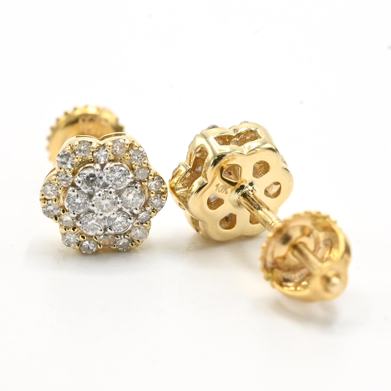 These women's 10k yellow gold flower earrings feature 0.27 carats total weight of natural diamonds, expertly set to enhance their brilliance. Weighing 1.2 grams, the delicate stud design offers both elegance and everyday wearability. Crafted with precision, these earrings are a refined choice for adding subtle sparkle and classic charm to any outfit.