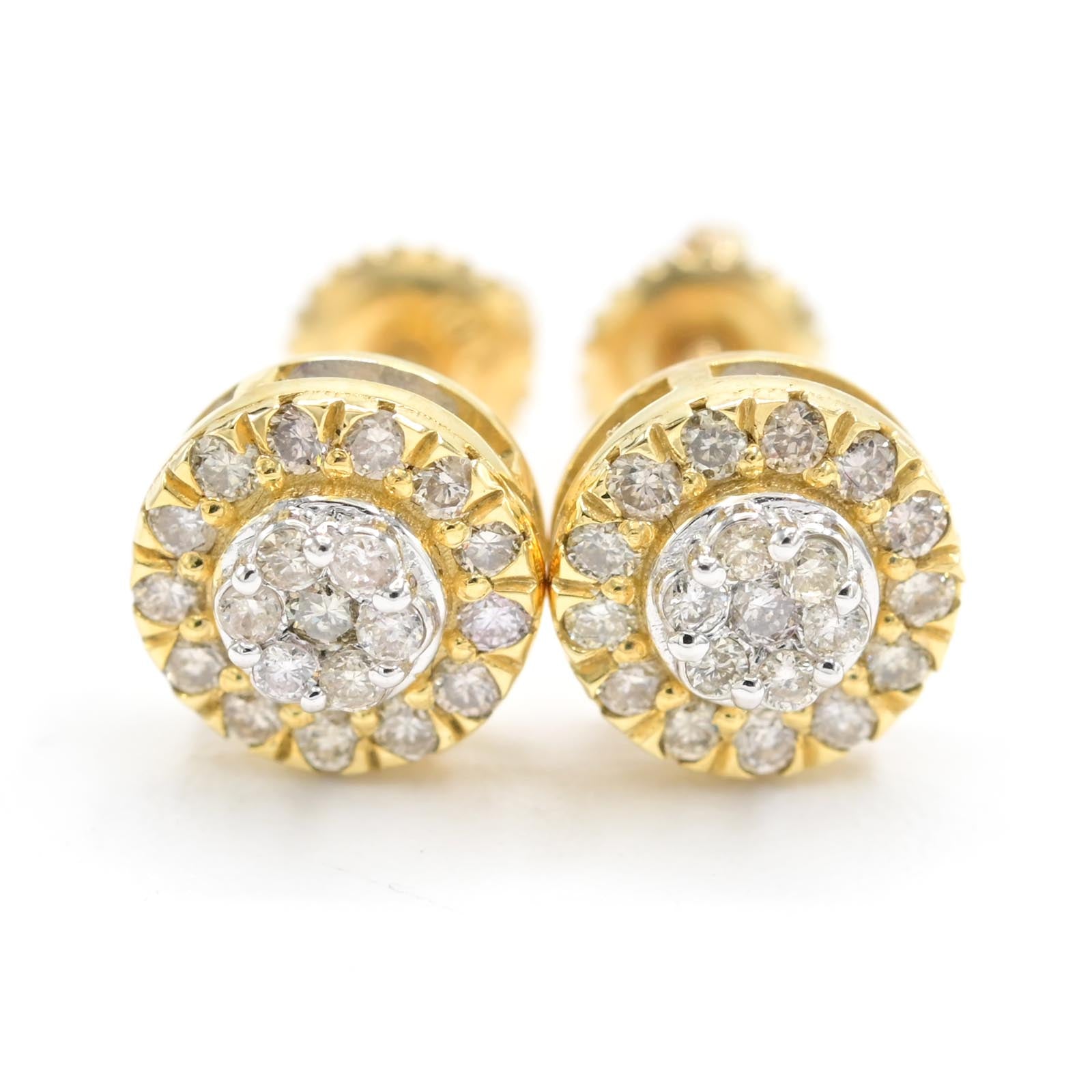 Crafted from pure 10k yellow gold, these round stud earrings feature a total of 0.33 carats of natural diamonds, delivering timeless elegance with subtle brilliance. Weighing 1.6 grams, their refined design offers both durability and comfort, making them an essential classic for everyday wear or special occasions.